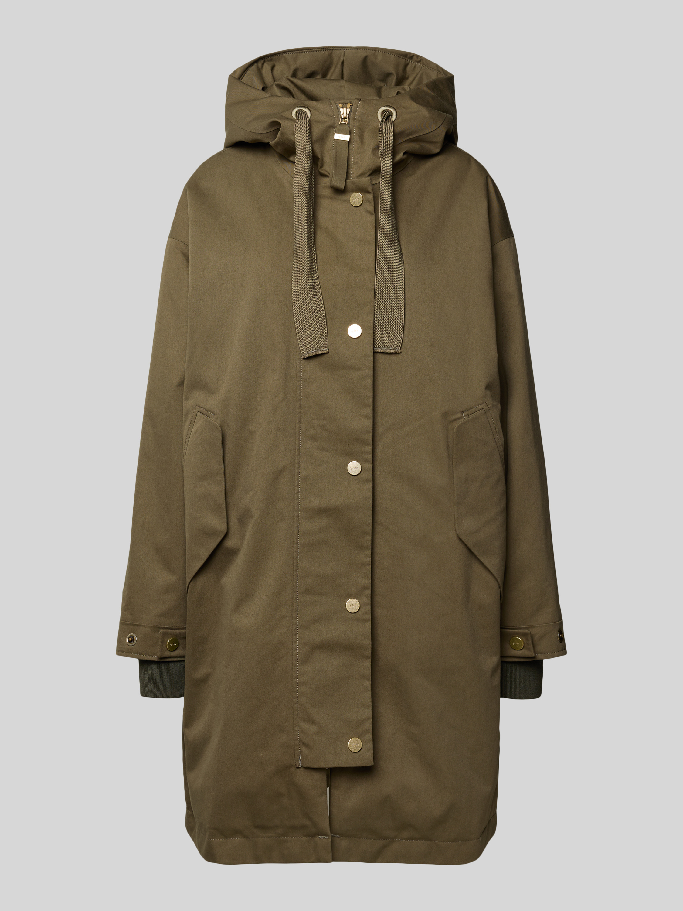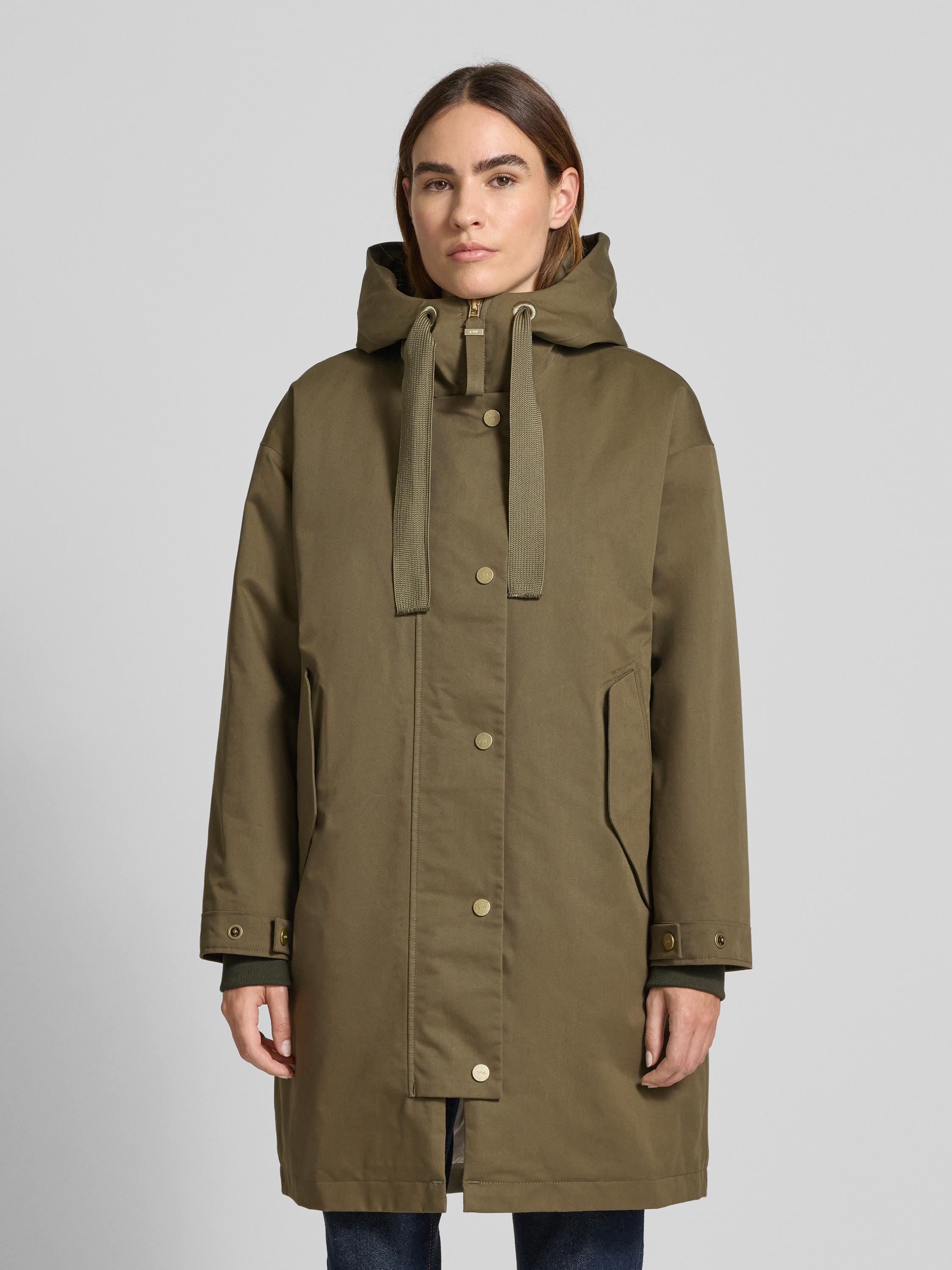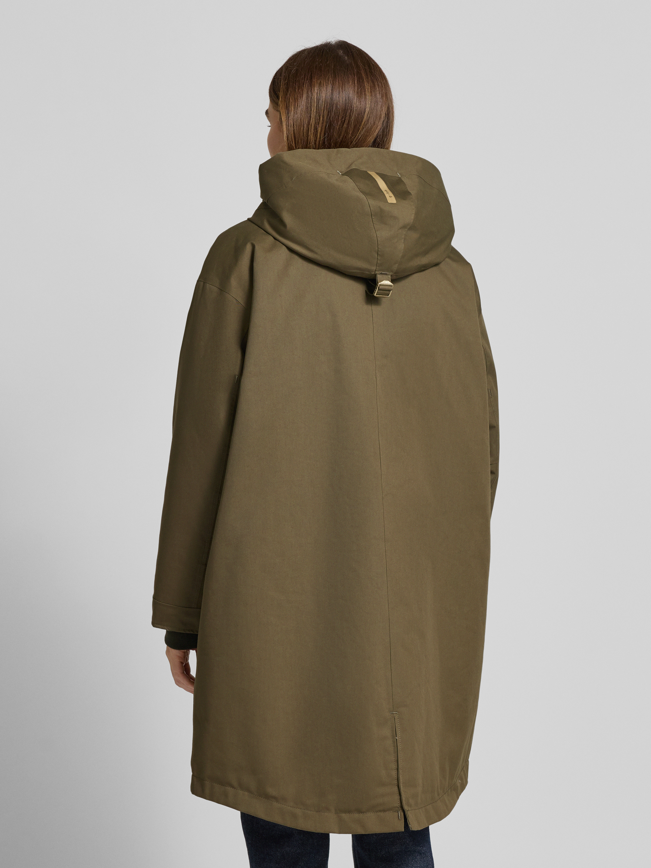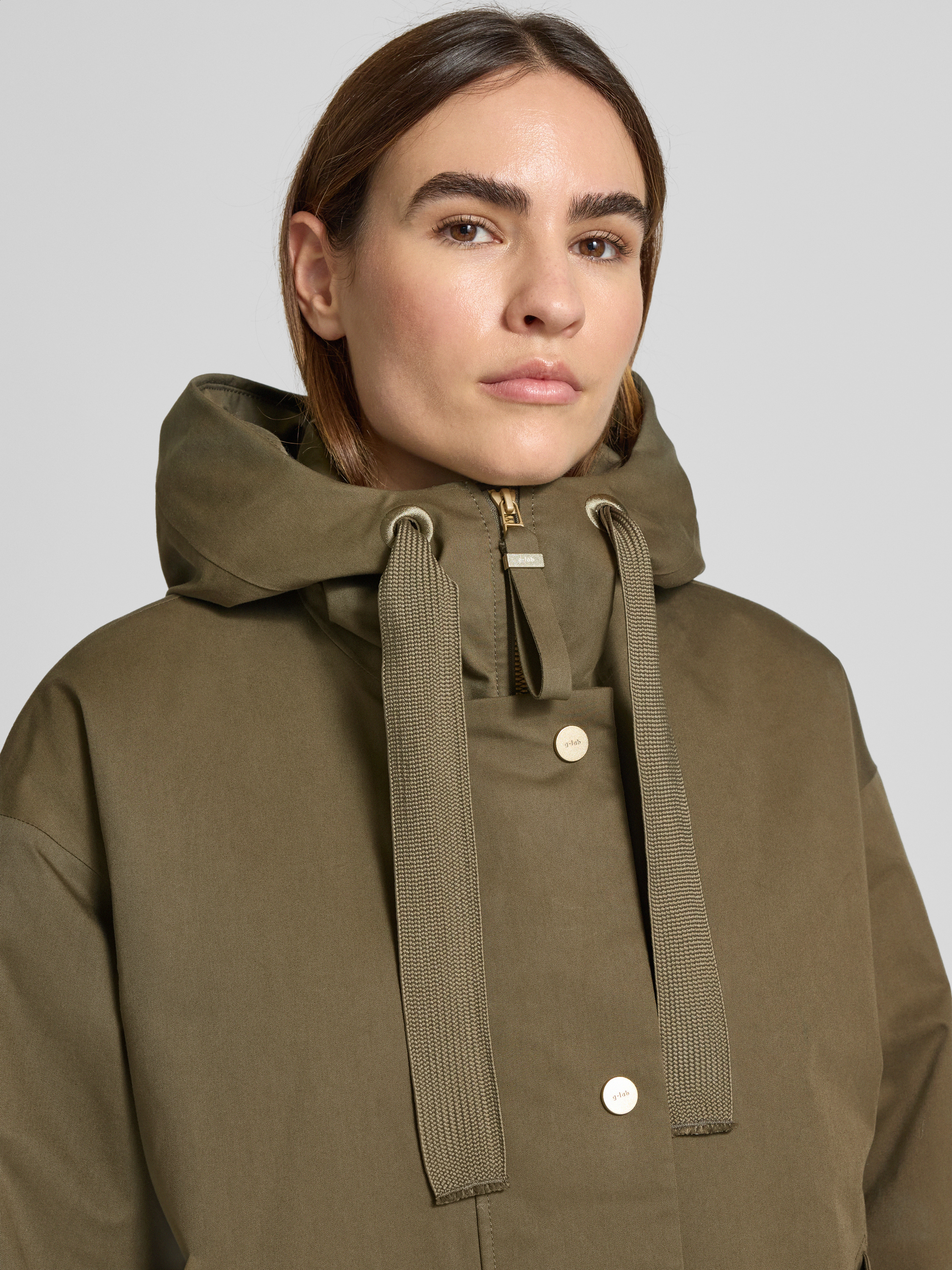 Functionele lange jas met capuchon, model 'META' in olijfgroen