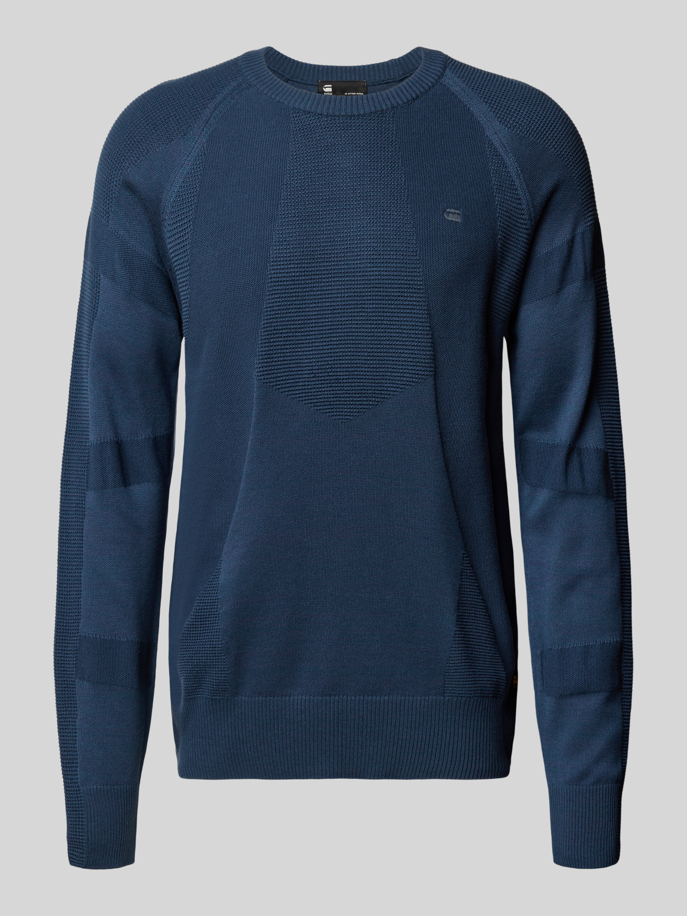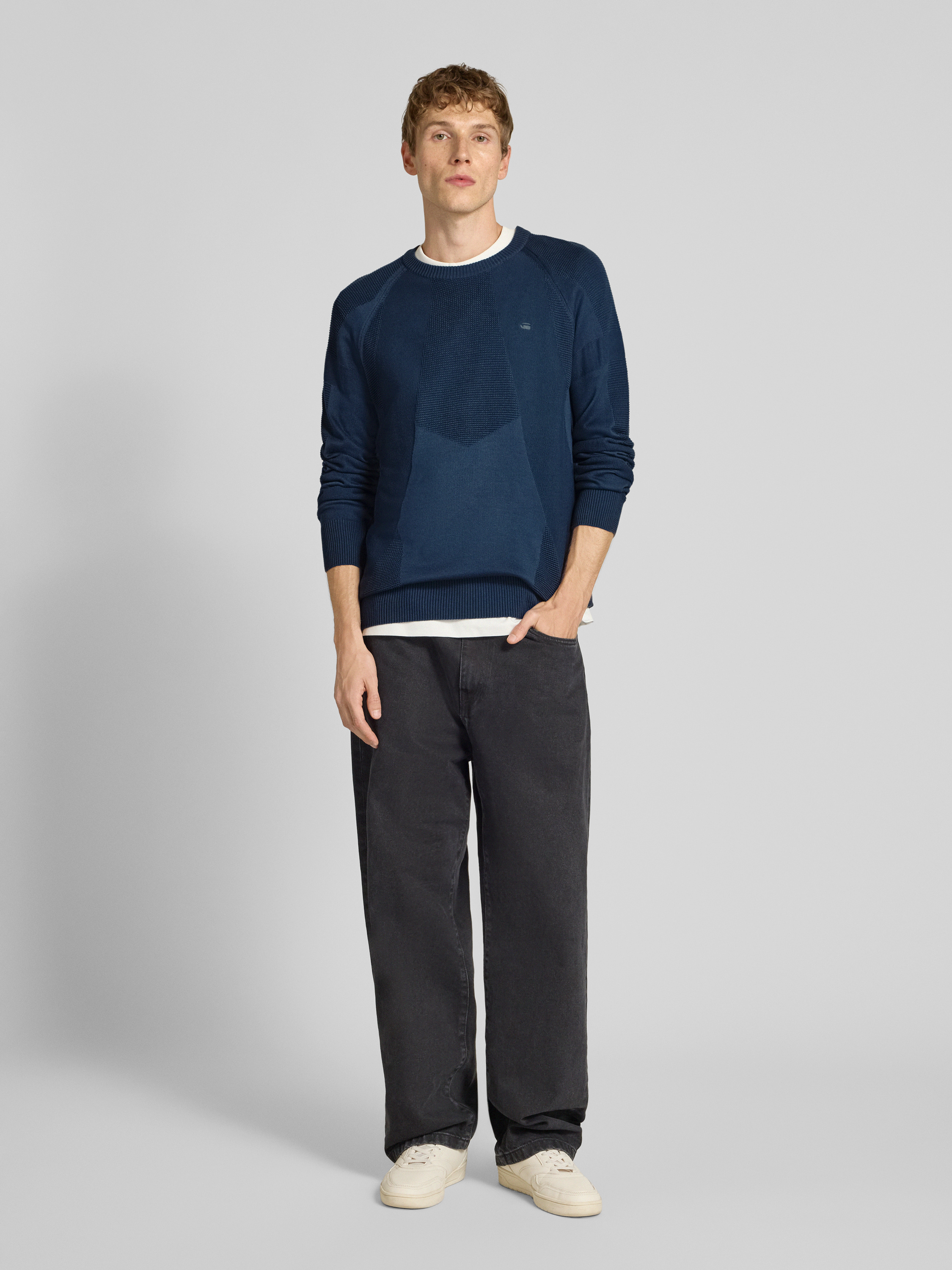 Gebreide pullover met logostitching en ronde hals in marineblauw