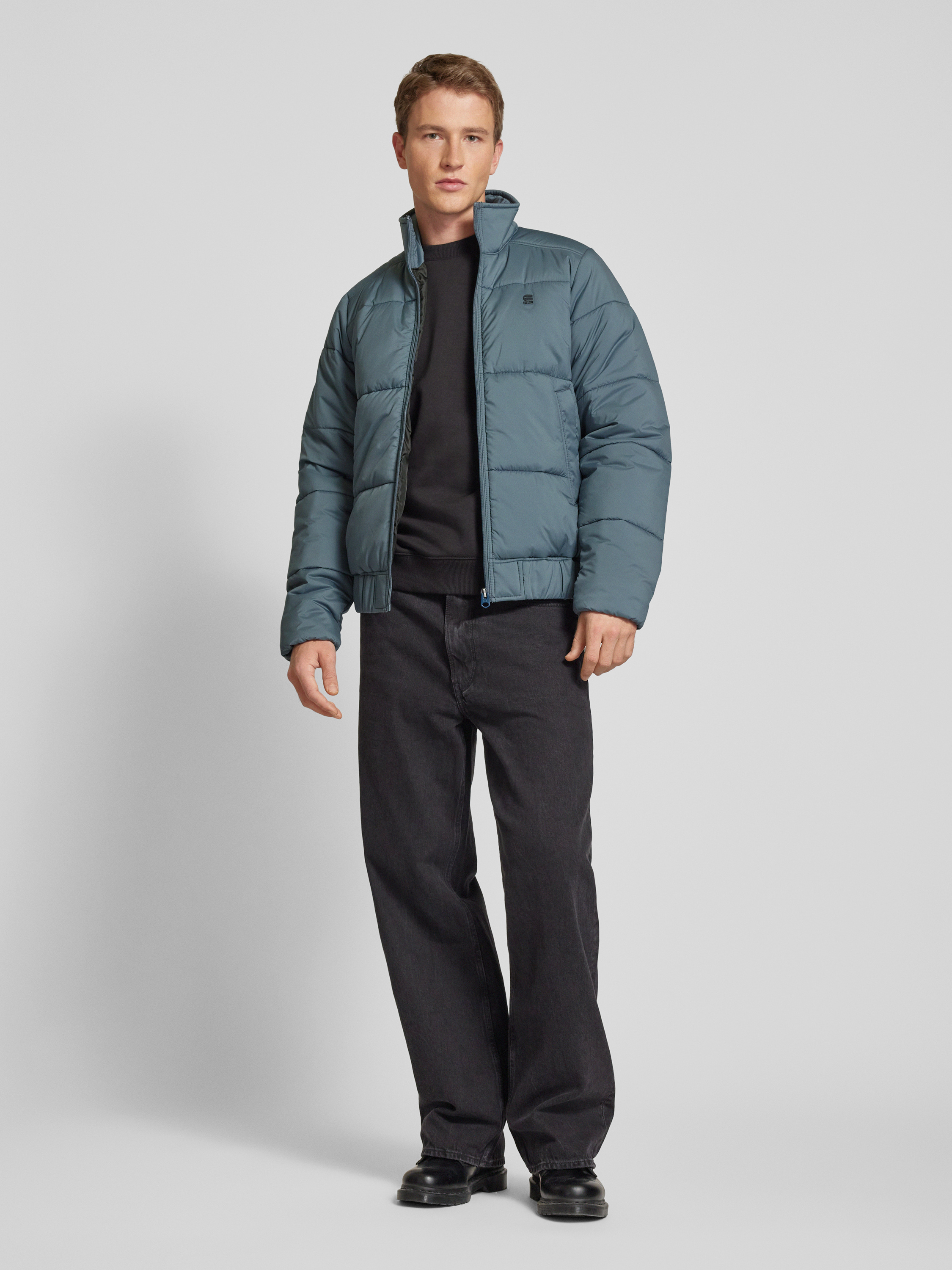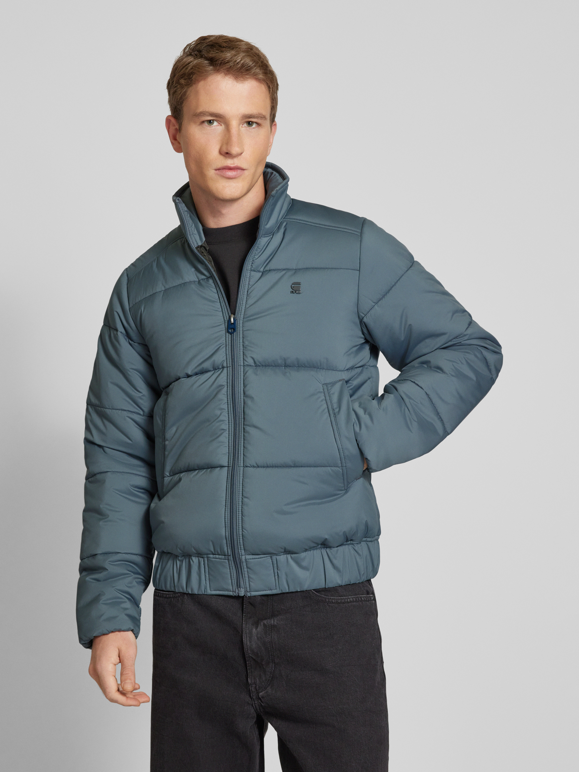 Gewatteerd jack met opstaande kraag in steengrijs