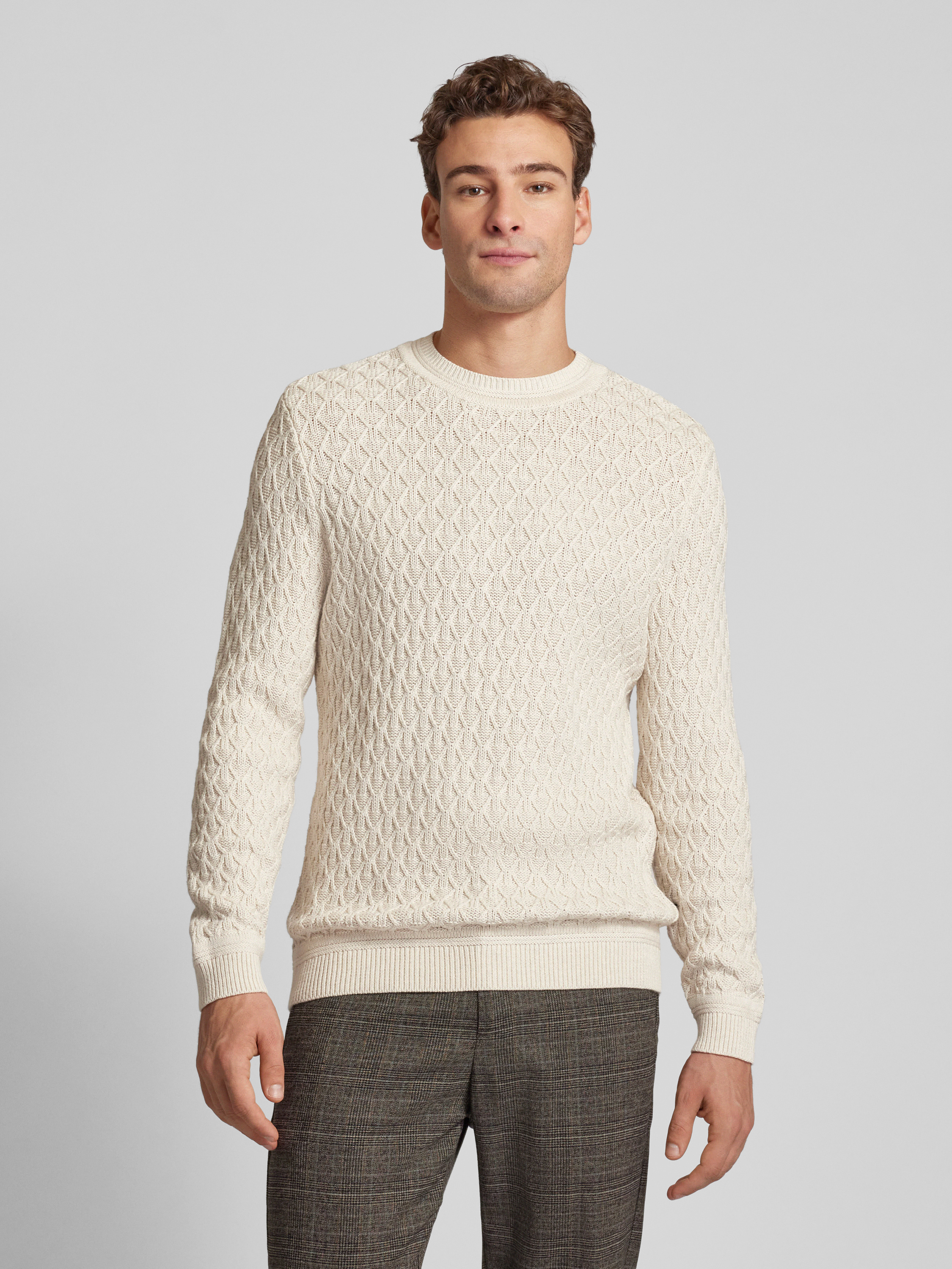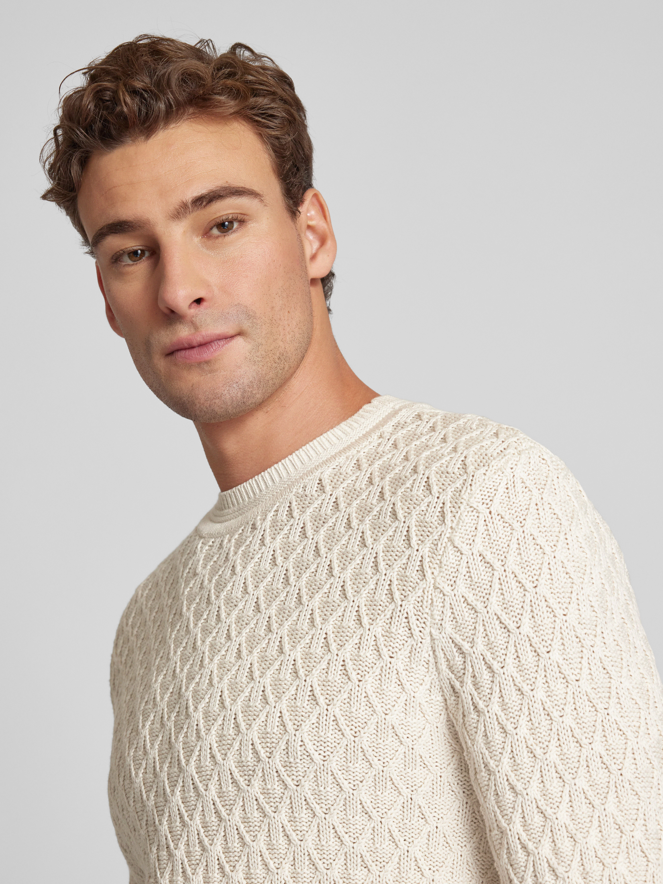 Gebreide pullover met ronde hals, model 'AKSLA' in offwhite