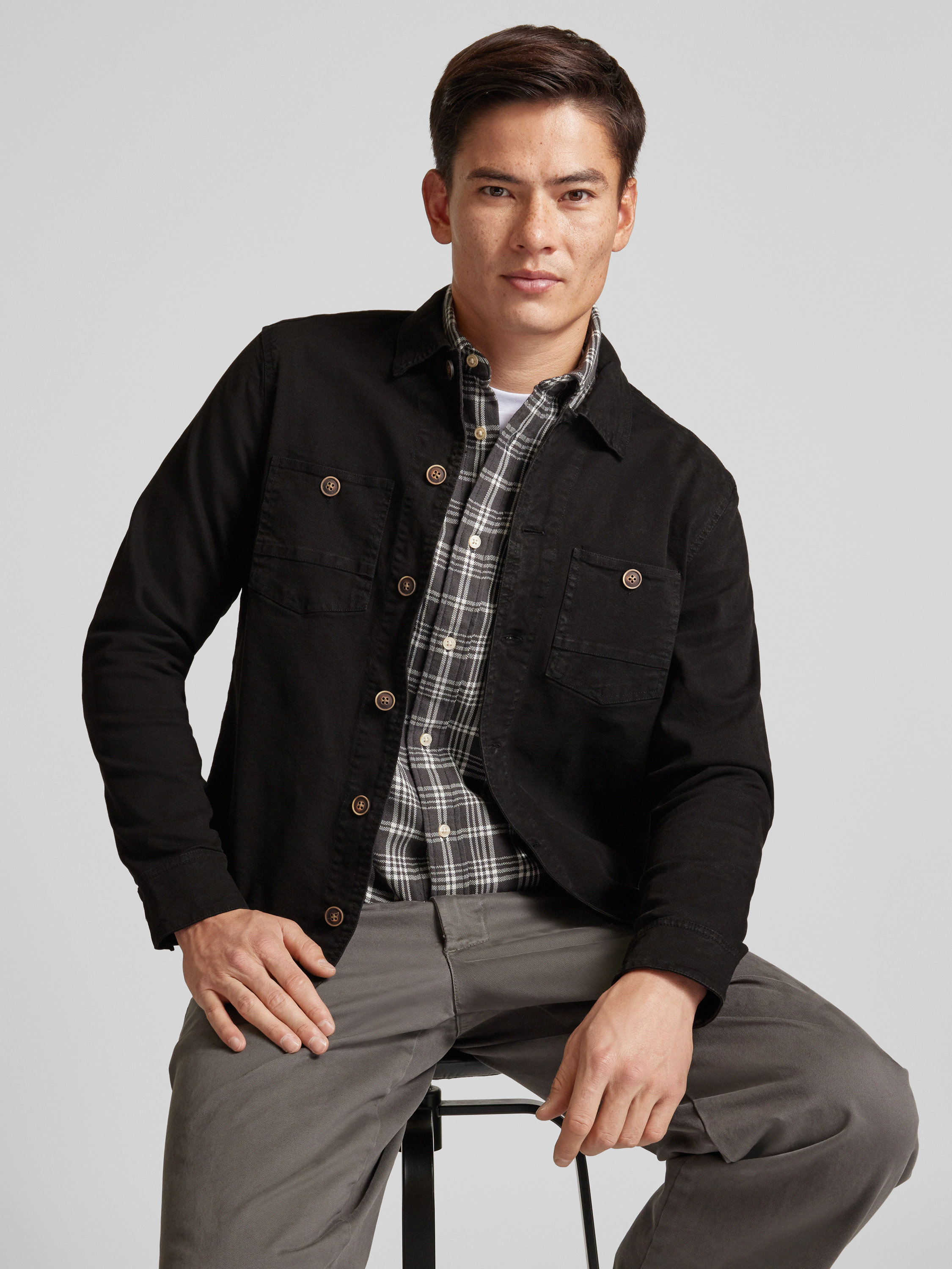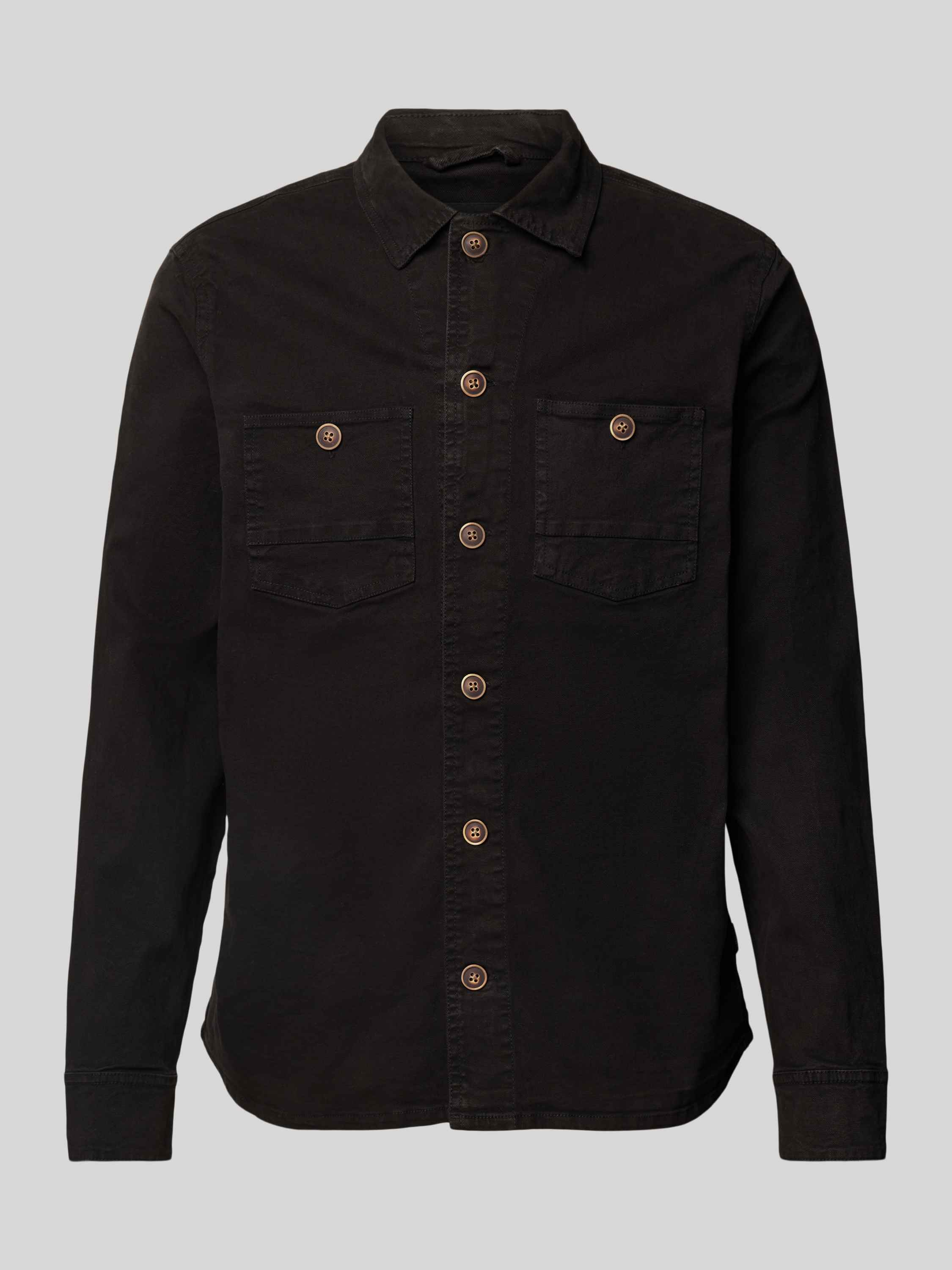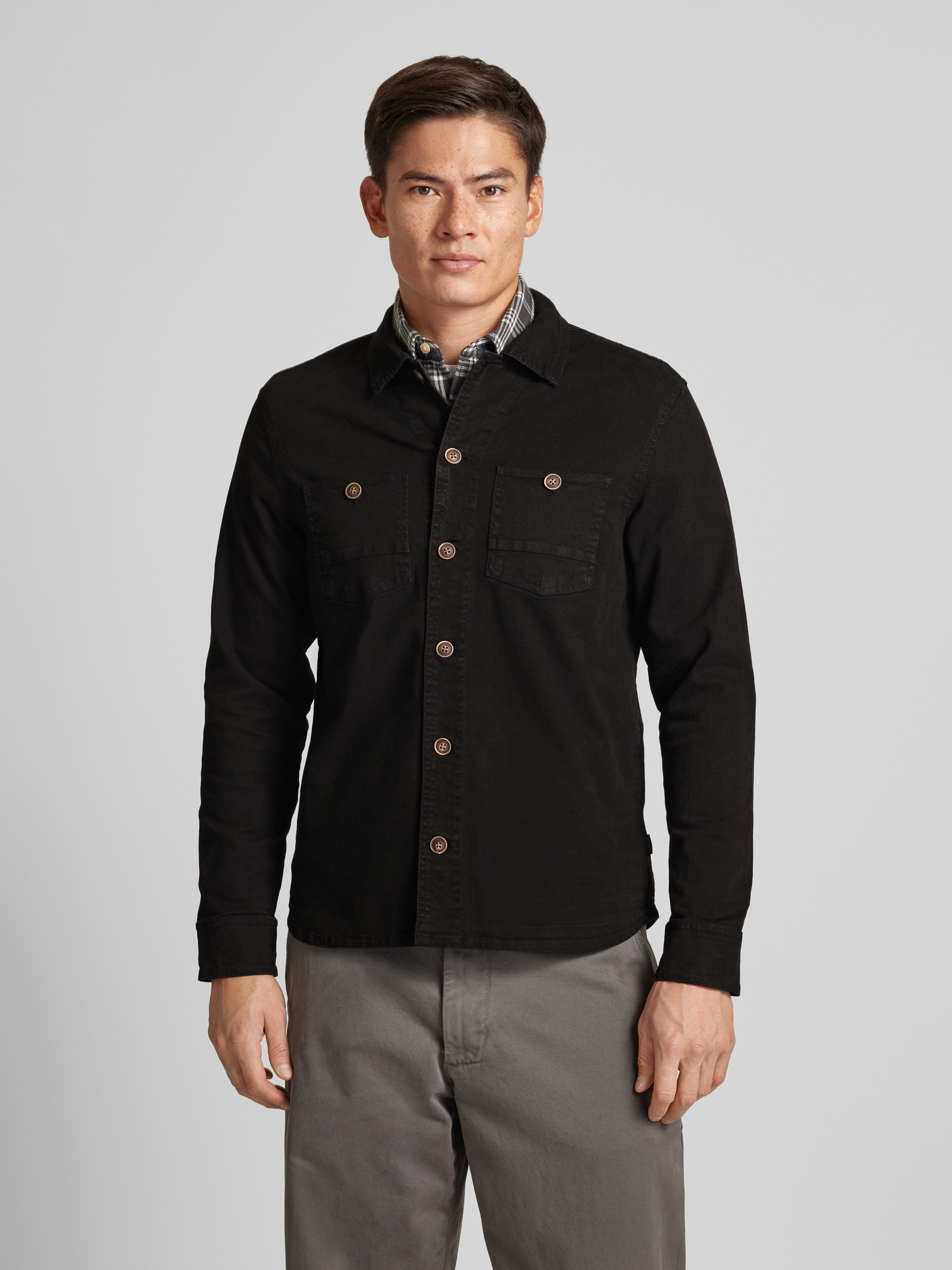 Slim fit overhemdjack met kentkraag, model 'CLIPPER' in zwart