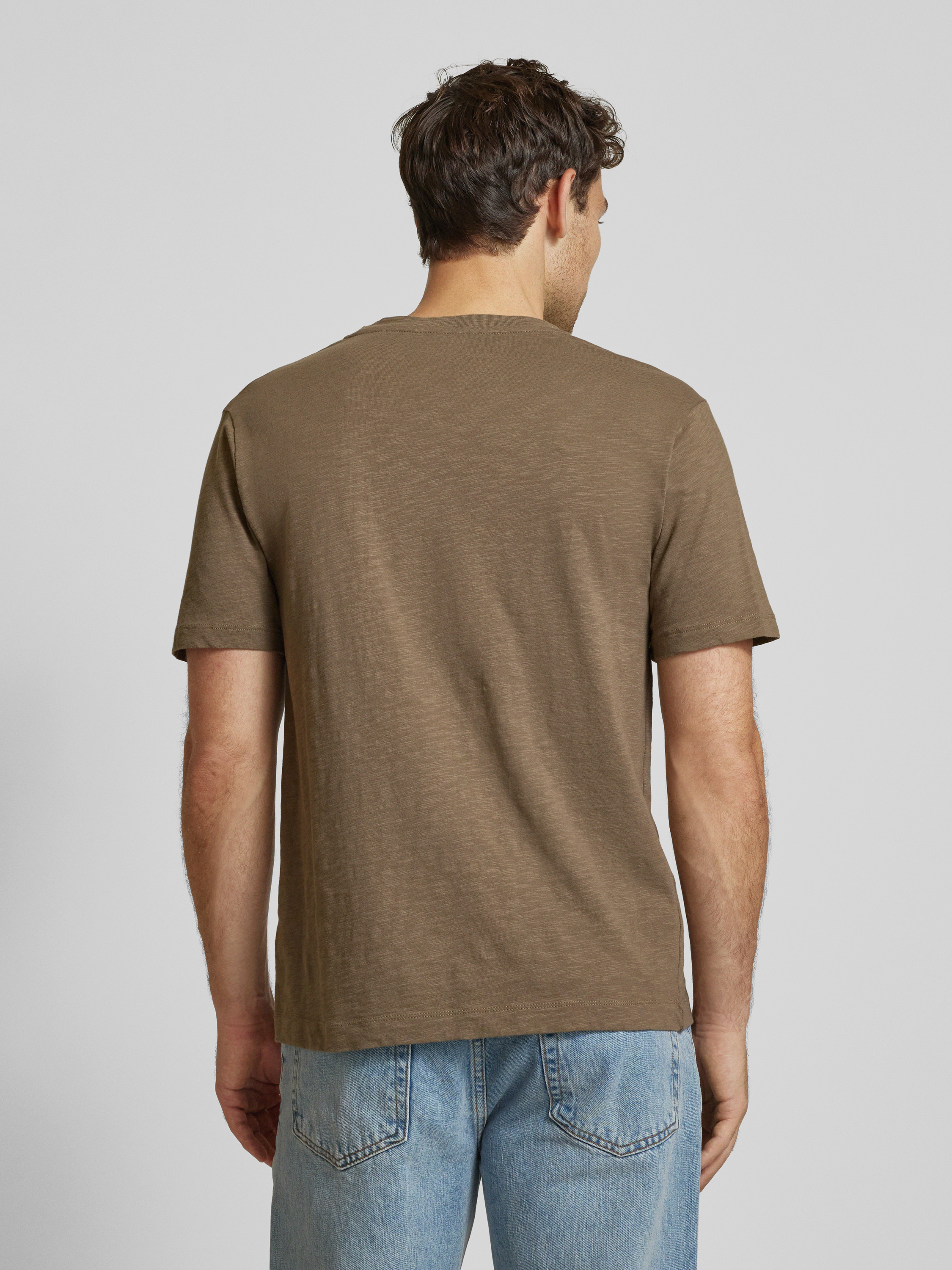 T-shirt met geribde ronde hals in lichtbruin