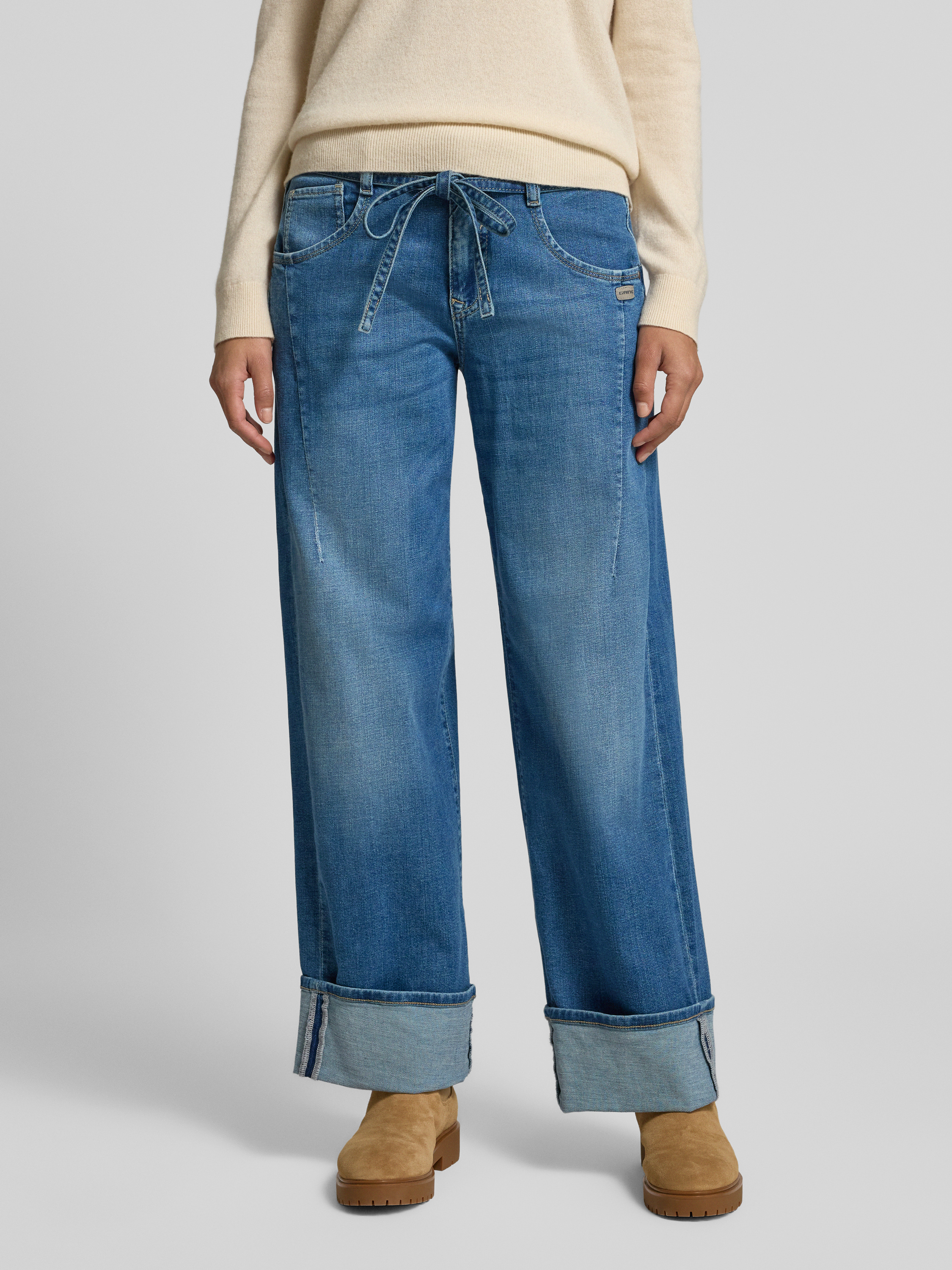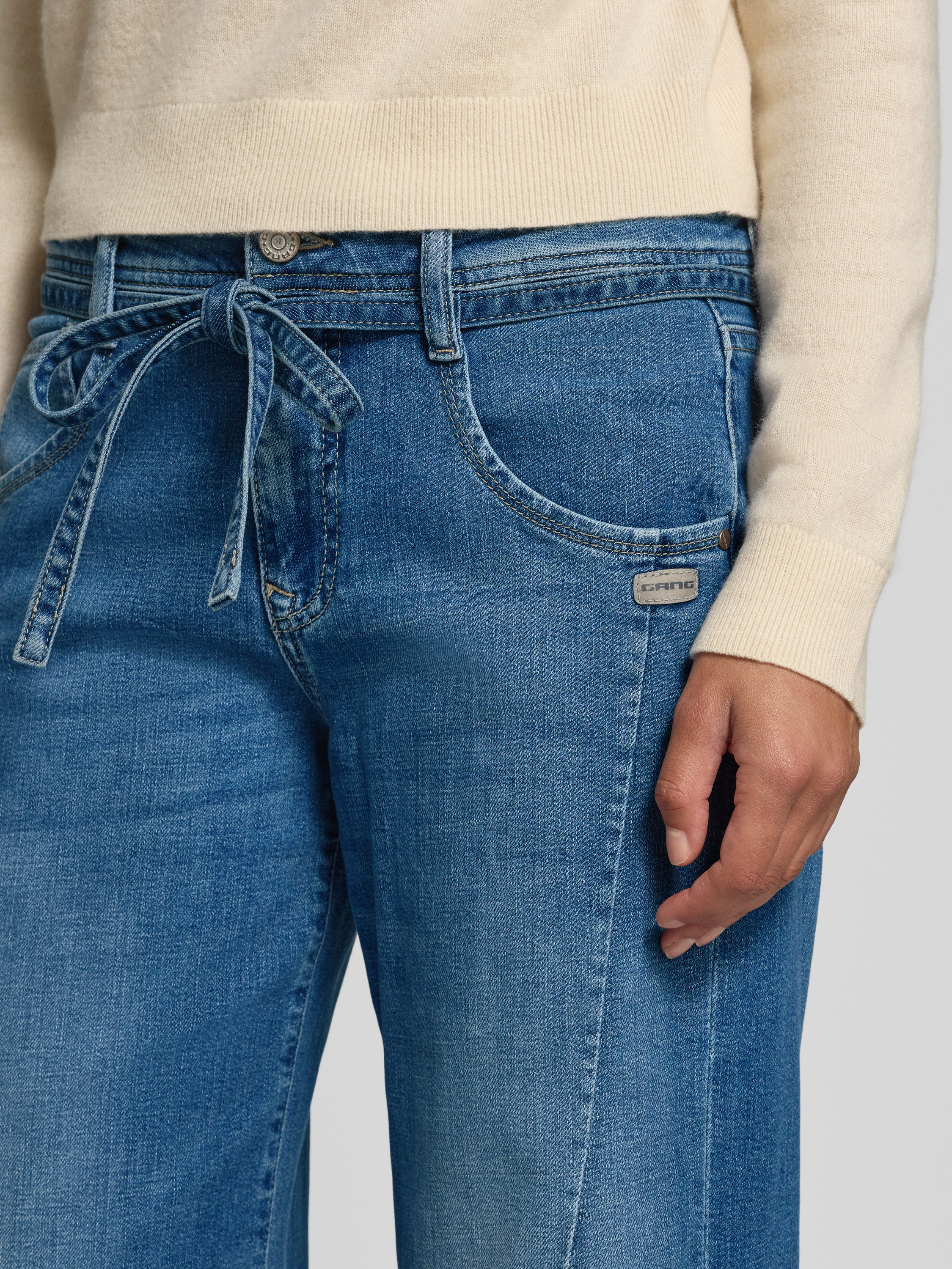 Loose fit jeans met strikceintuur, model 'CLAIRE' in blauw