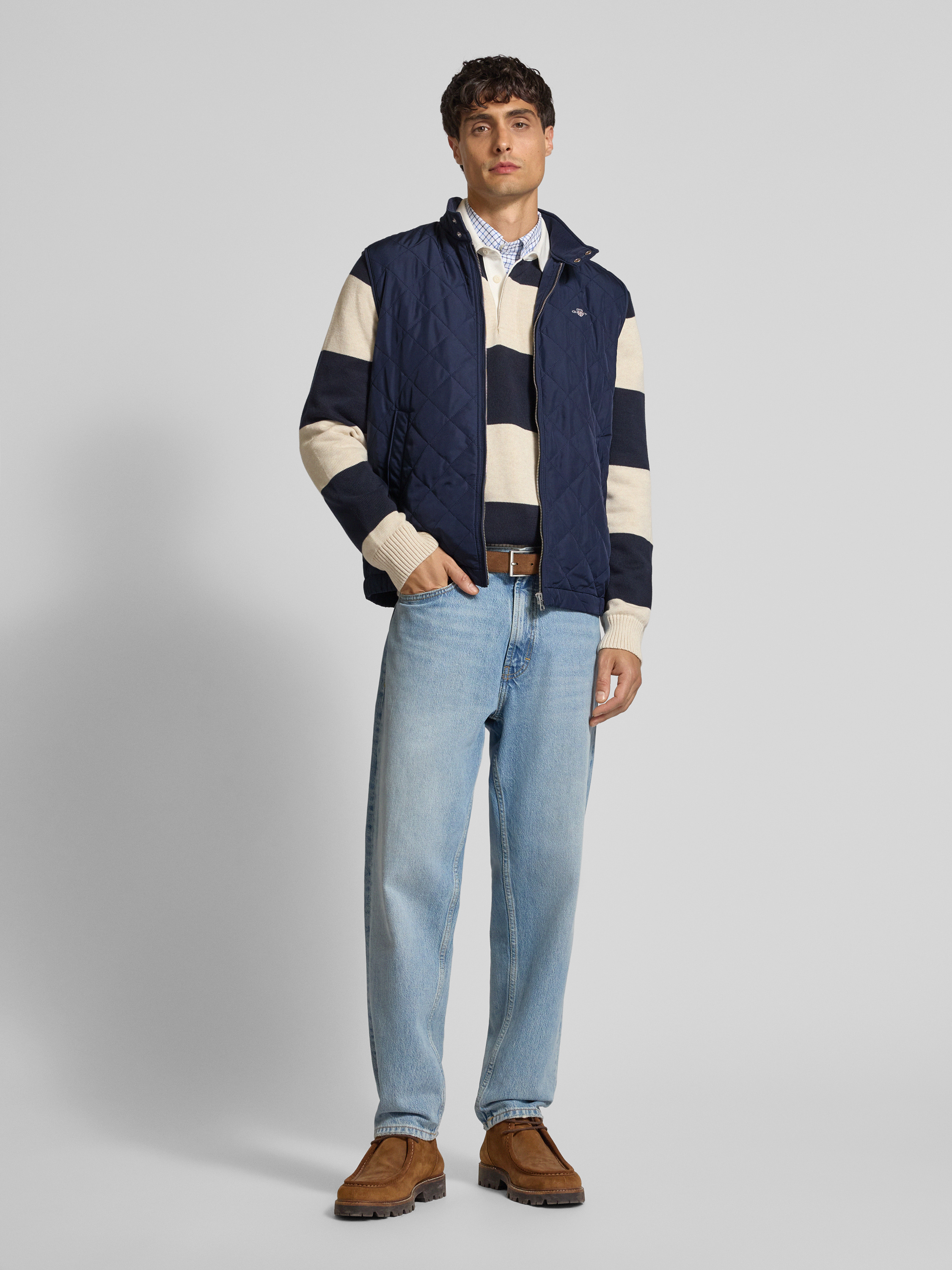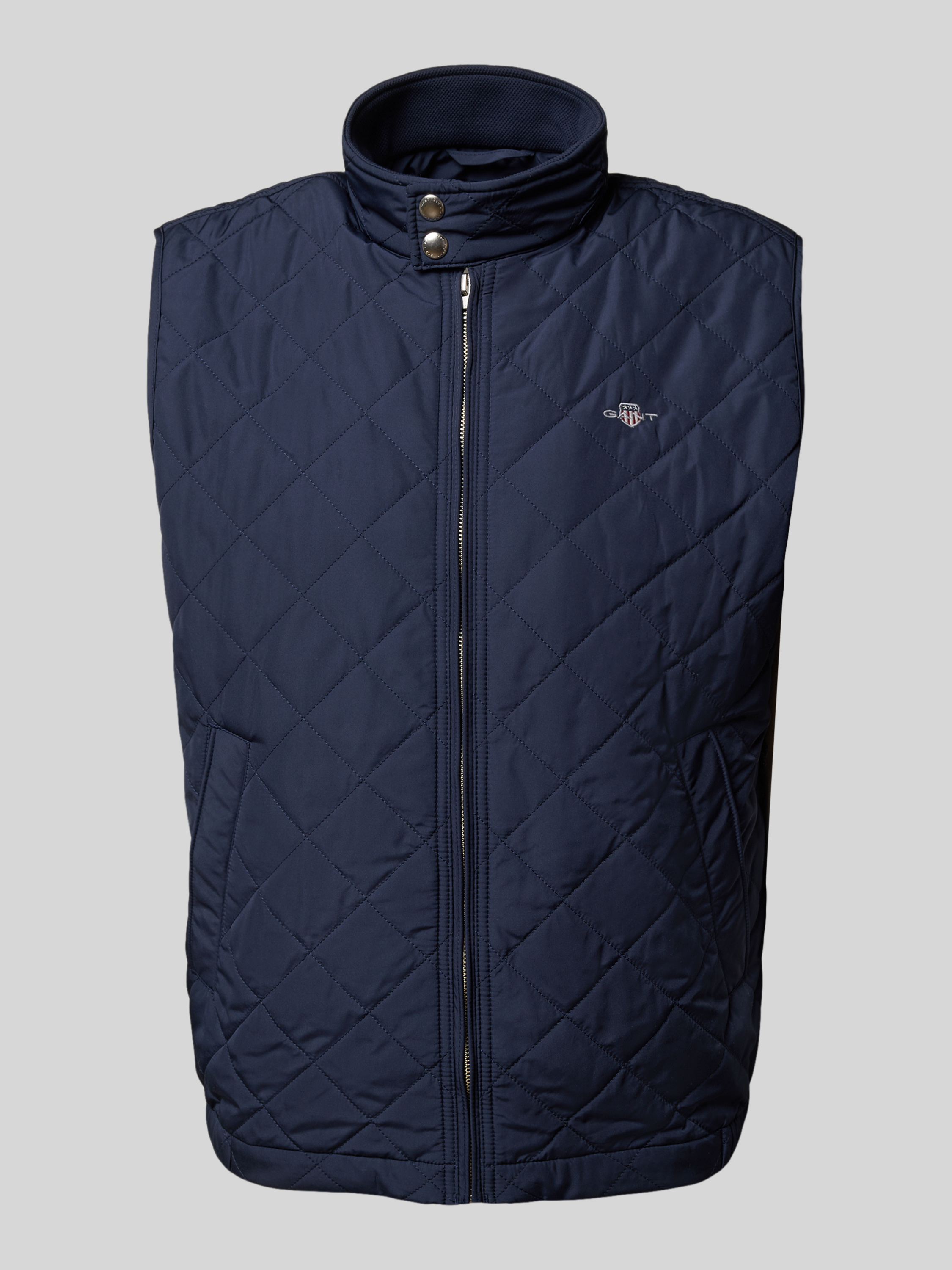 Bodywarmer met opstaande kraag en labelstitching in marineblauw