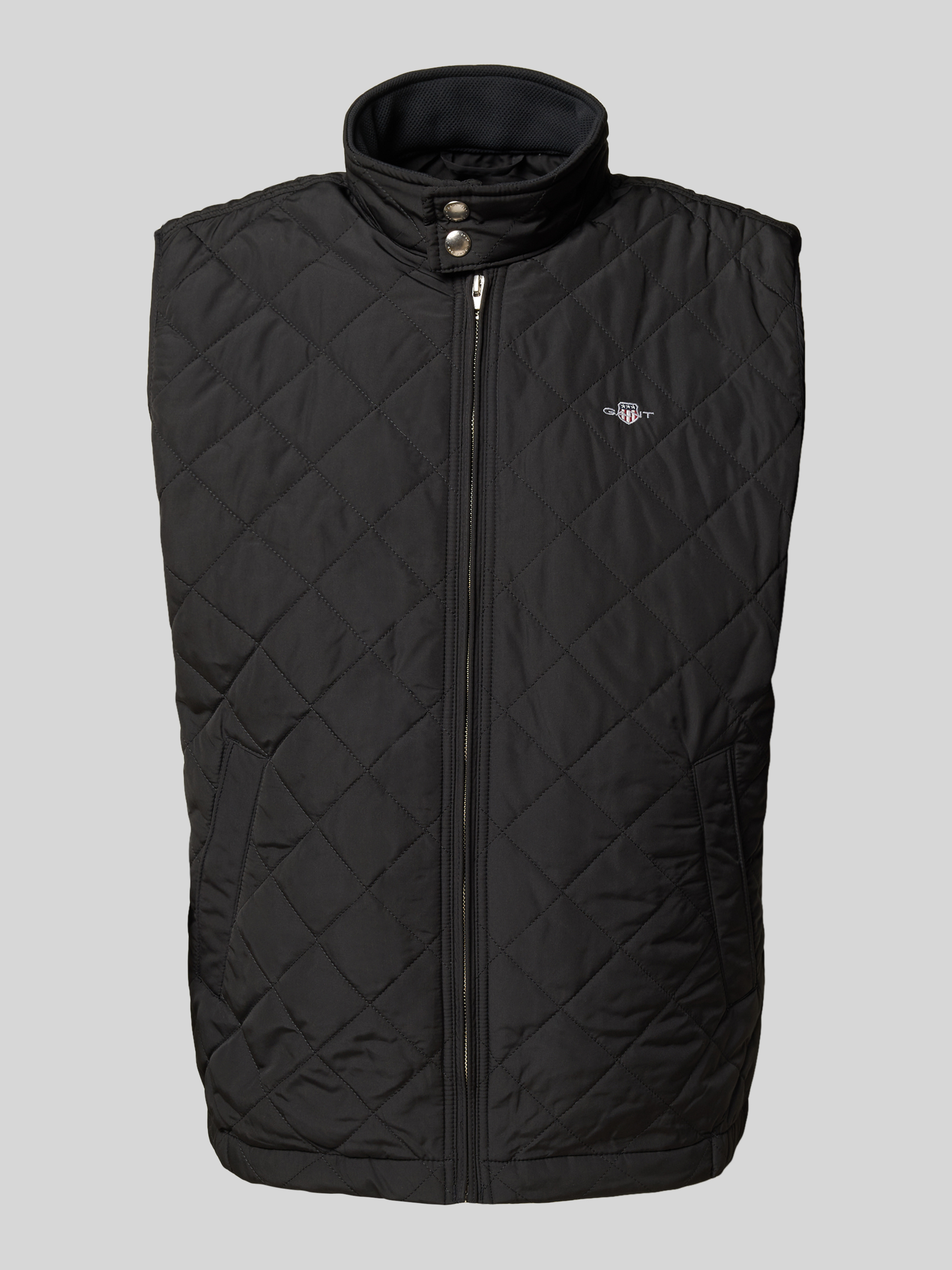 Bodywarmer met opstaande kraag en labelstitching in zwart