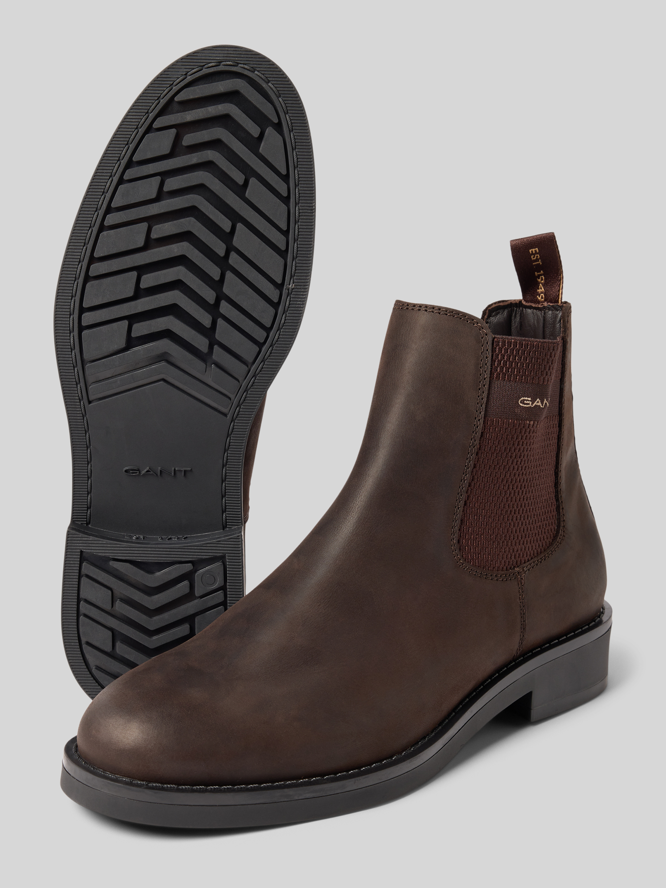 GantChelsea boots met logostitching, model 'Prepdale' in donkerbruin