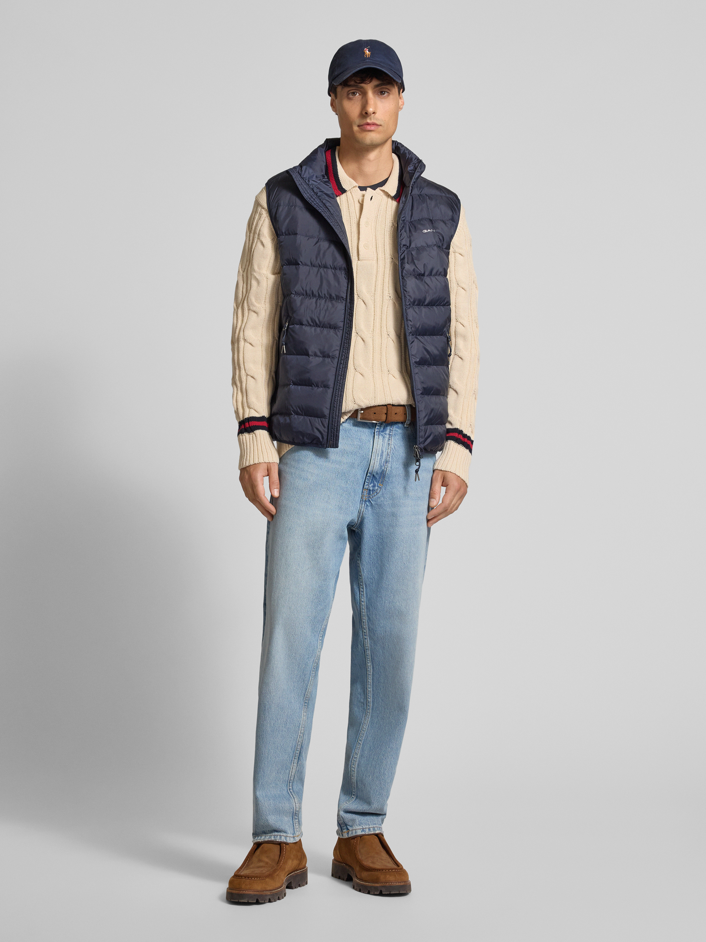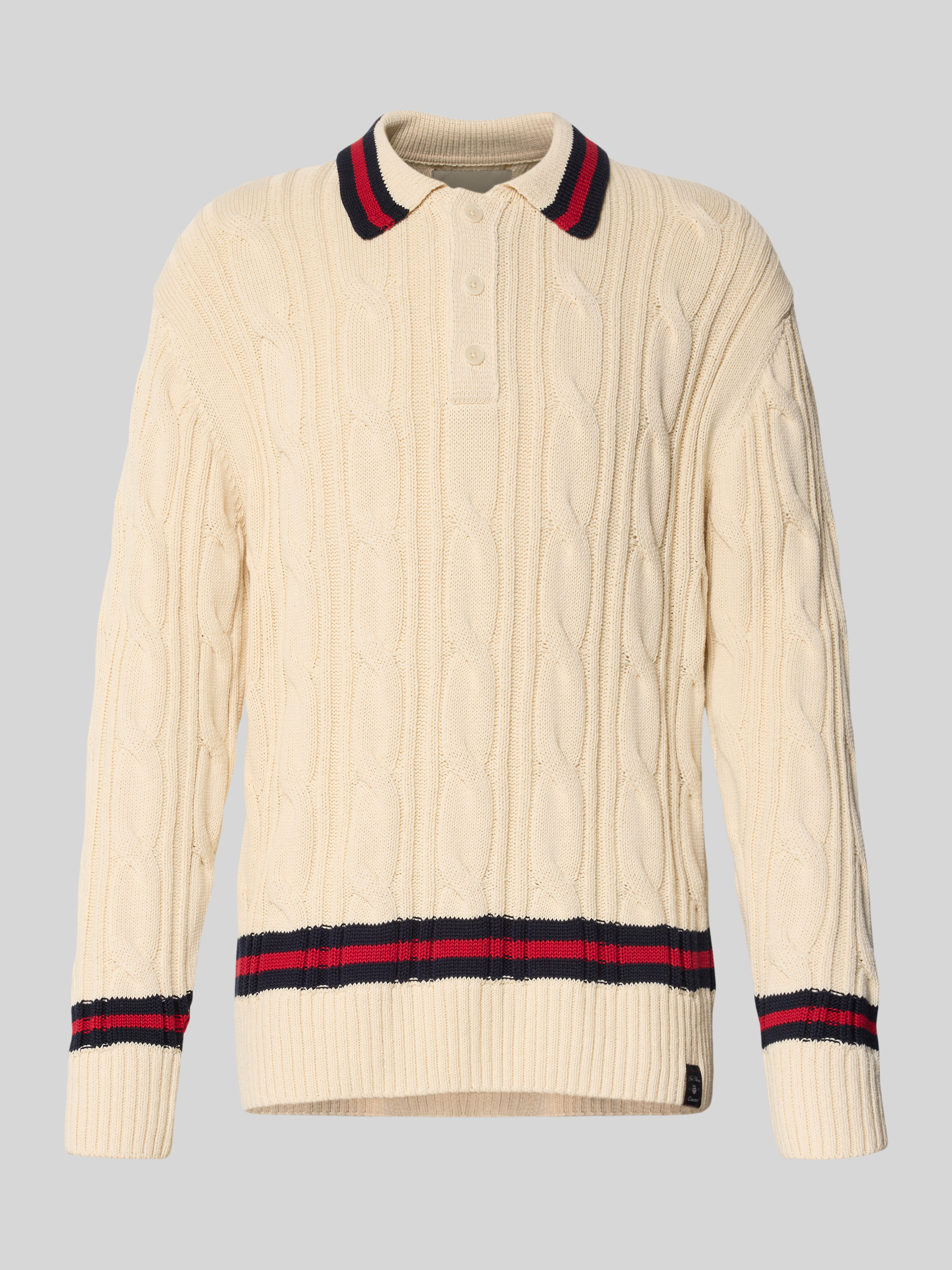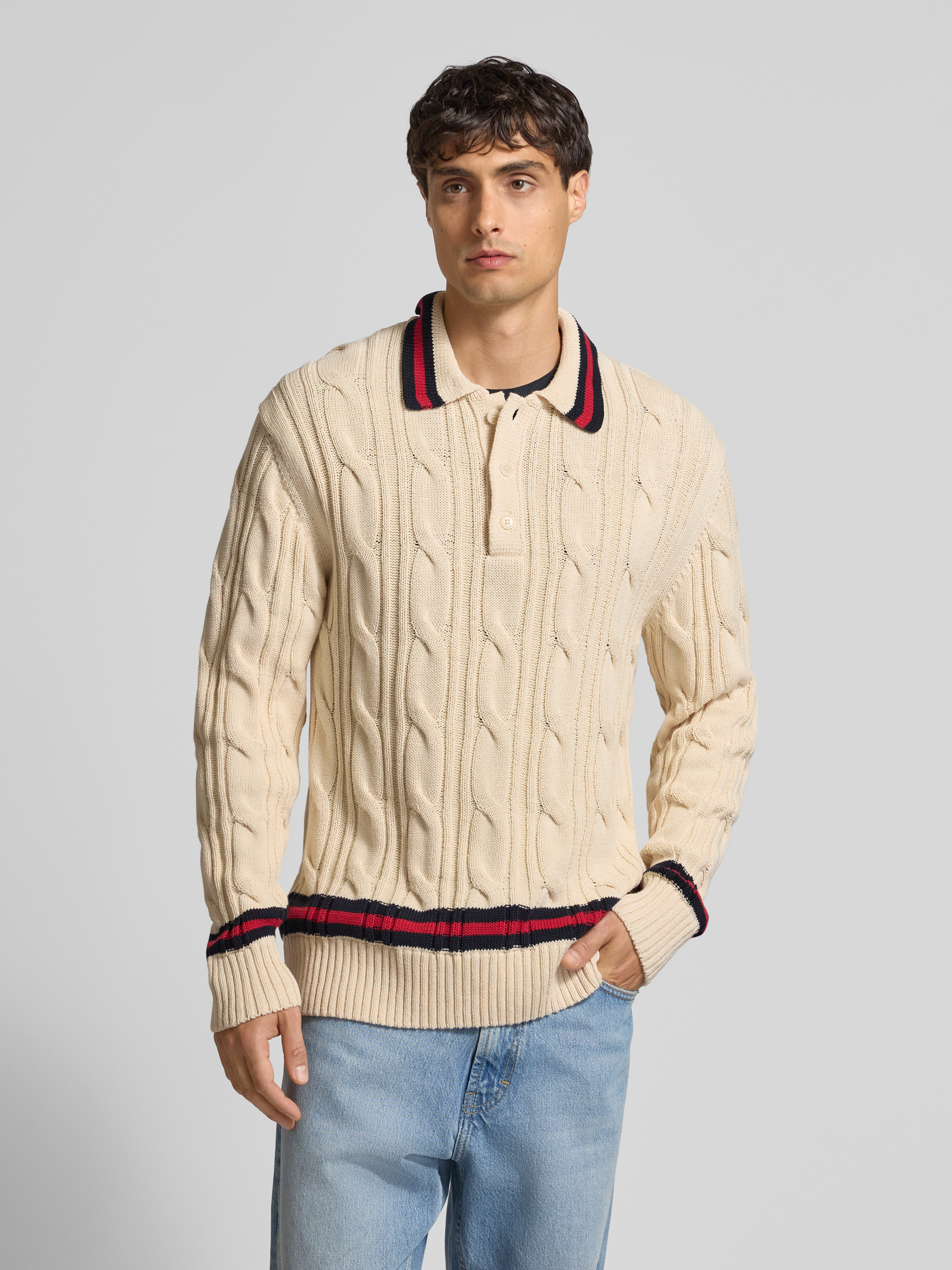 GantGebreide pullover met kabelpatroon en polokraag in zand
