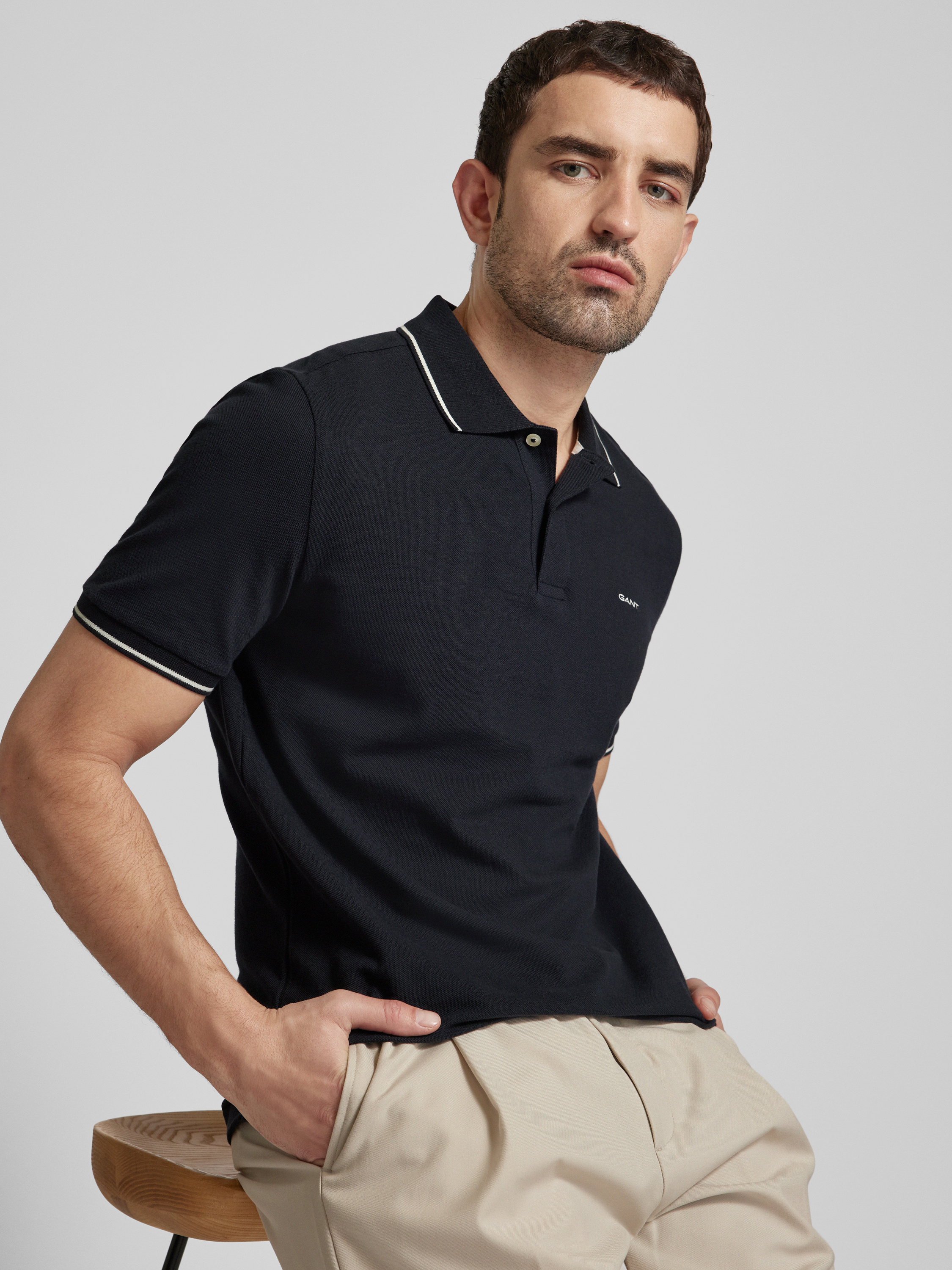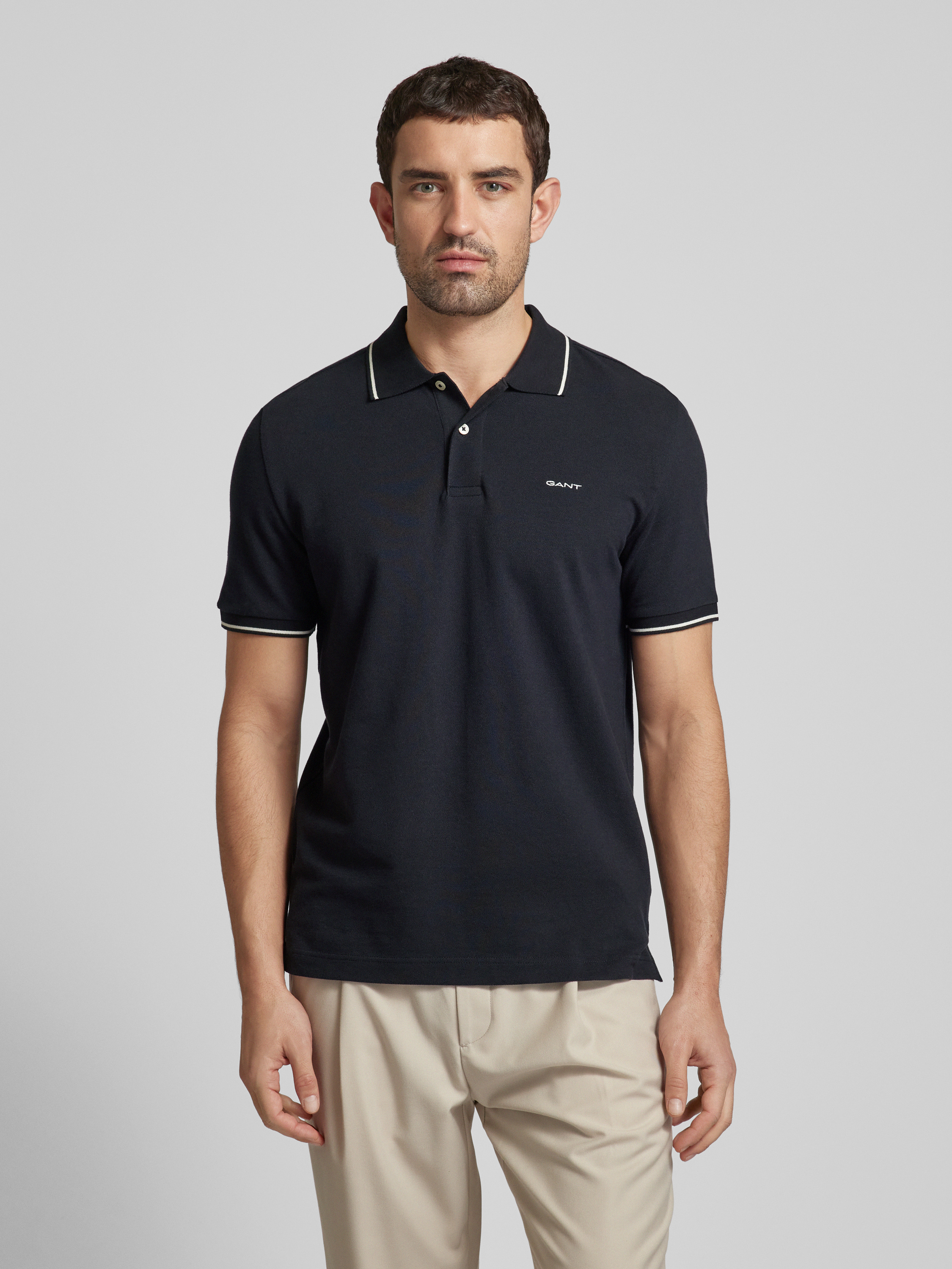 Poloshirt met labelstitching, model 'TIPPING' in zwart