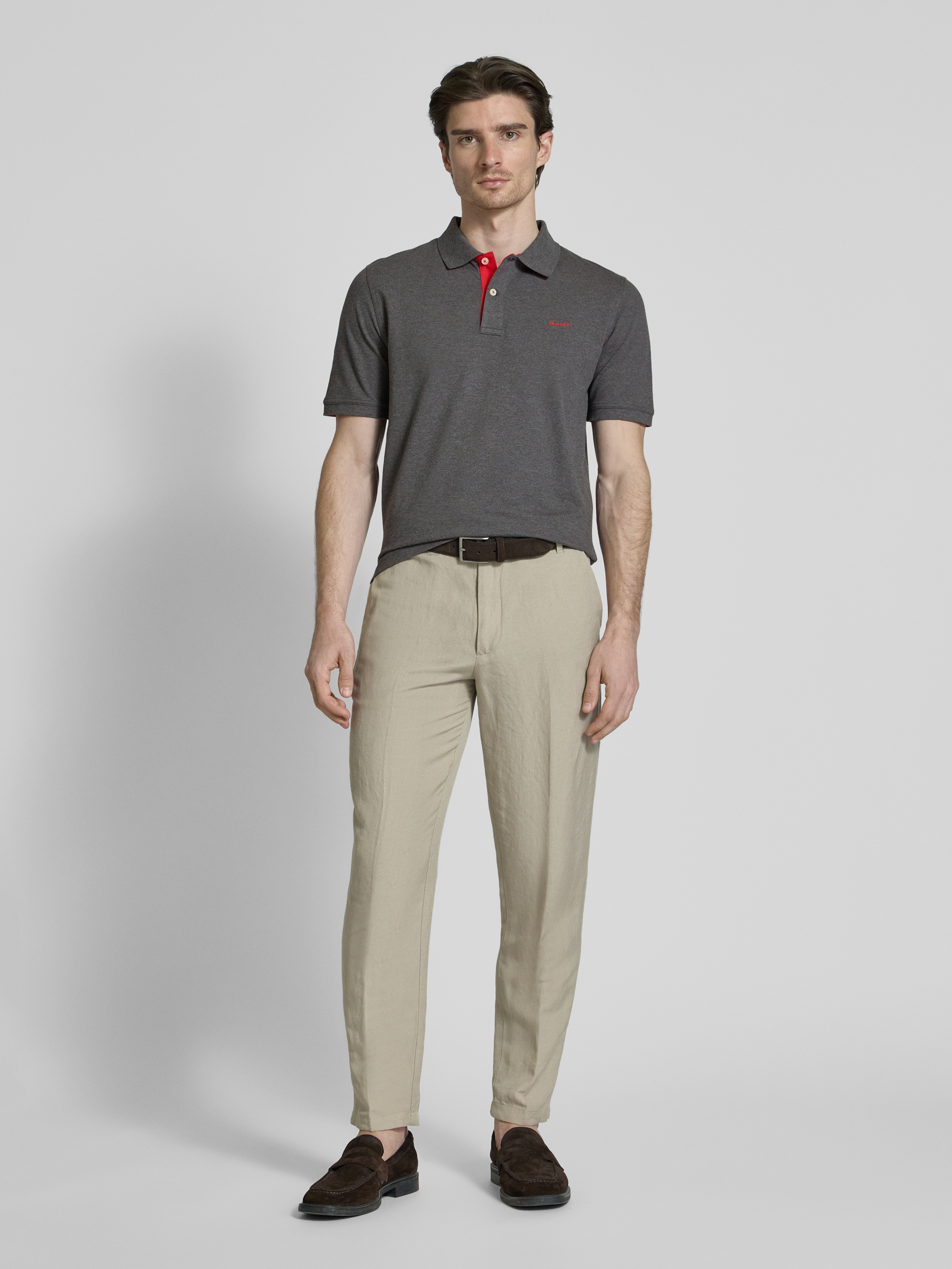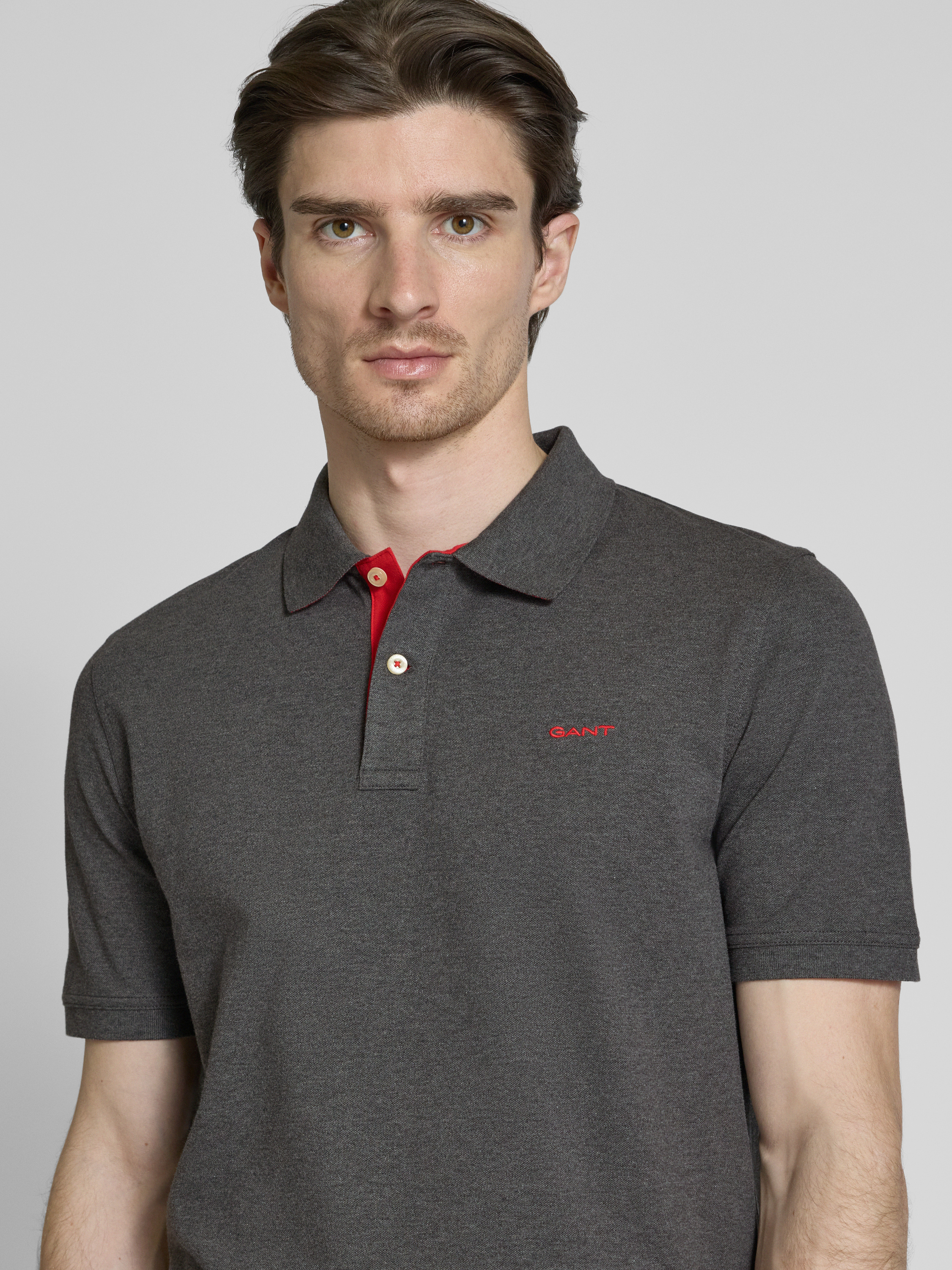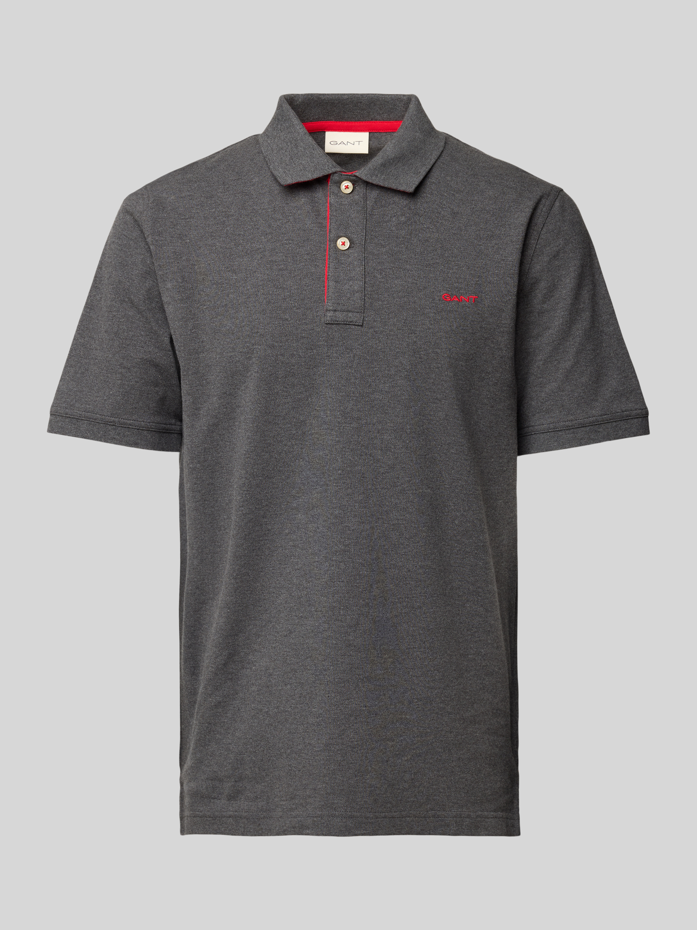 Regular fit poloshirt met labelstitching in antraciet gemêleerd
