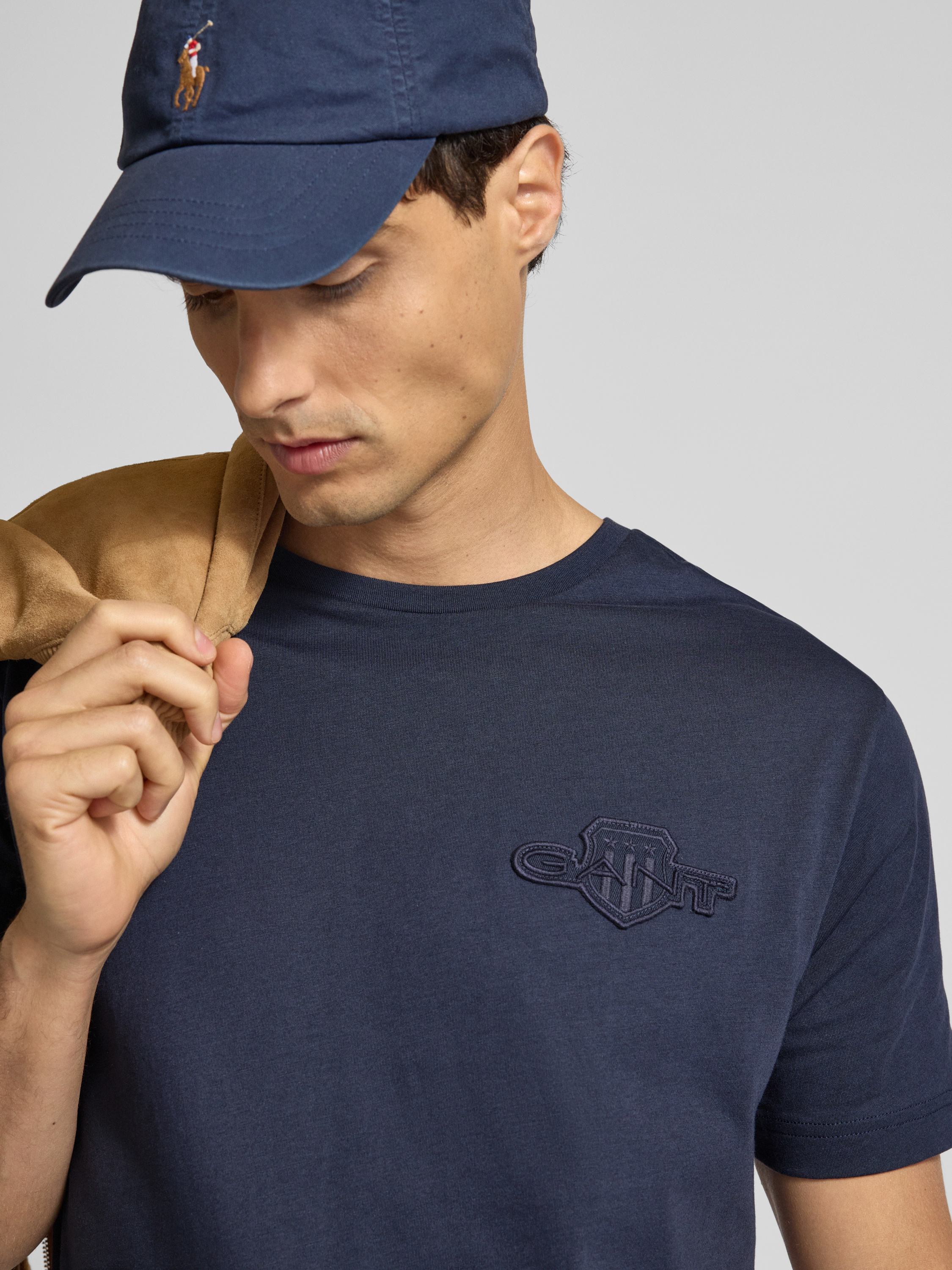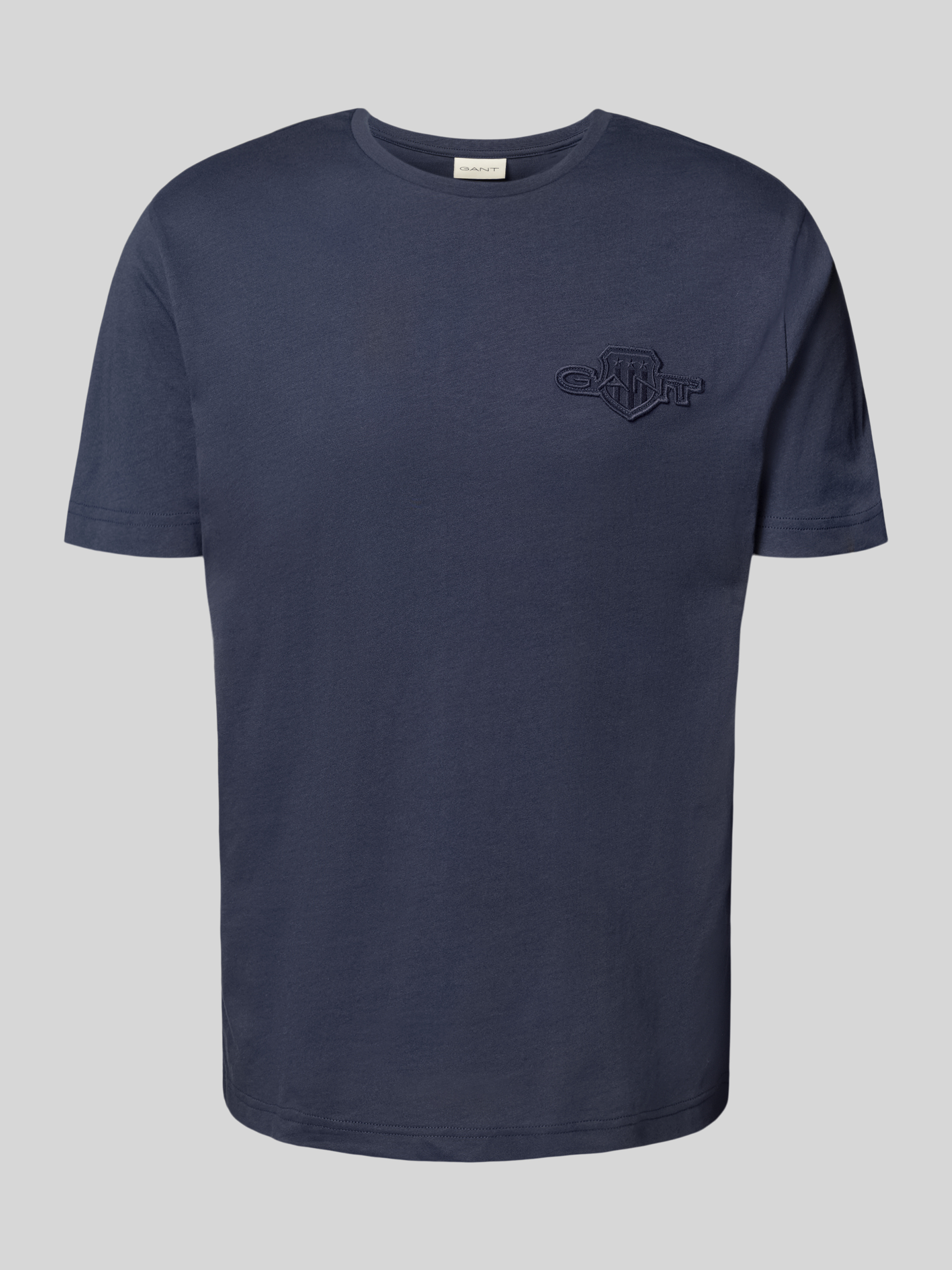 Regular fit T-shirt met labelstitching en ronde hals in donkerblauw