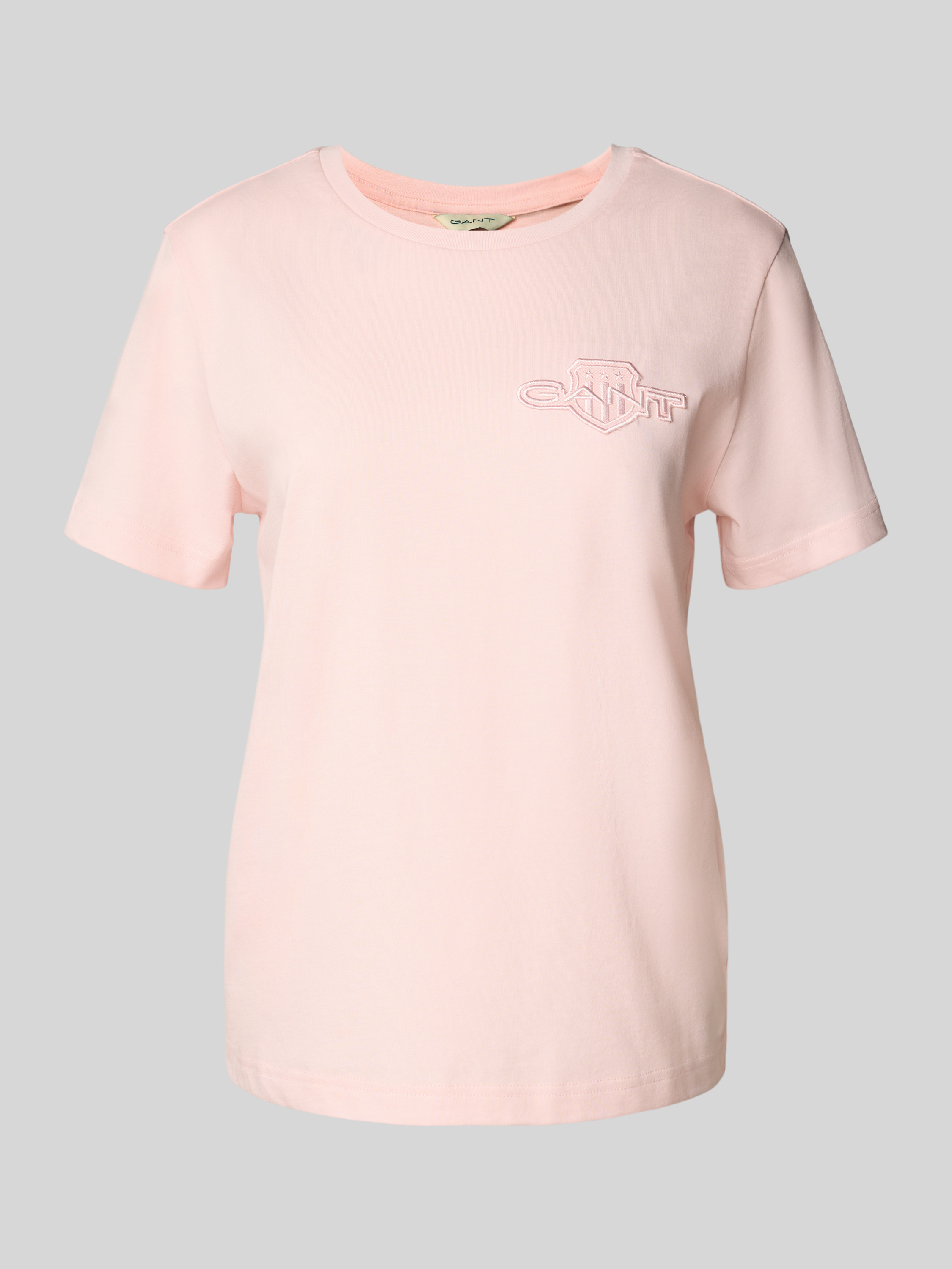 Regular fit T-shirt van puur katoen met logopatch in roze