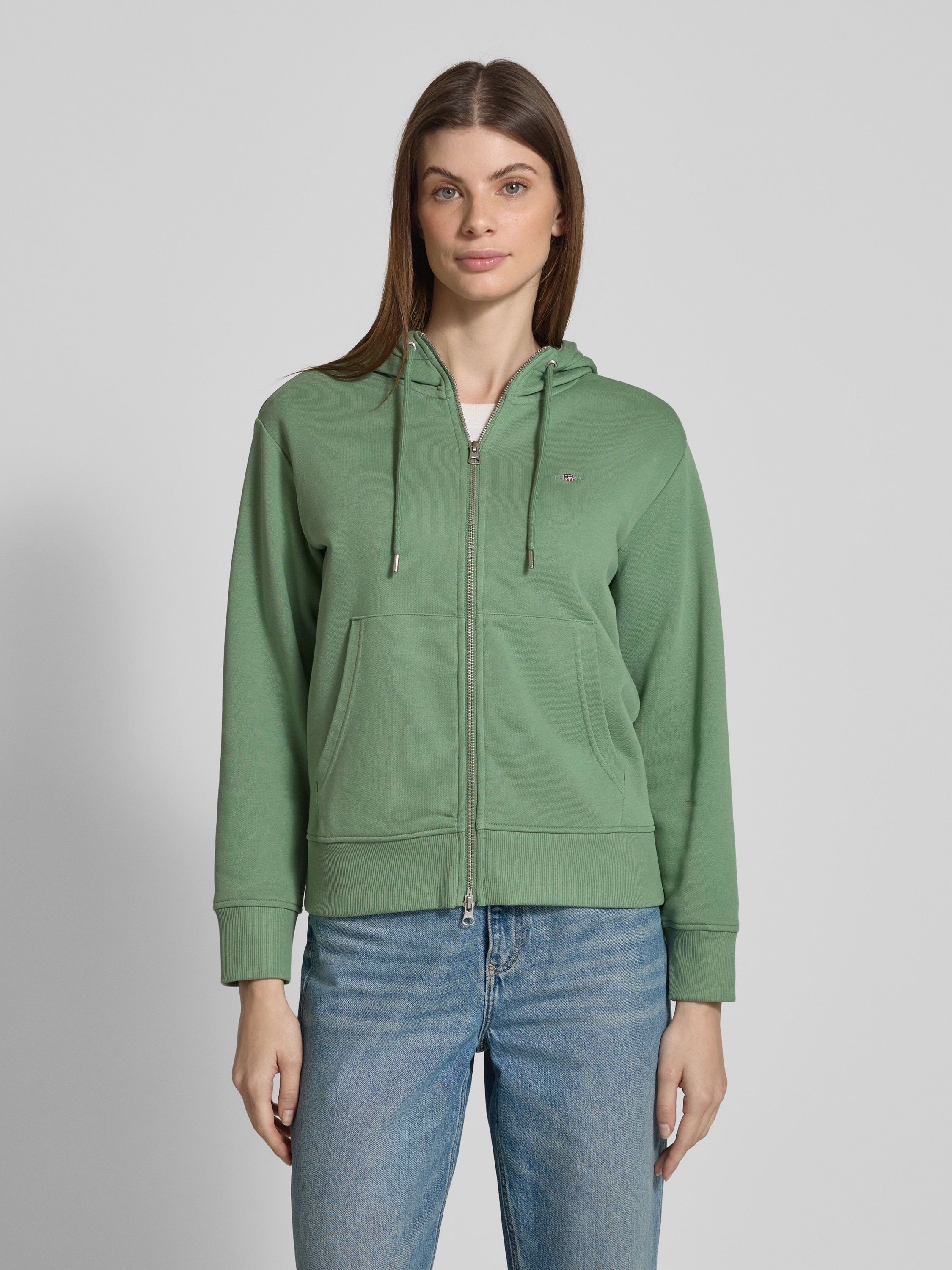 Relaxed fit sweatjack van katoenmix met kangoeroezak in mintgroen