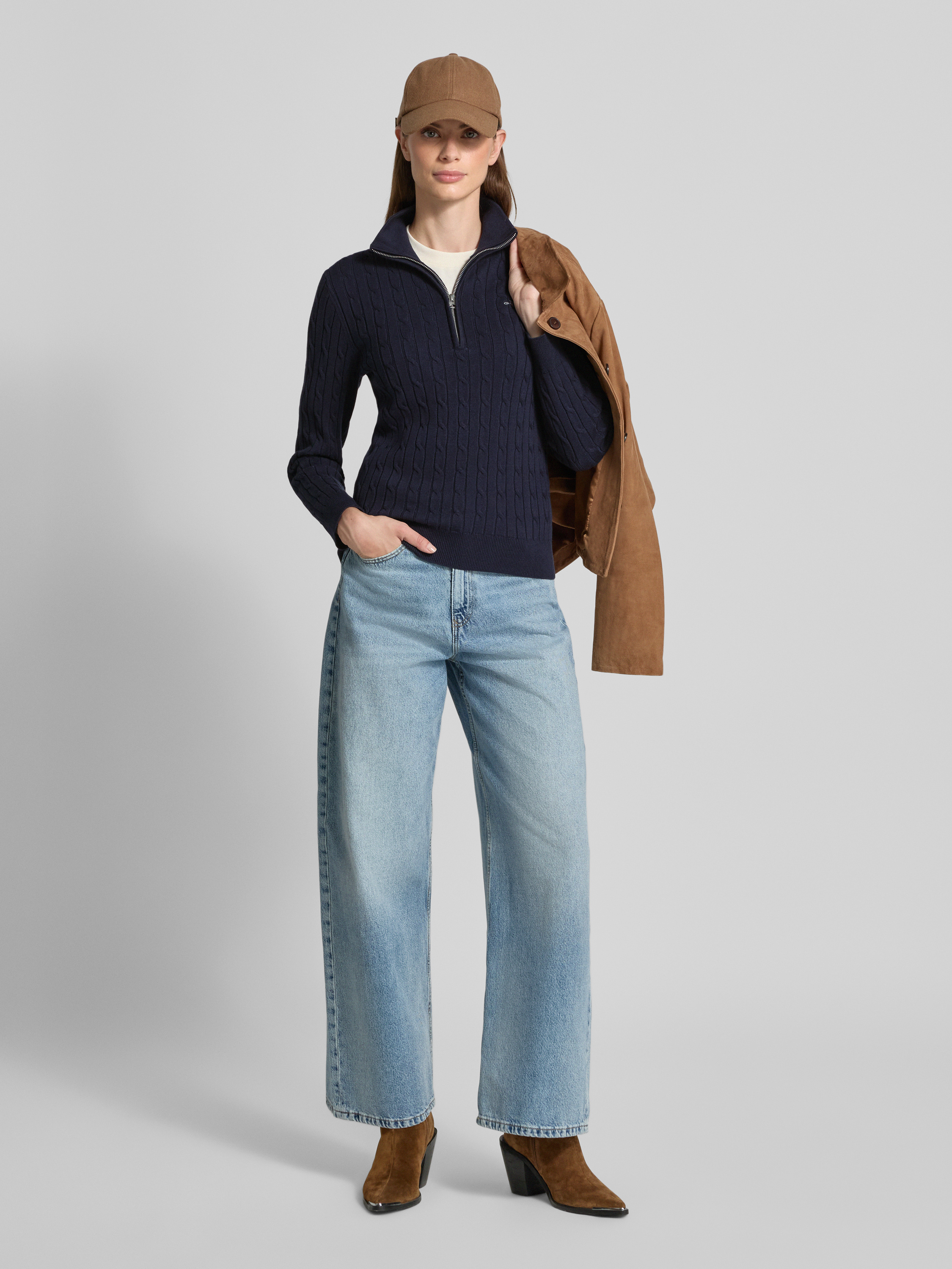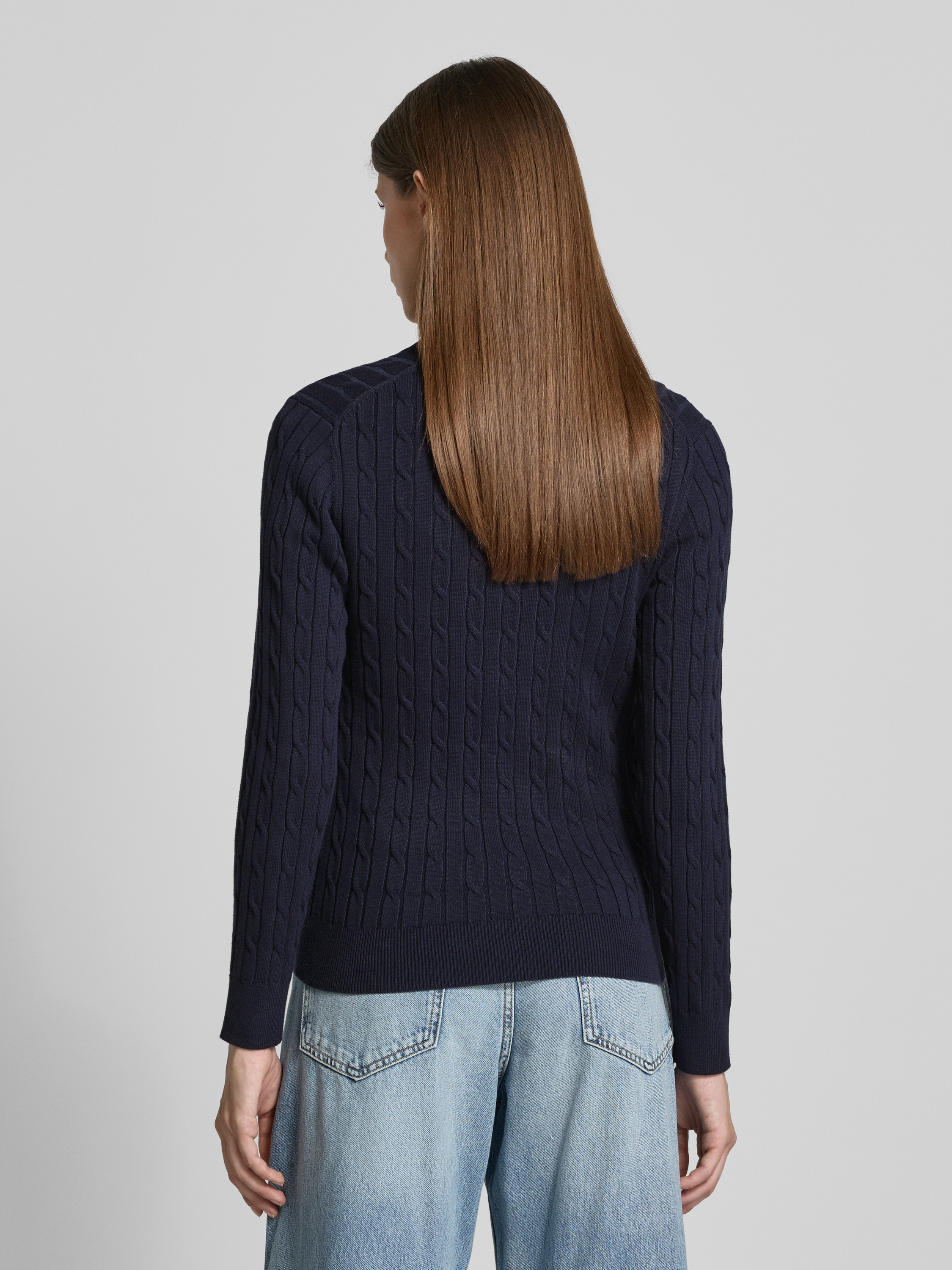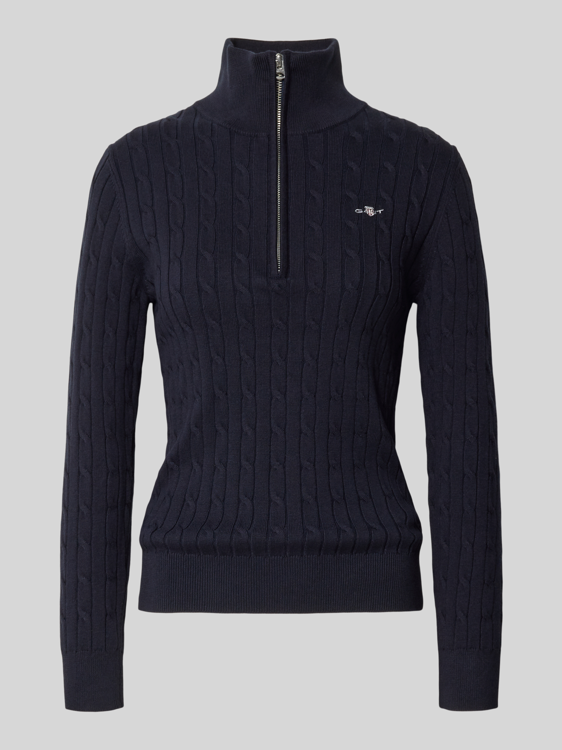 GantSchipperstrui met logostitching en kabelpatroon in marineblauw