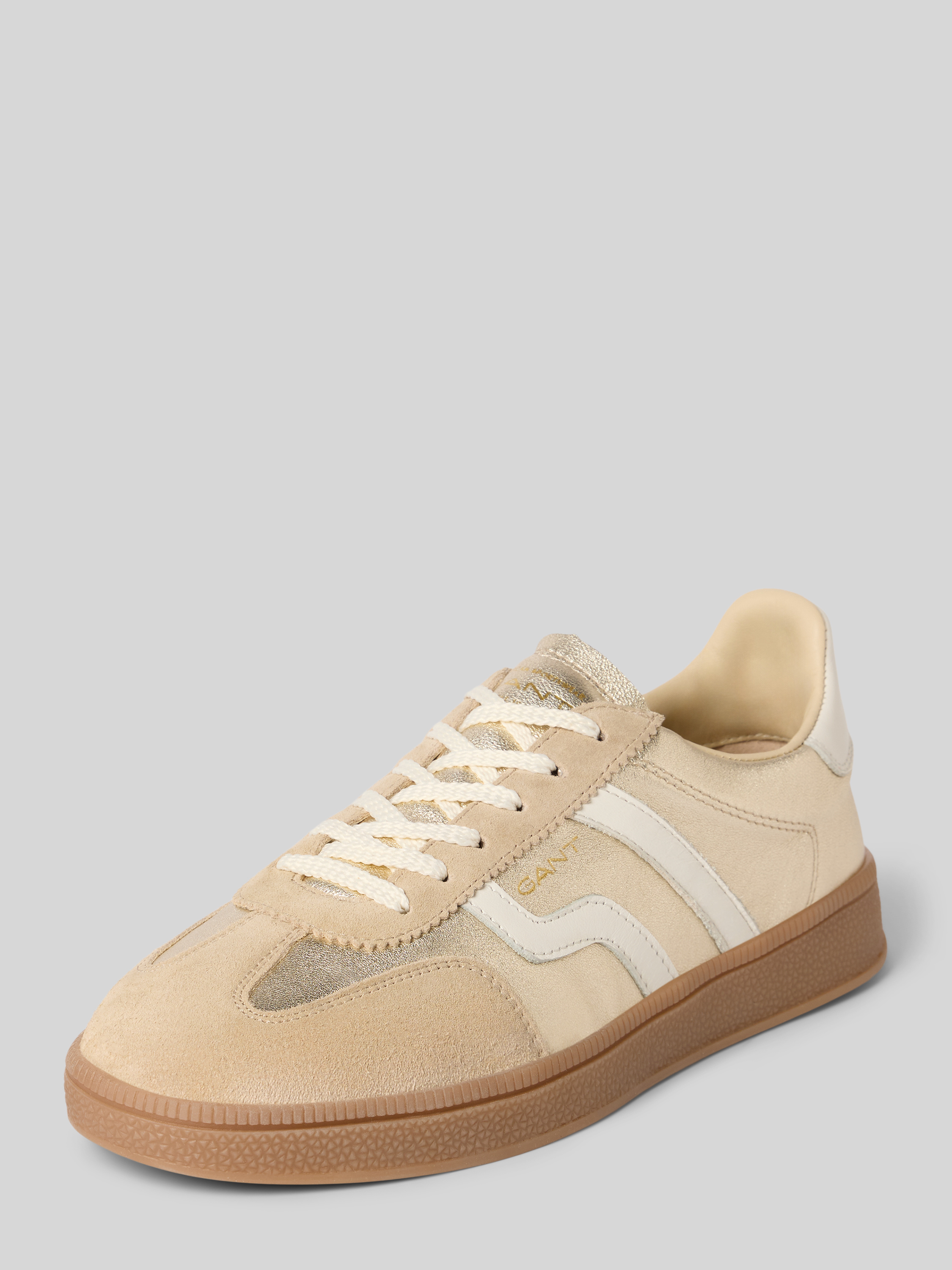 Sneakers van echt leer met reliëflogo, model 'Cuzima' in goud gemêleerd