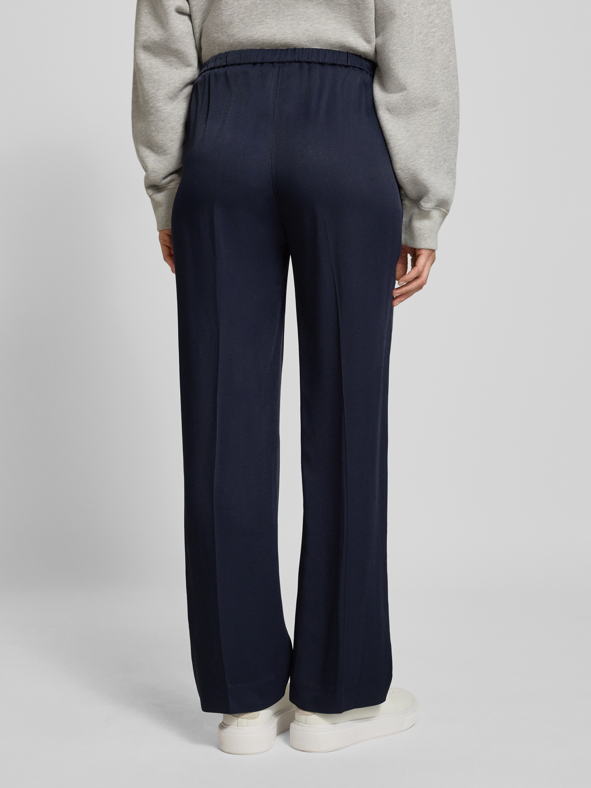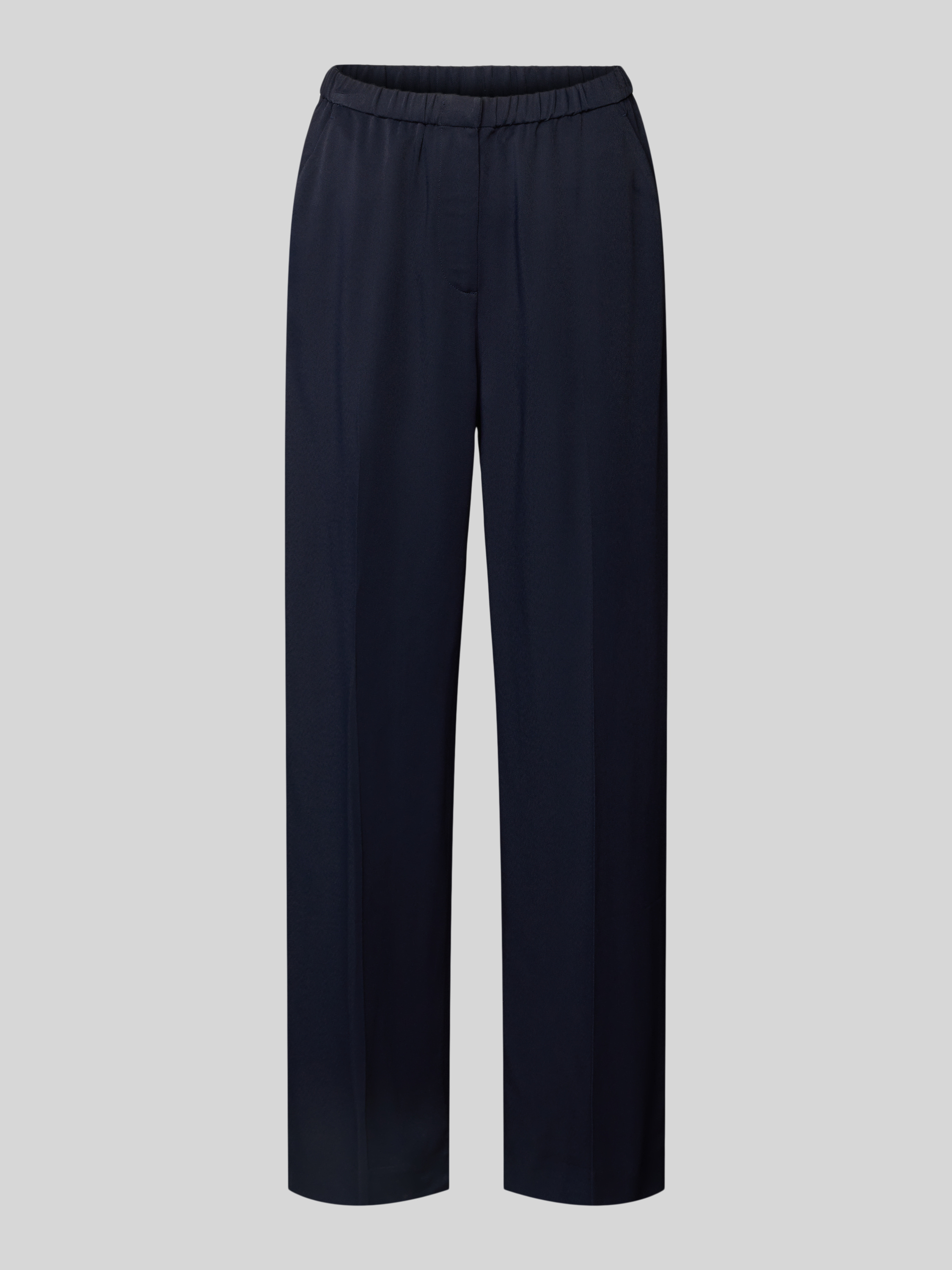 Straight fit stoffen broek van pure viscose met persplooien in marineblauw