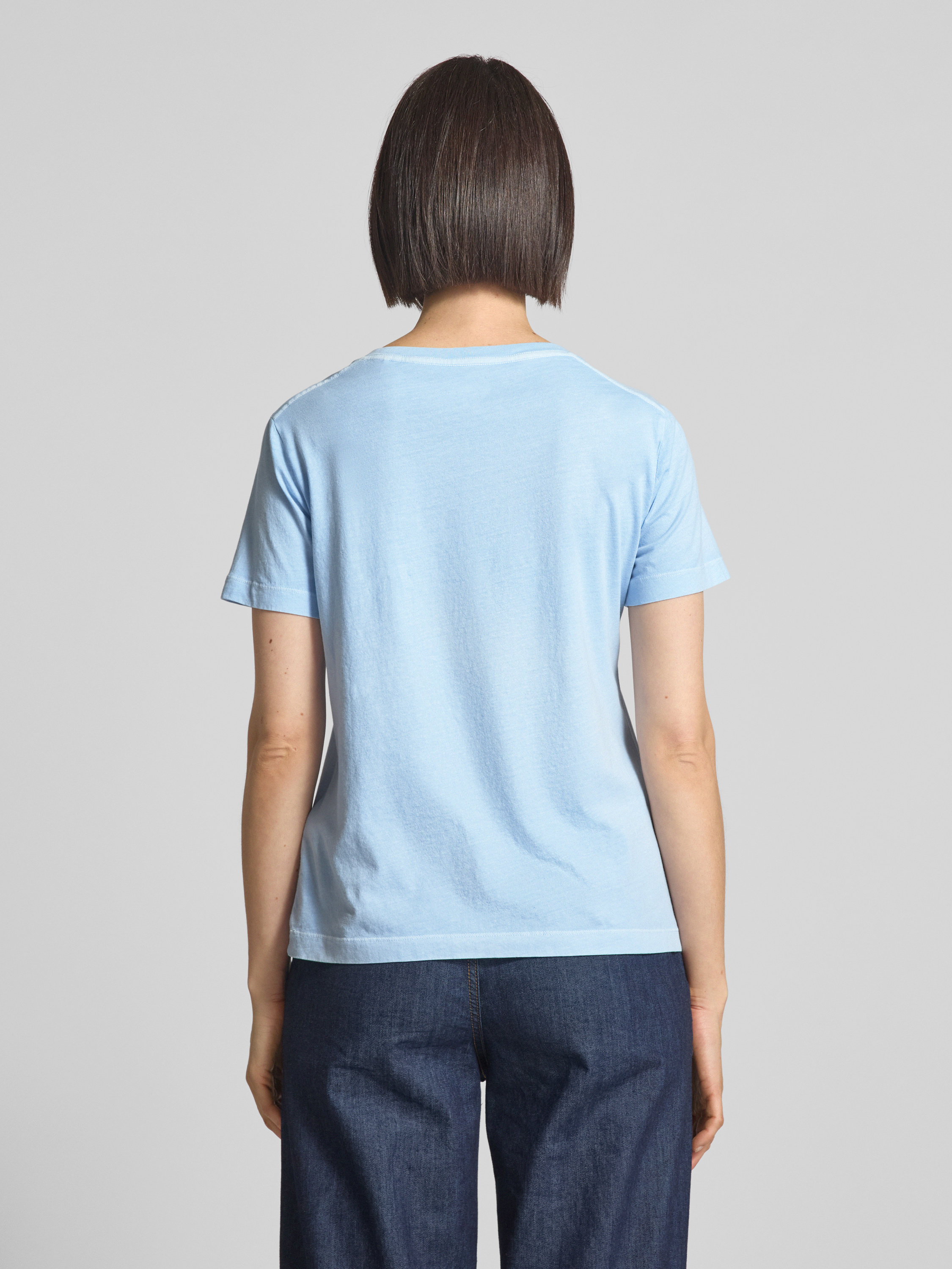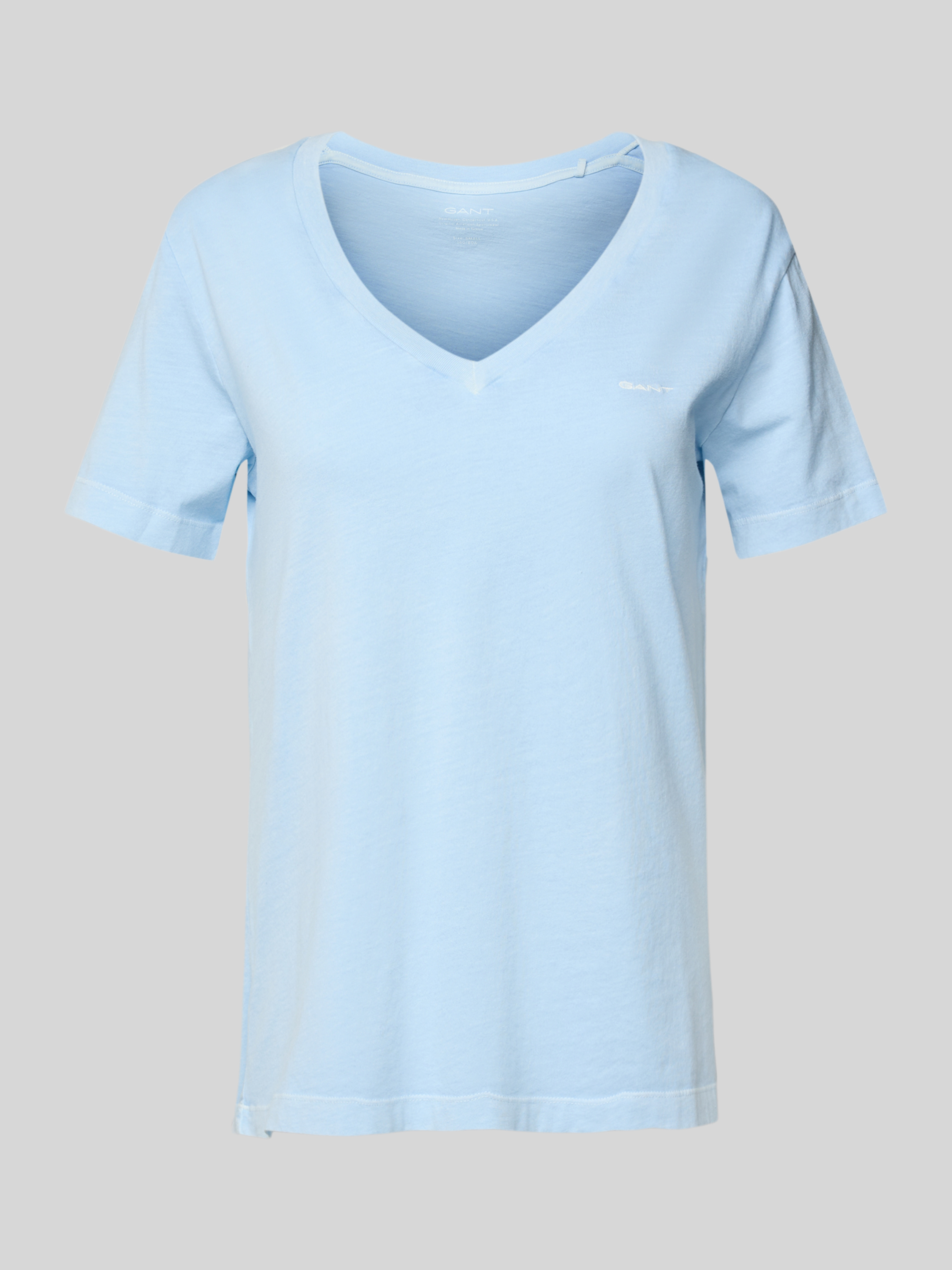 T-shirt met geribde V-hals in lichtblauw