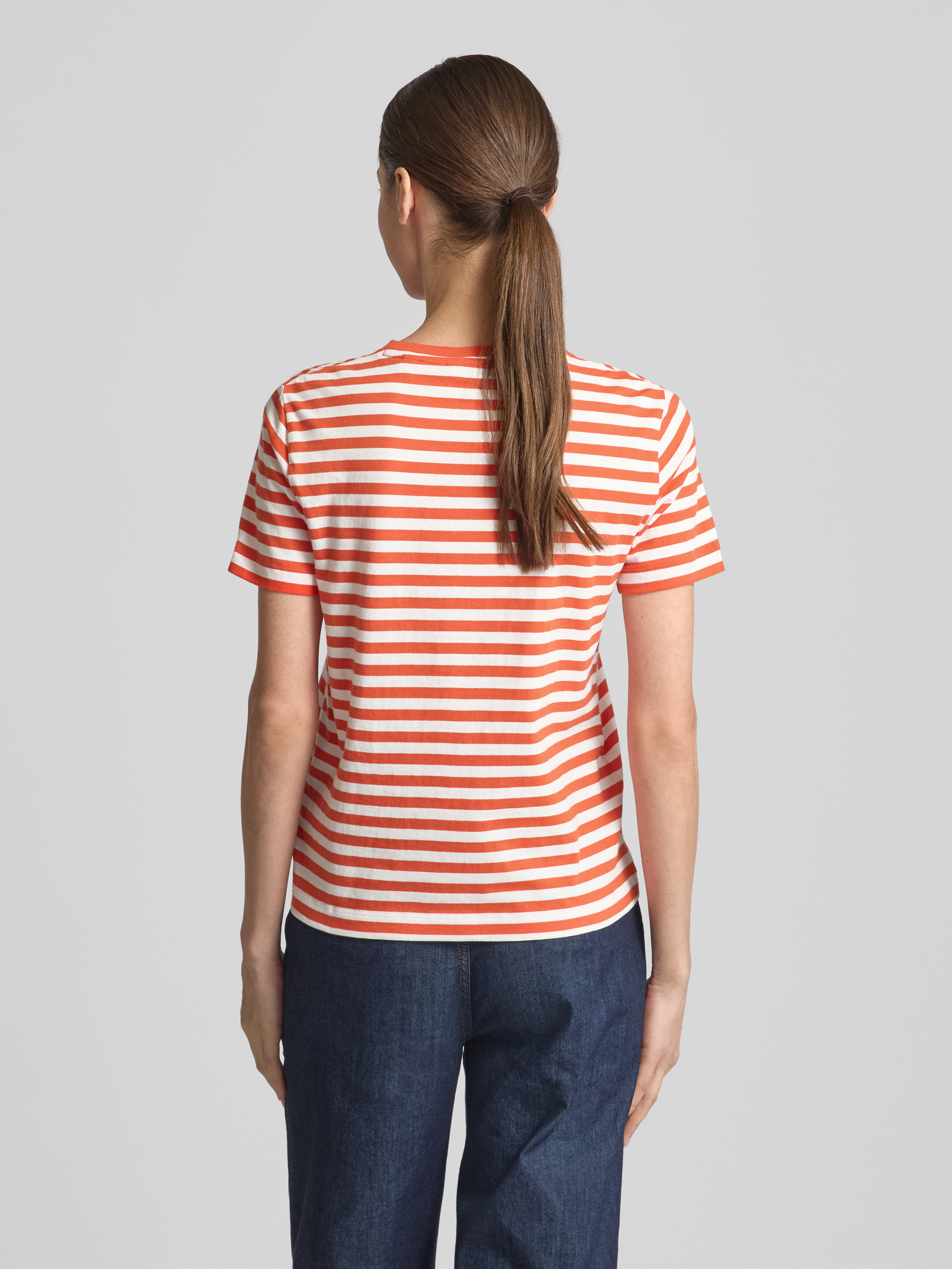 T-shirt met labelstitching in koraal