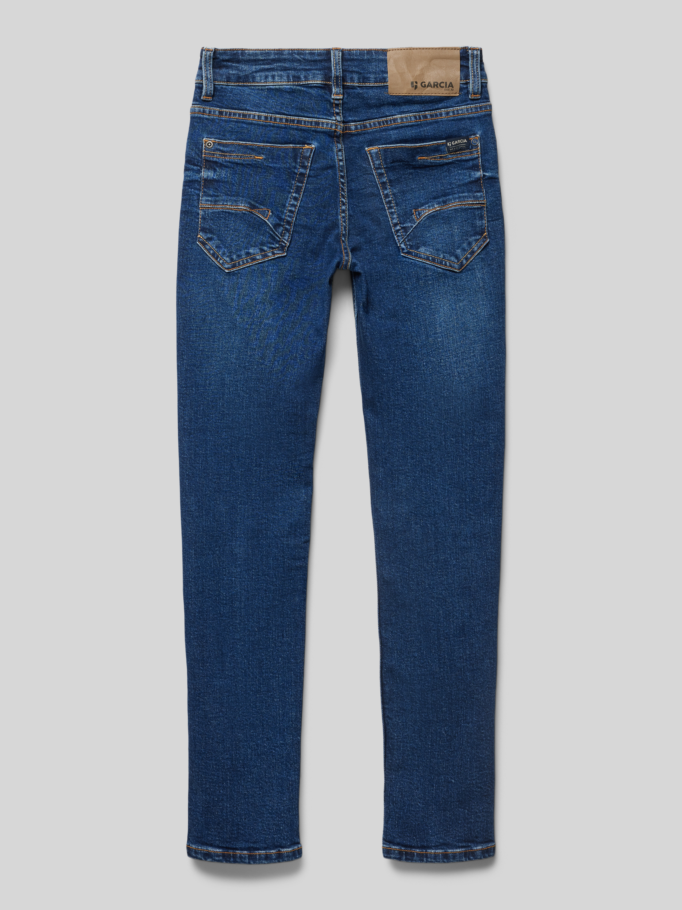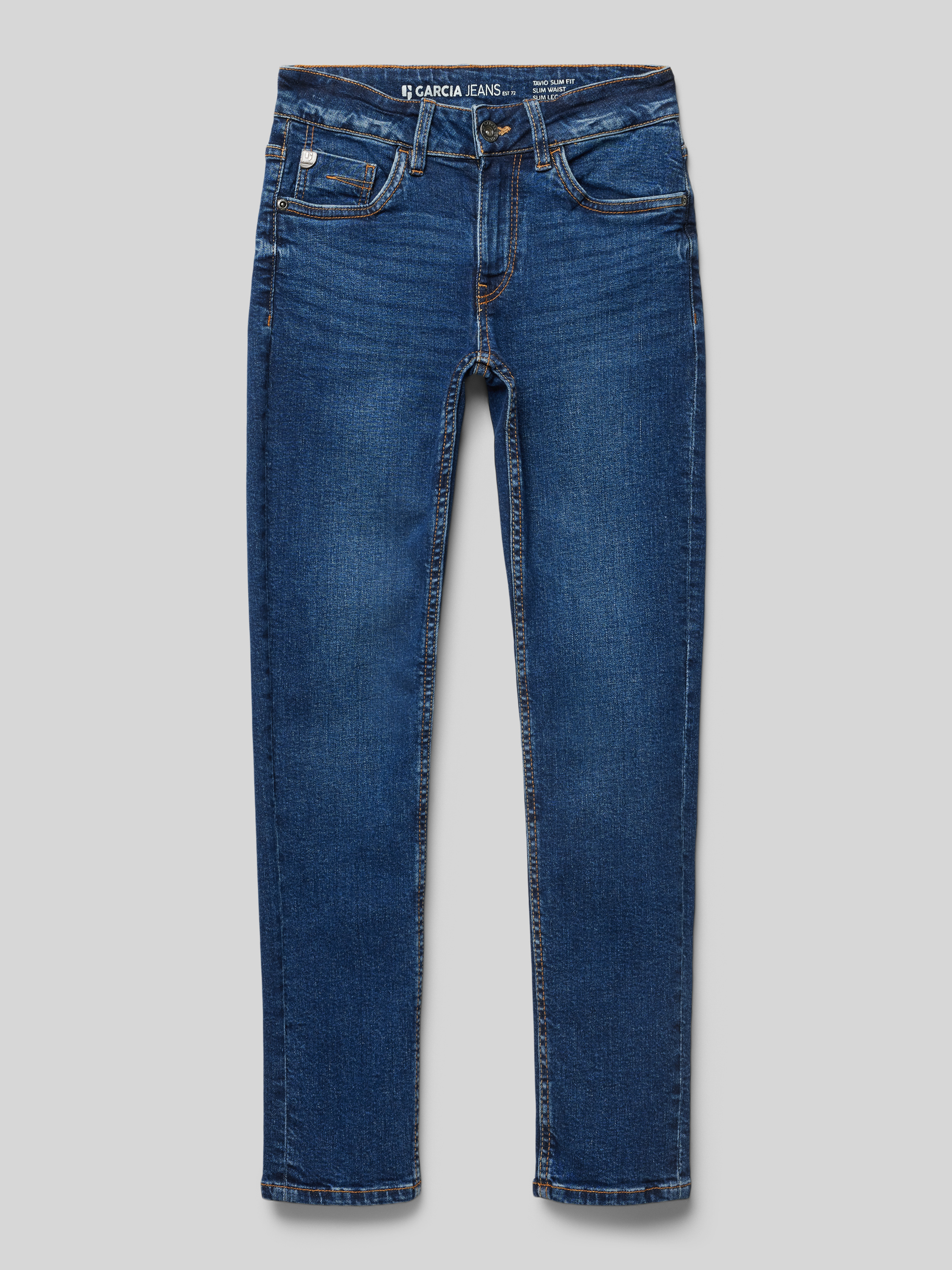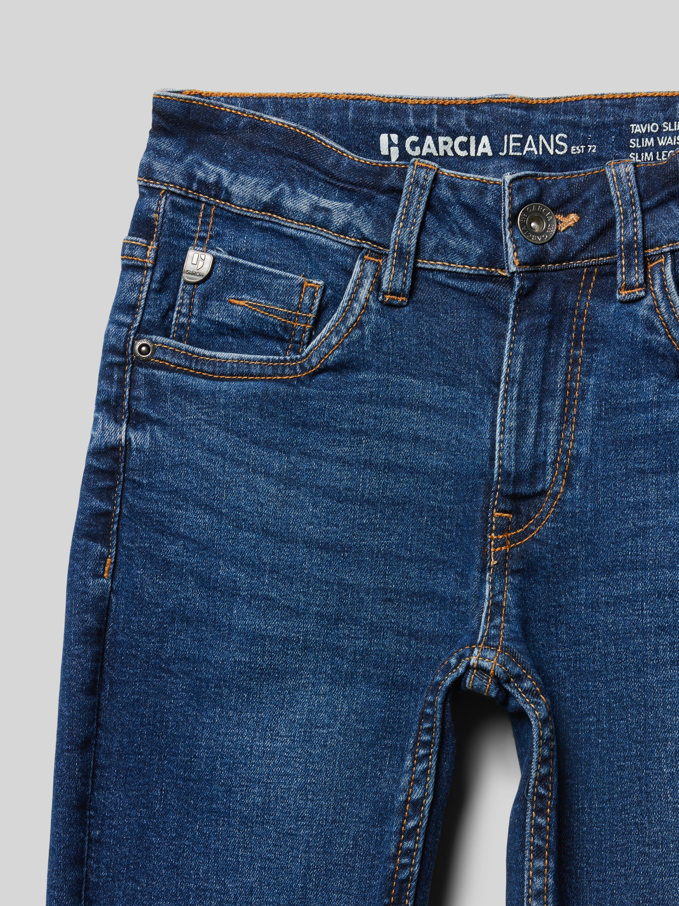 Slim fit jeans met labelpatch, model 'TAVIO' in blauw