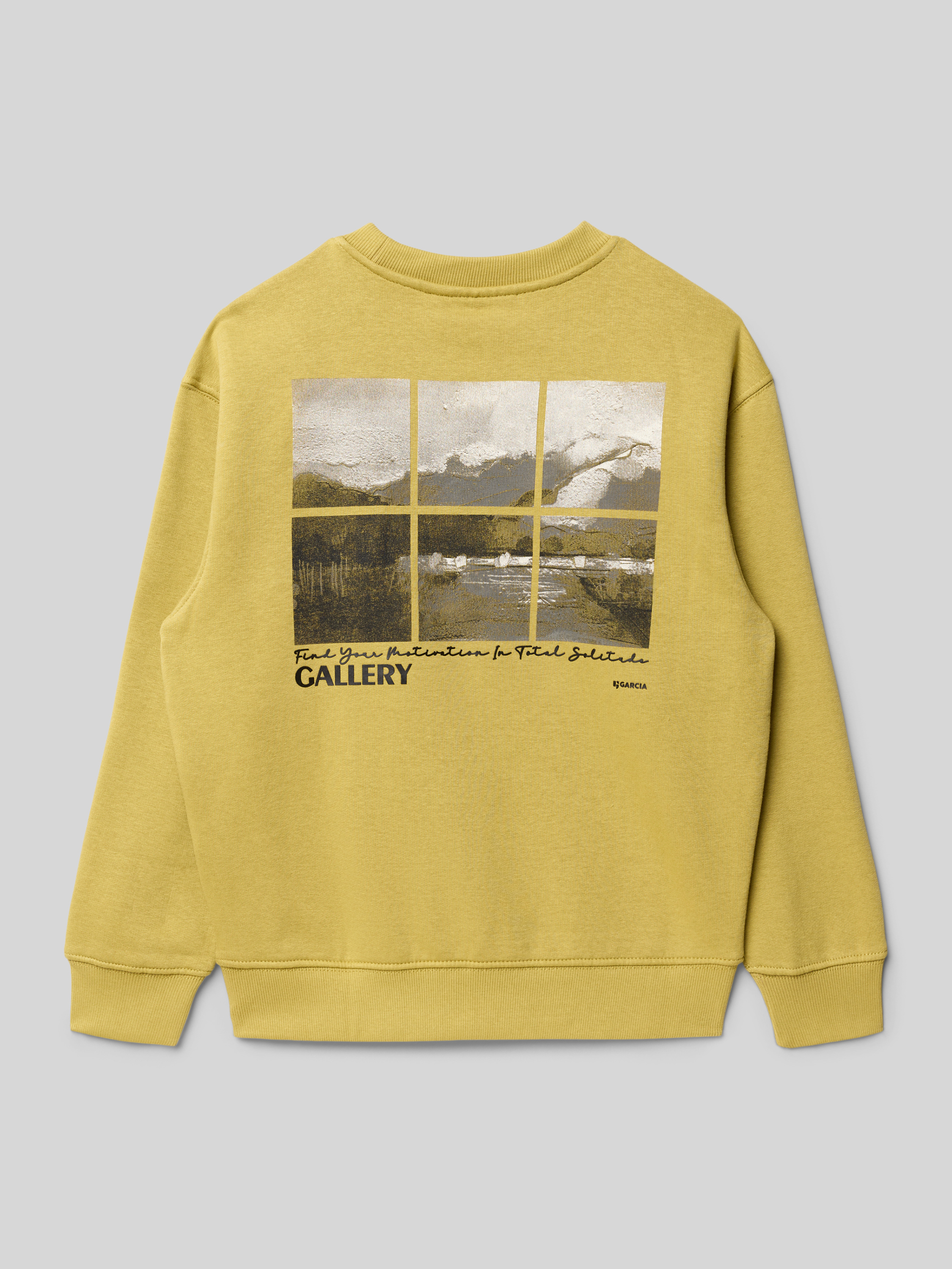 Sweatshirt met motiefprint aan de achterkant in mosterdgeel