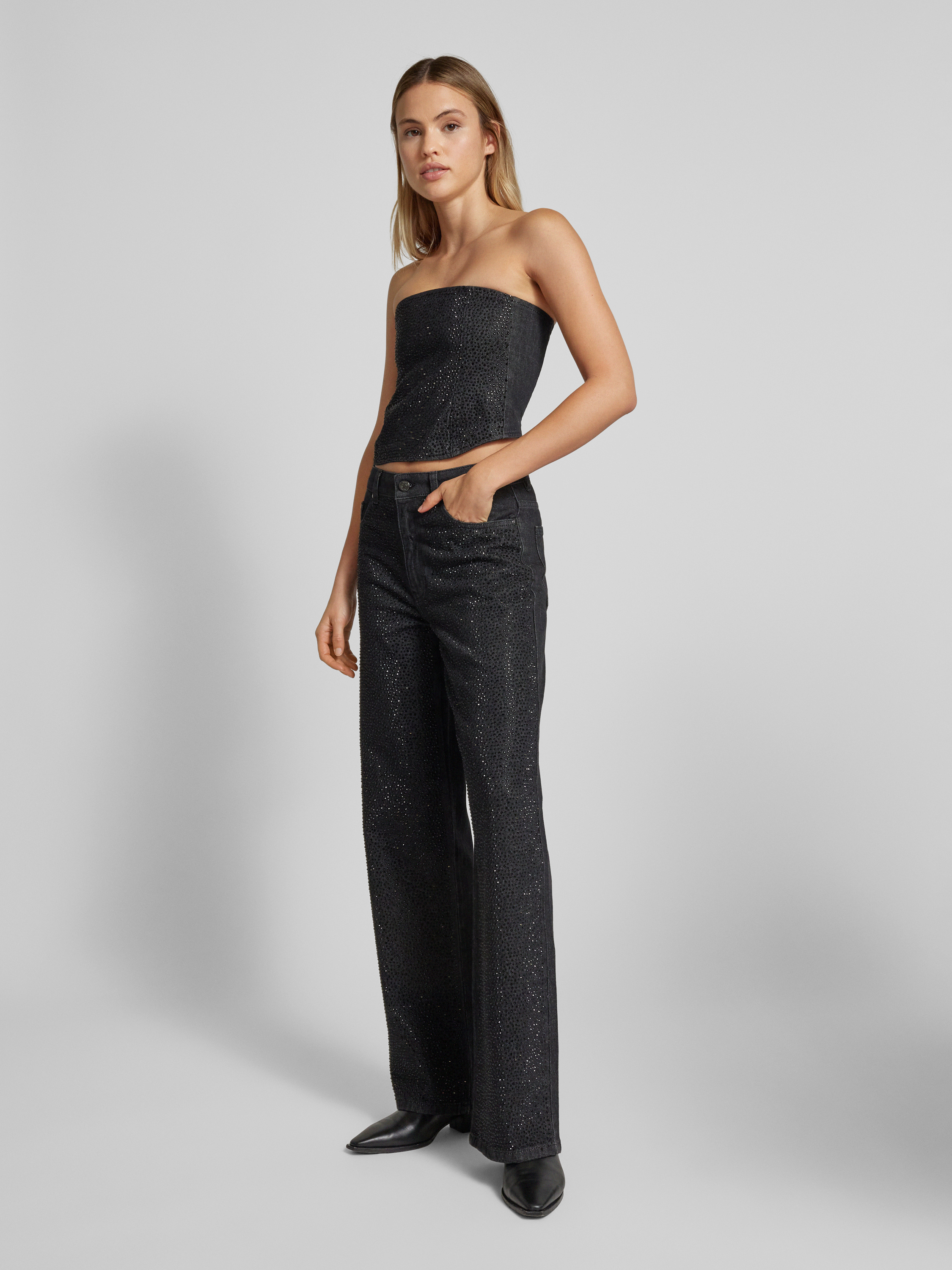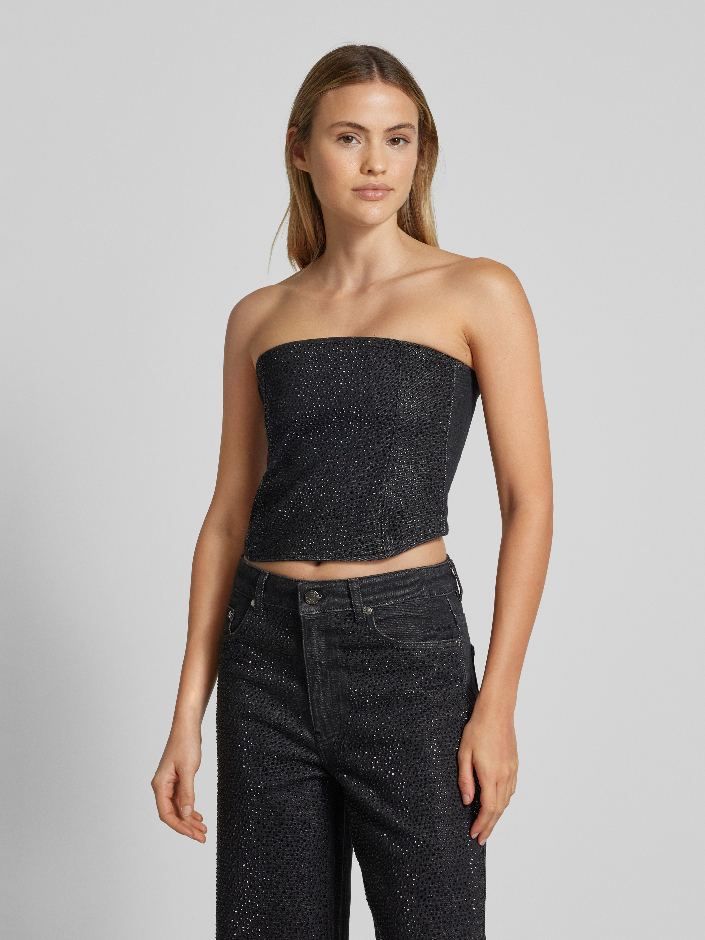 GestuzBandeautop met siersteentjes, model 'Zorah' in antraciet