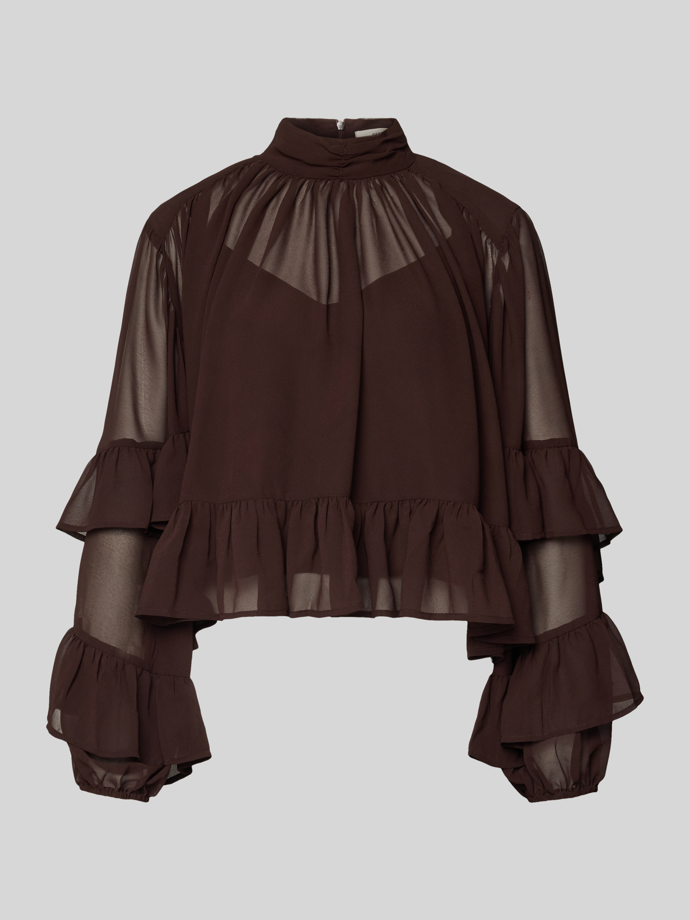 Blouseshirt met volants, model 'mio' in donkerbruin