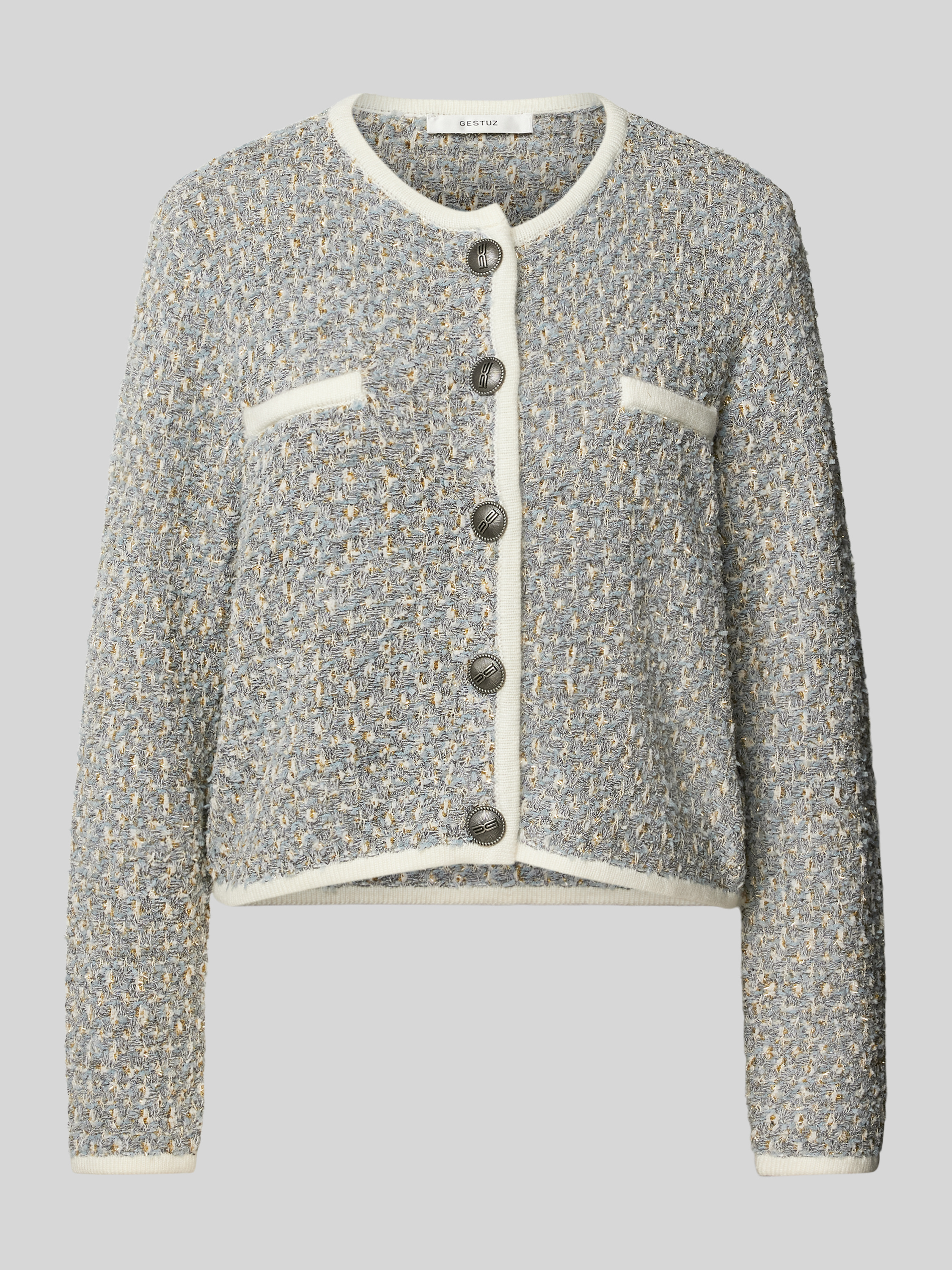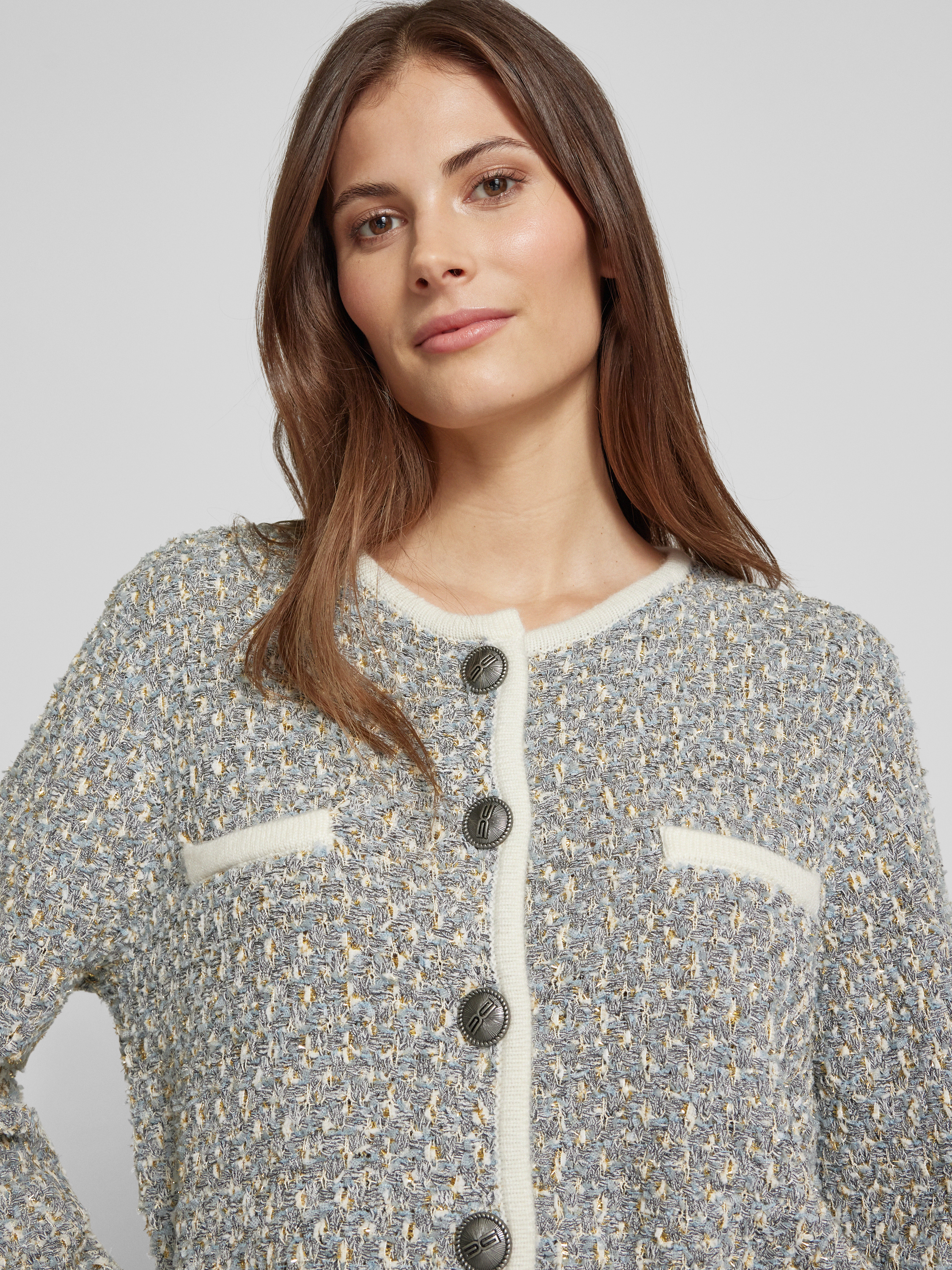 GestuzGebreid jack met knoopsluiting, model 'nalin' in lichtblauw