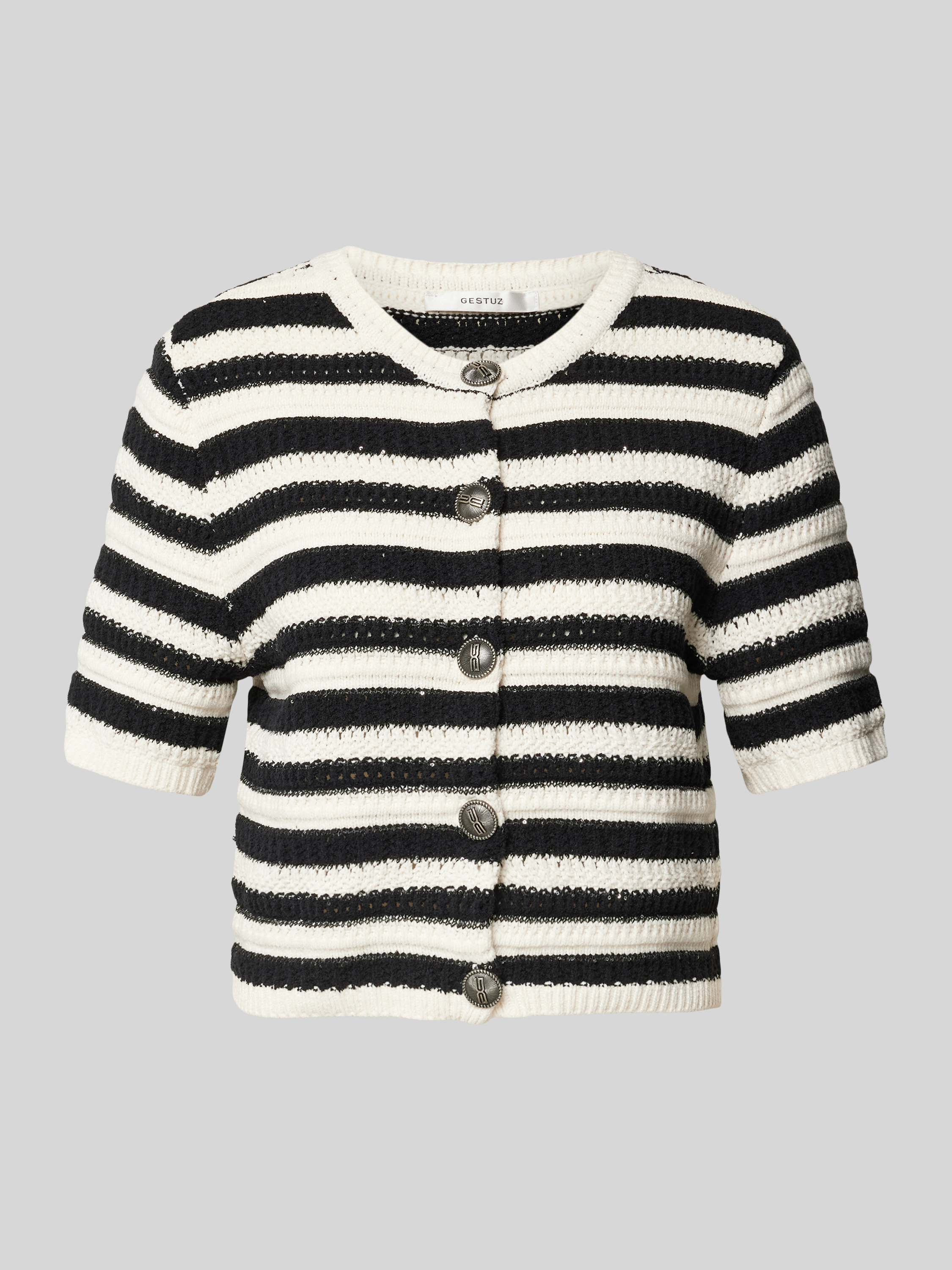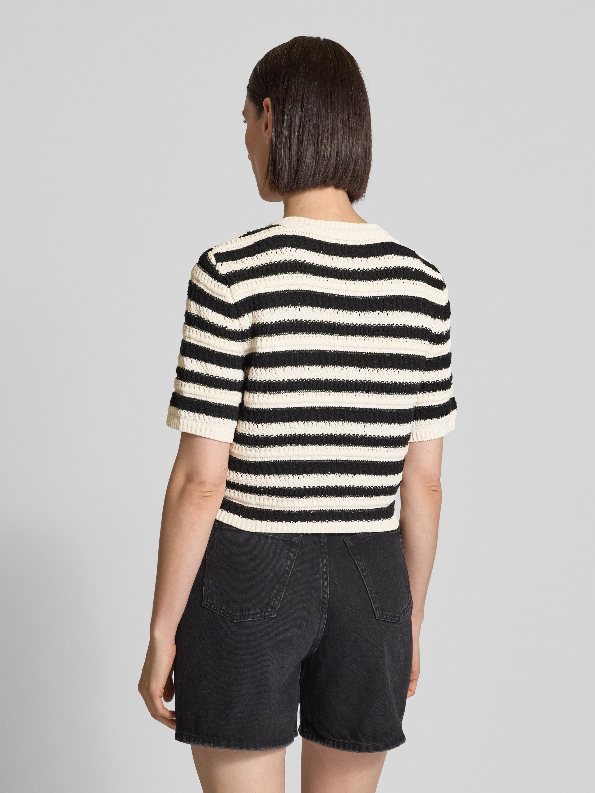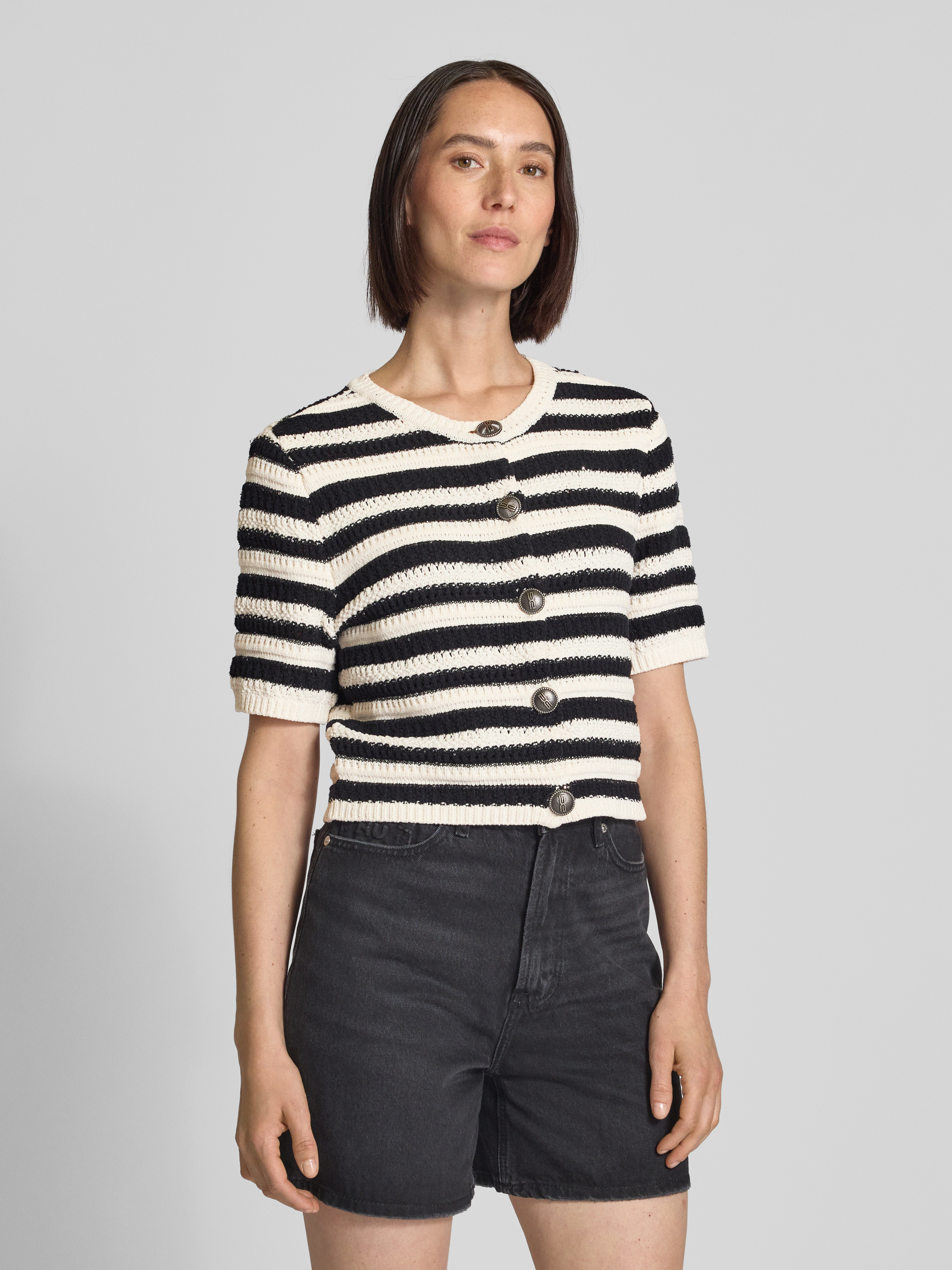 GestuzGebreid jack met ronde hals, model 'sailie' in zwart