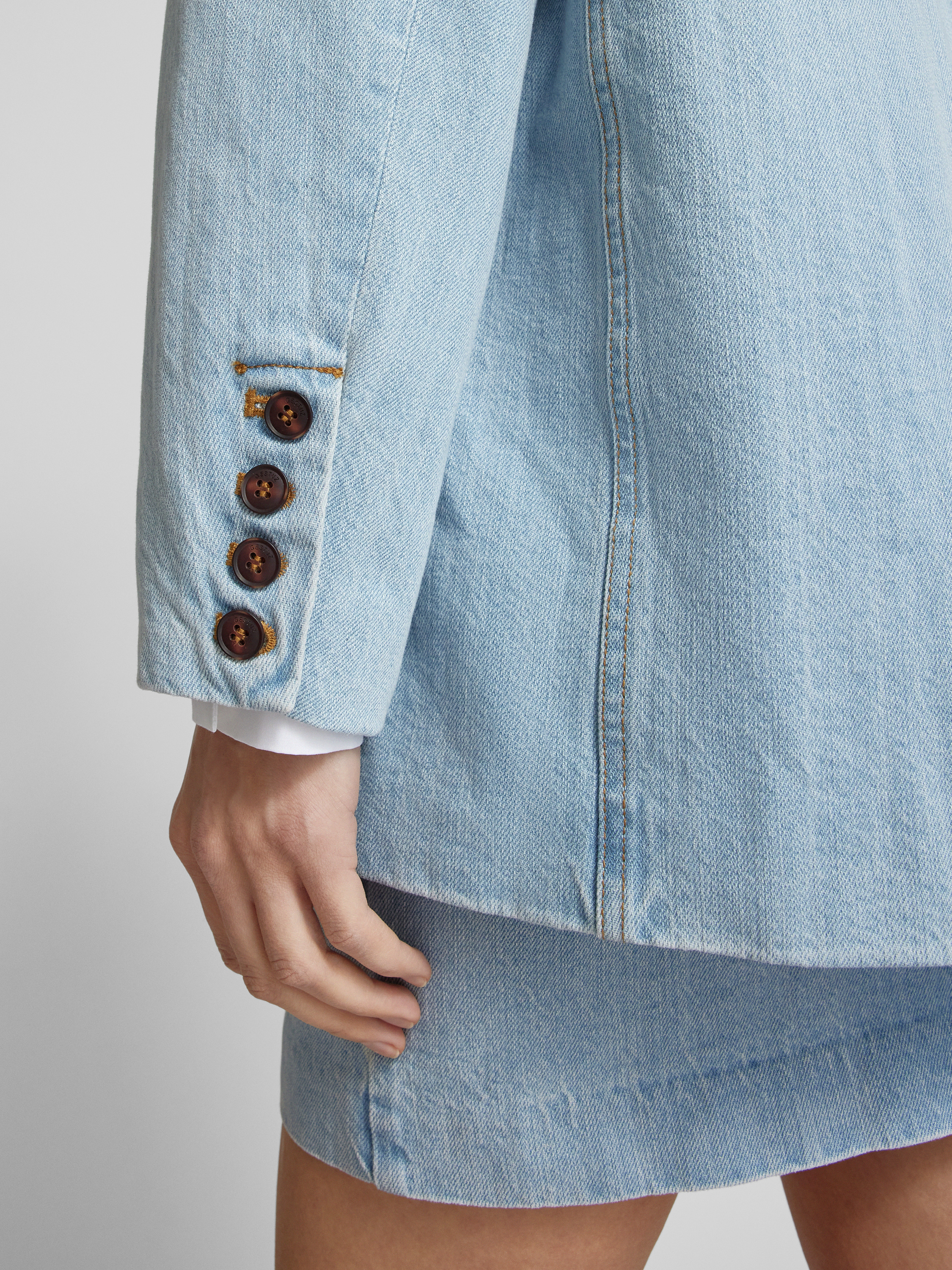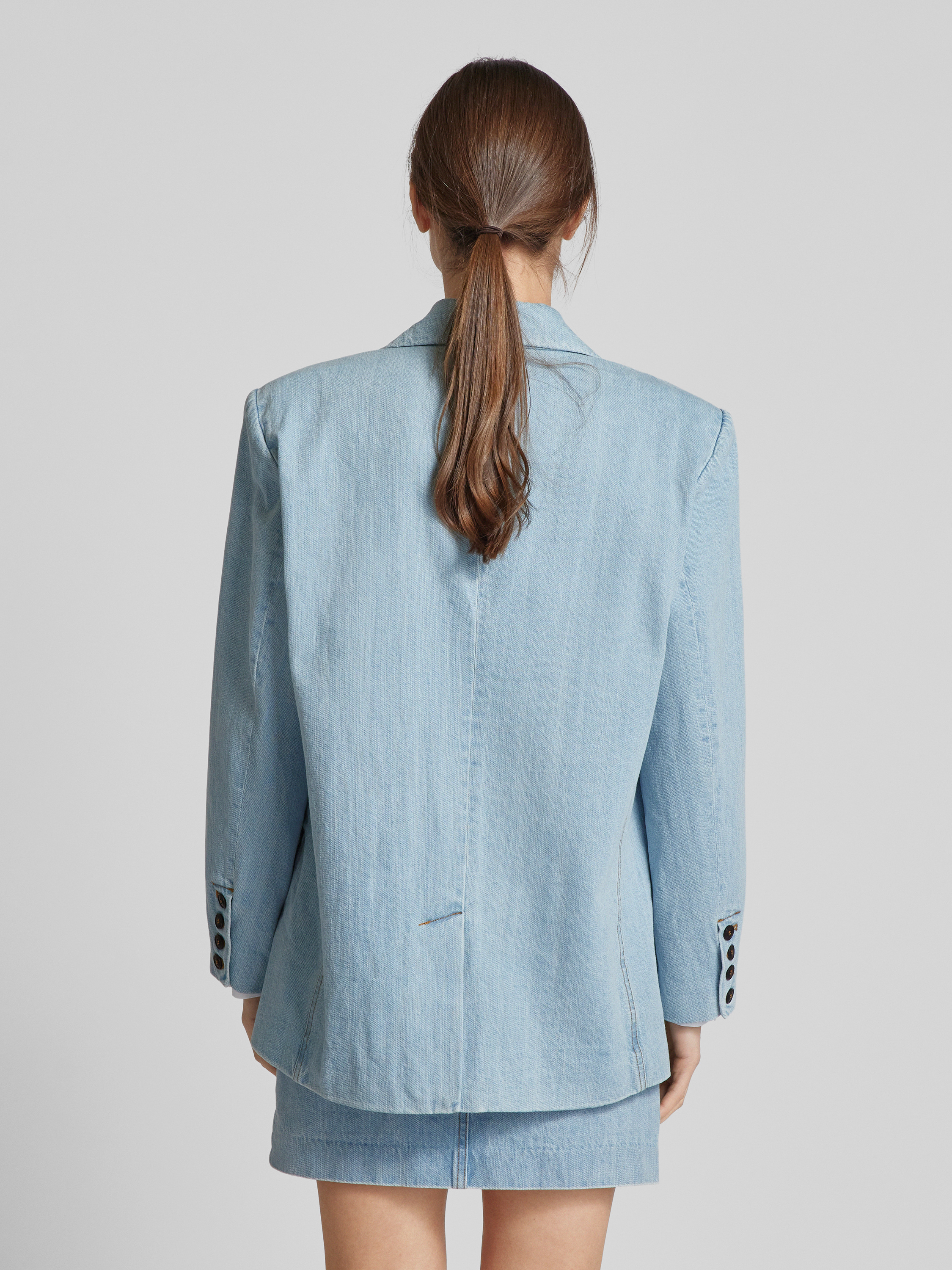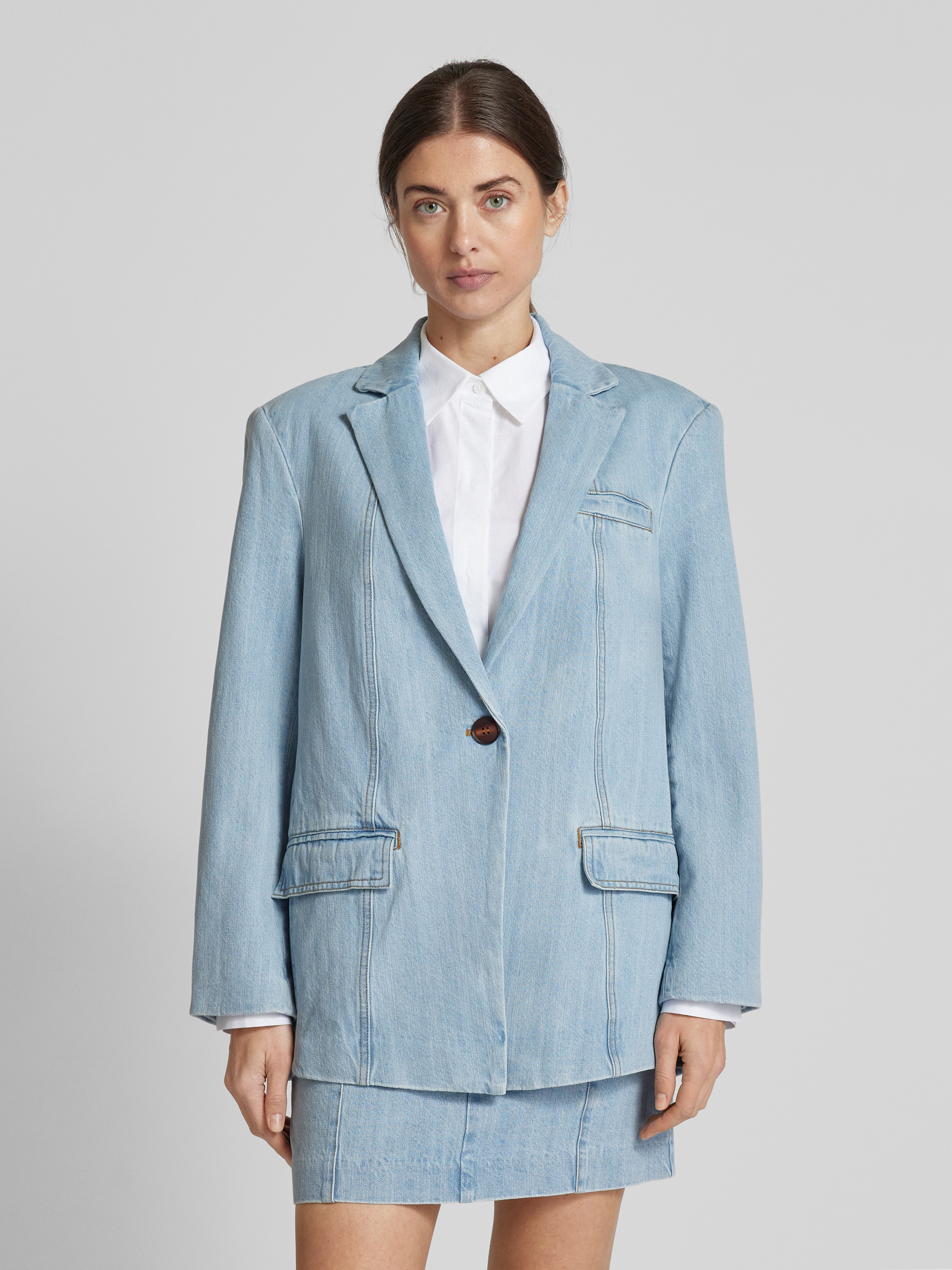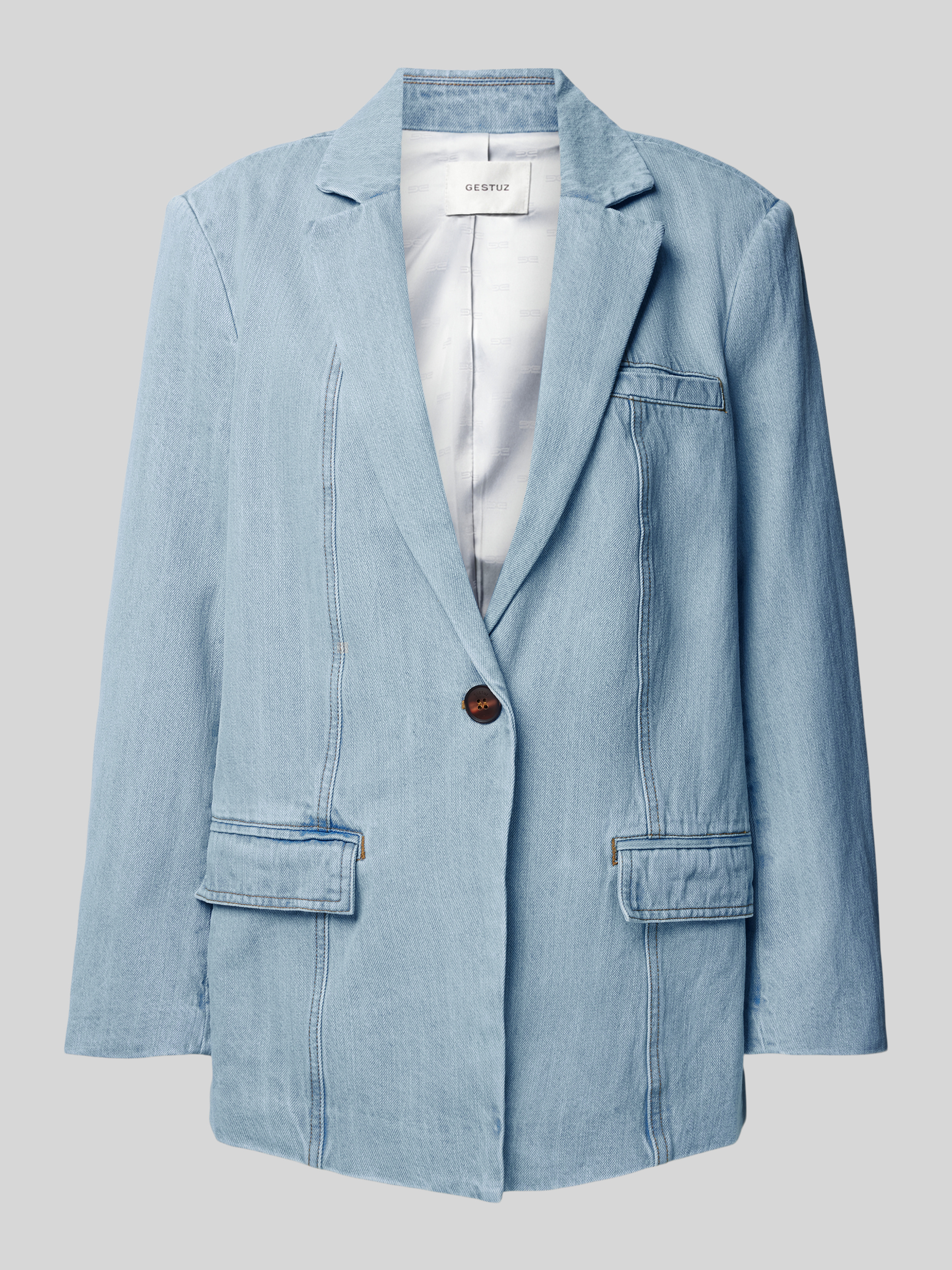 GestuzJeansblazer met strookzak op de borst, model 'Vella' in lichtblauw