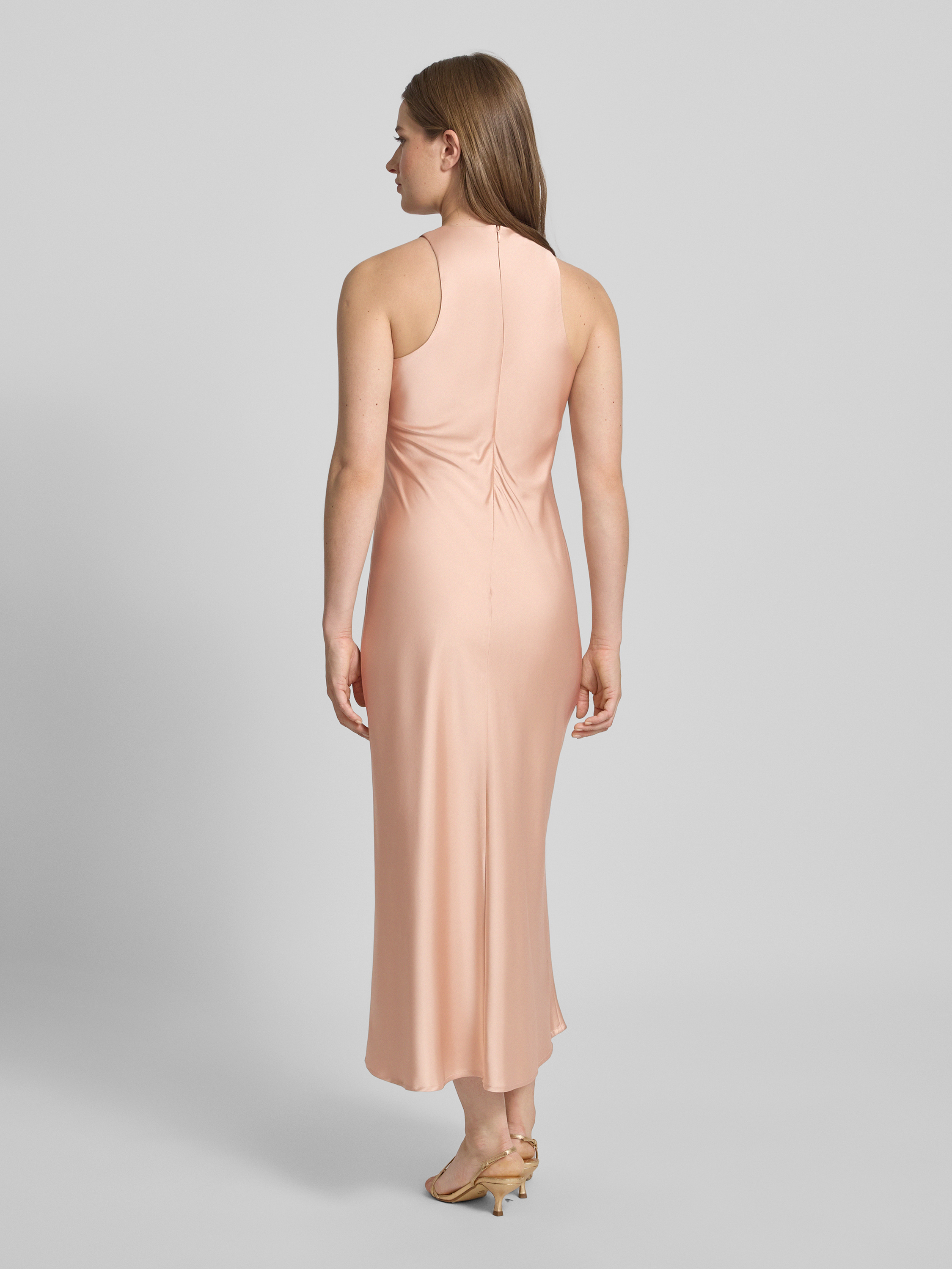 GestuzMidi-jurk van viscosemix met ronde hals, model 'ceri' in rosé