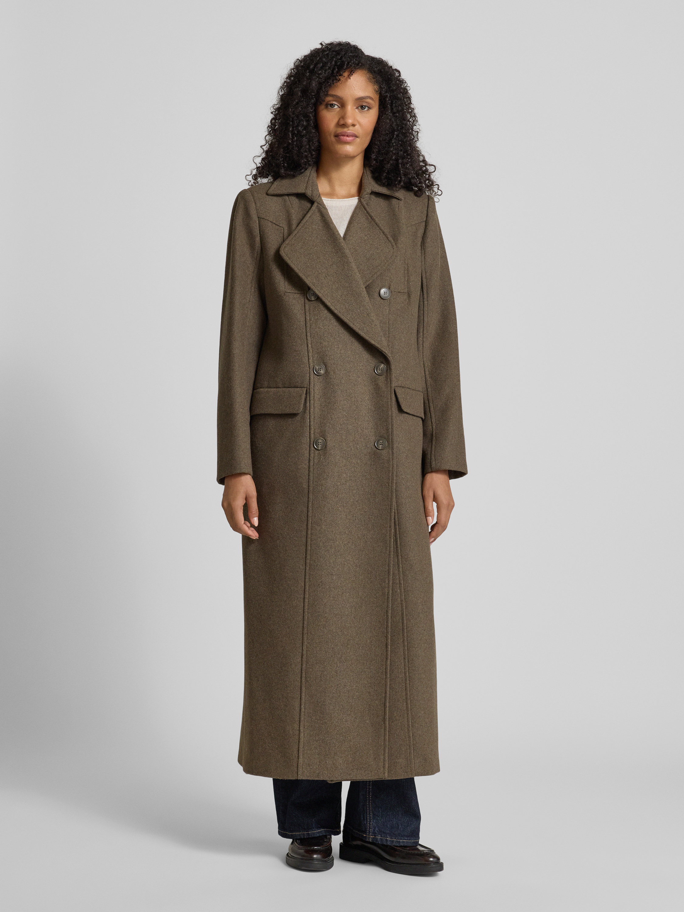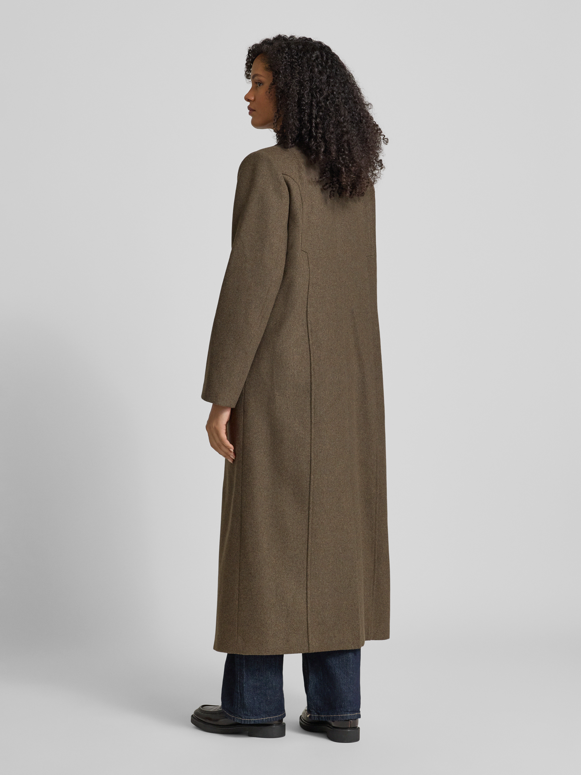 Regular fit lange jas met wol, model 'Zinka' in middenbruin gemêleerd