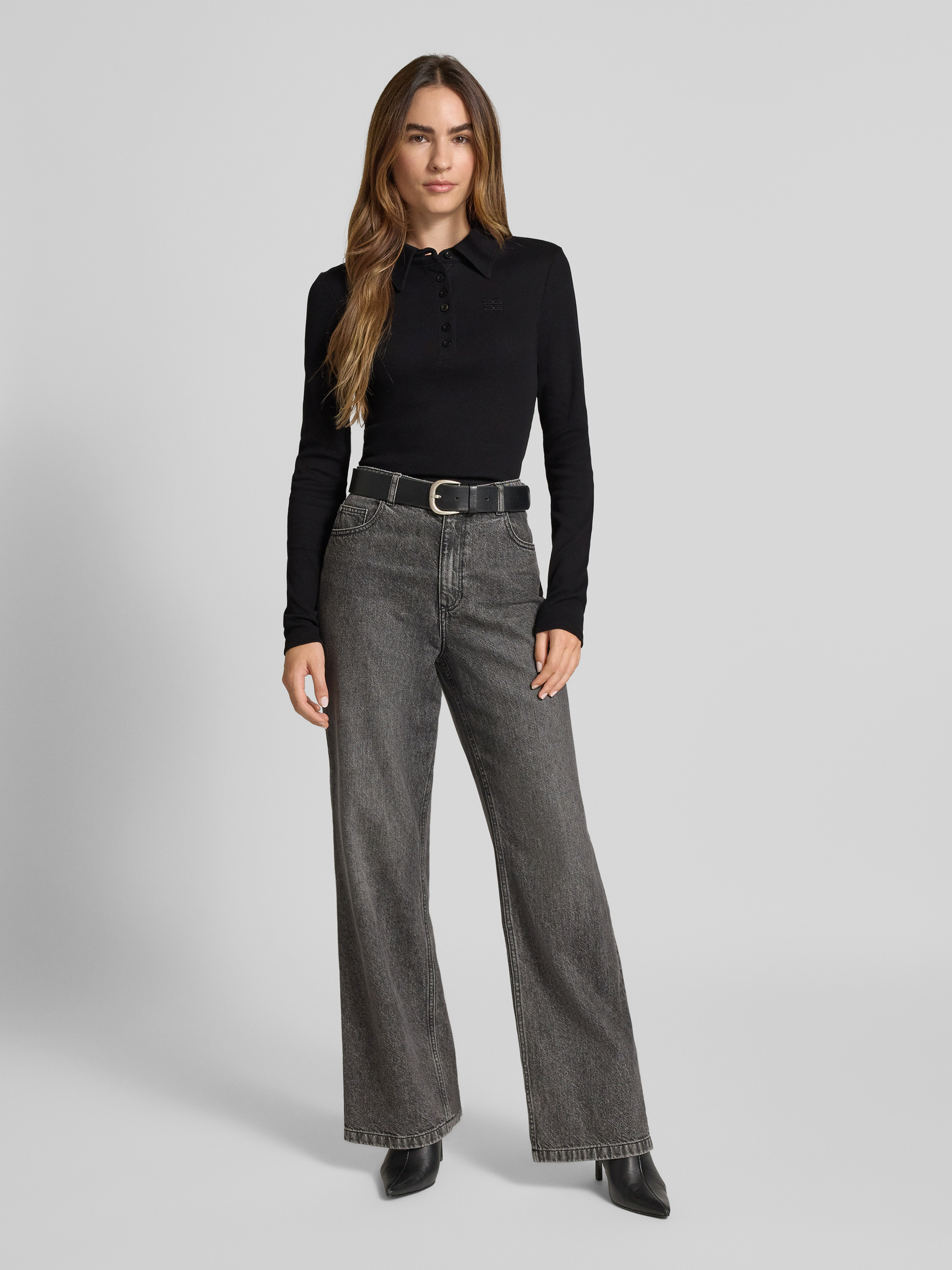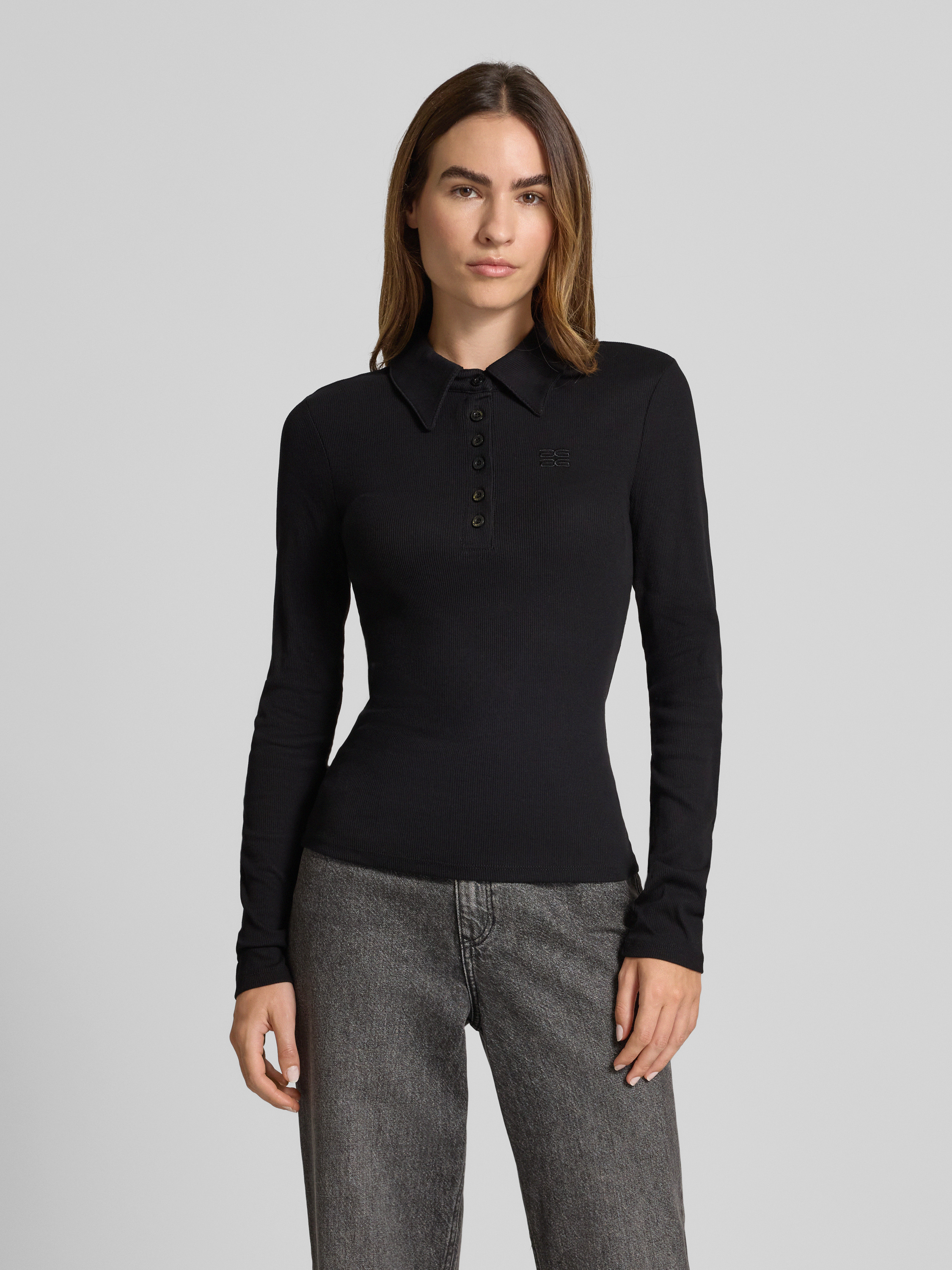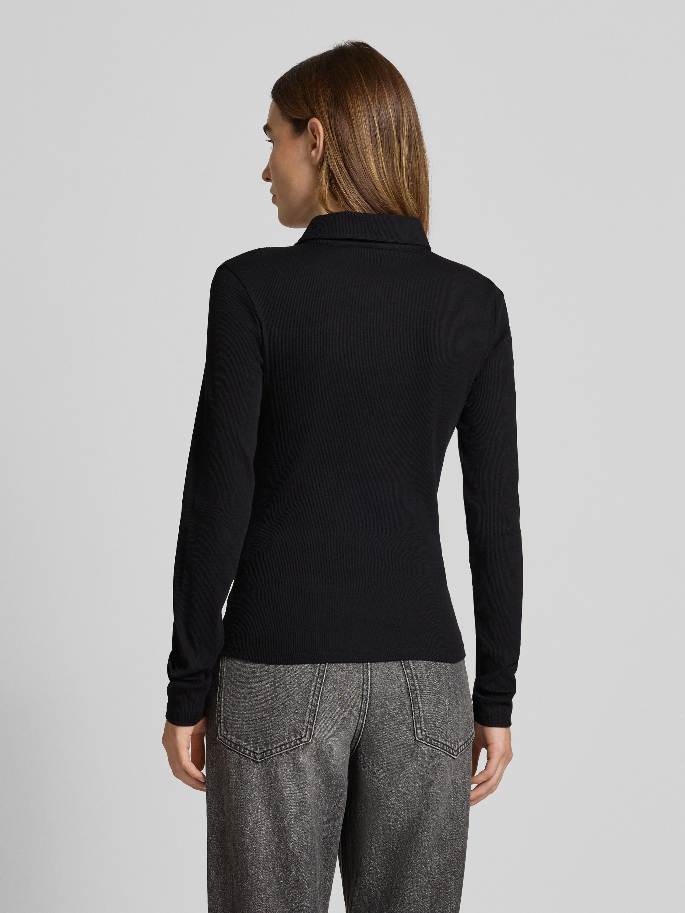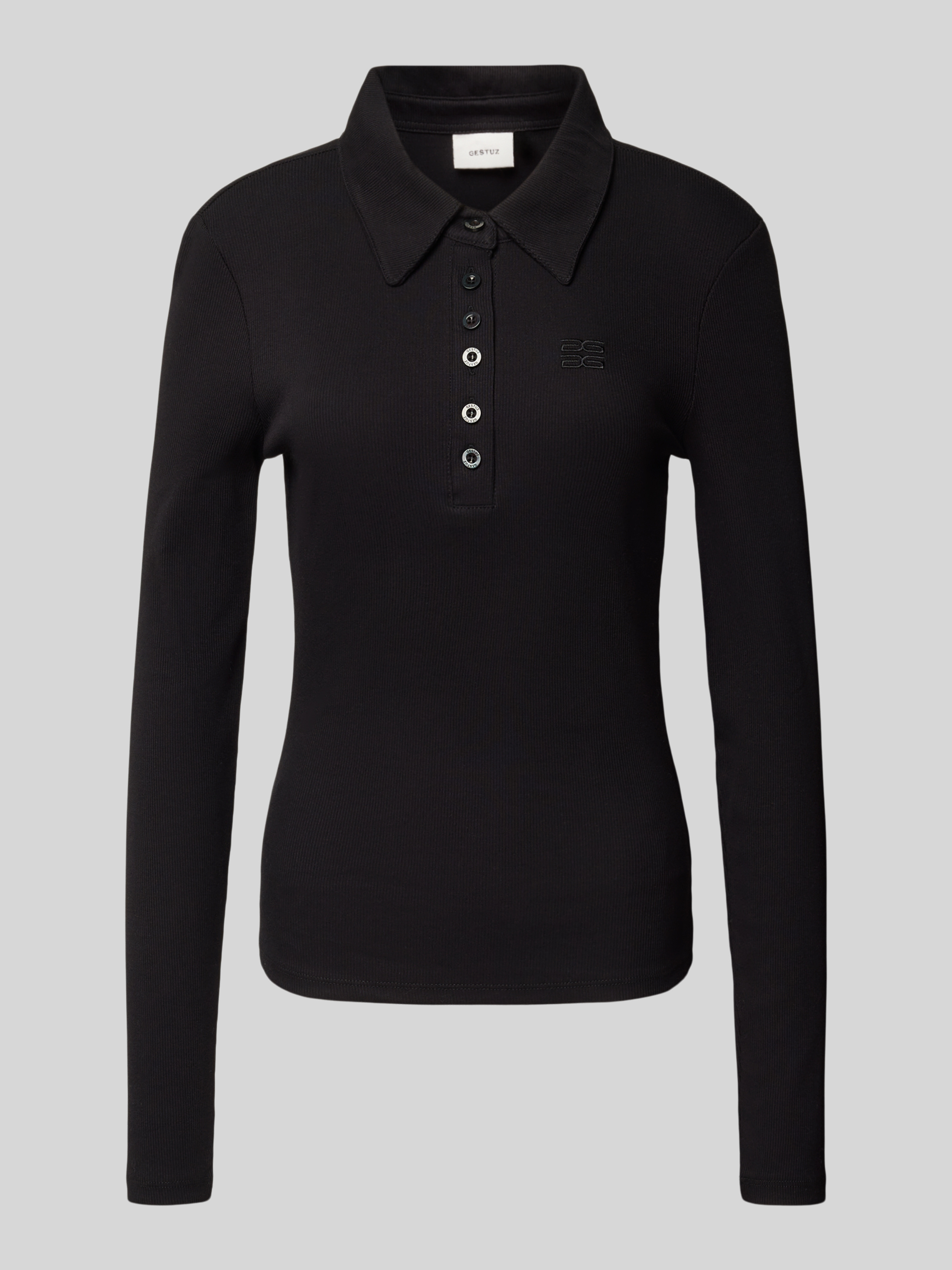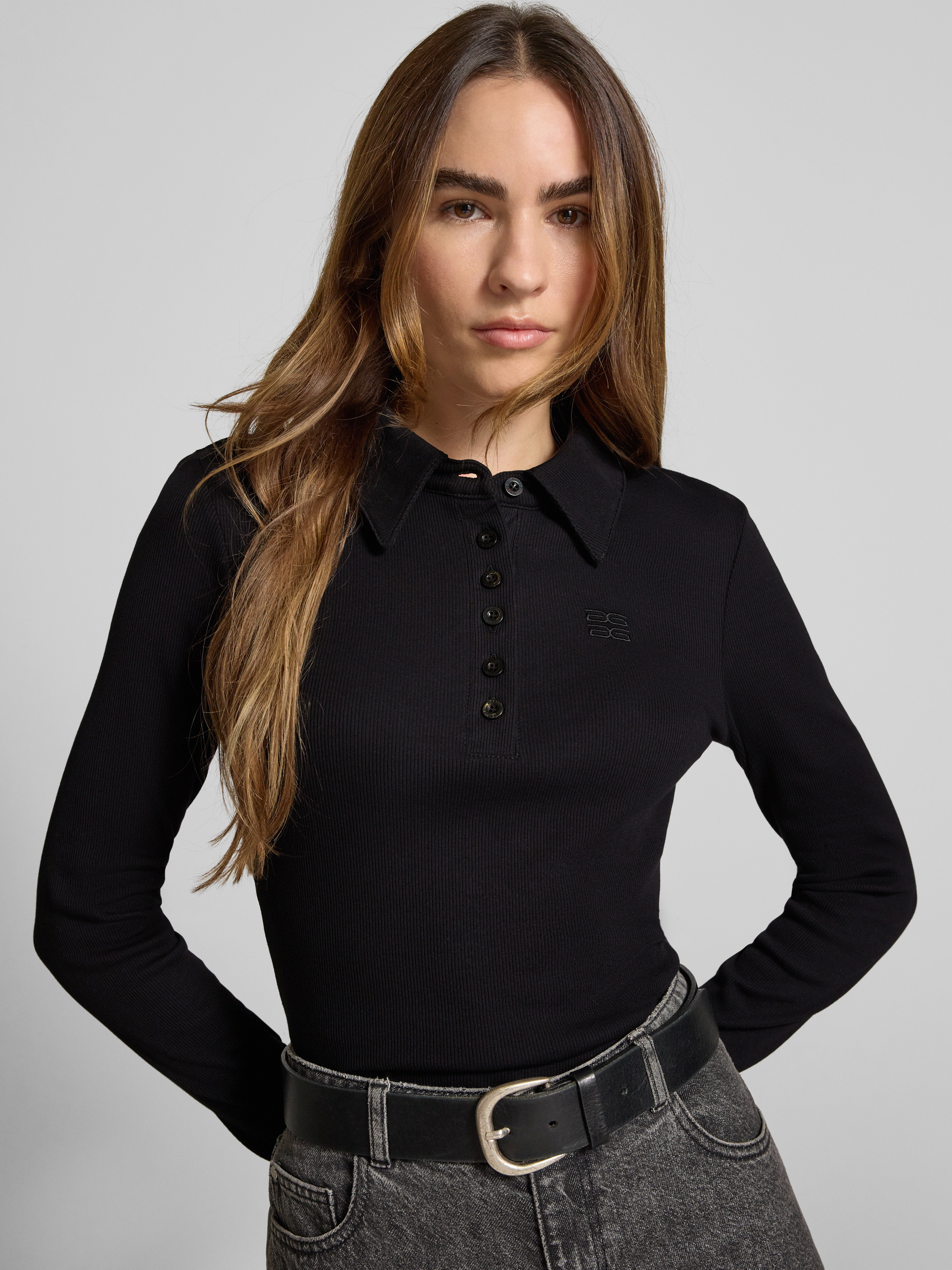 Shirt met lange mouwen en polokraag, model 'drew' in zwart
