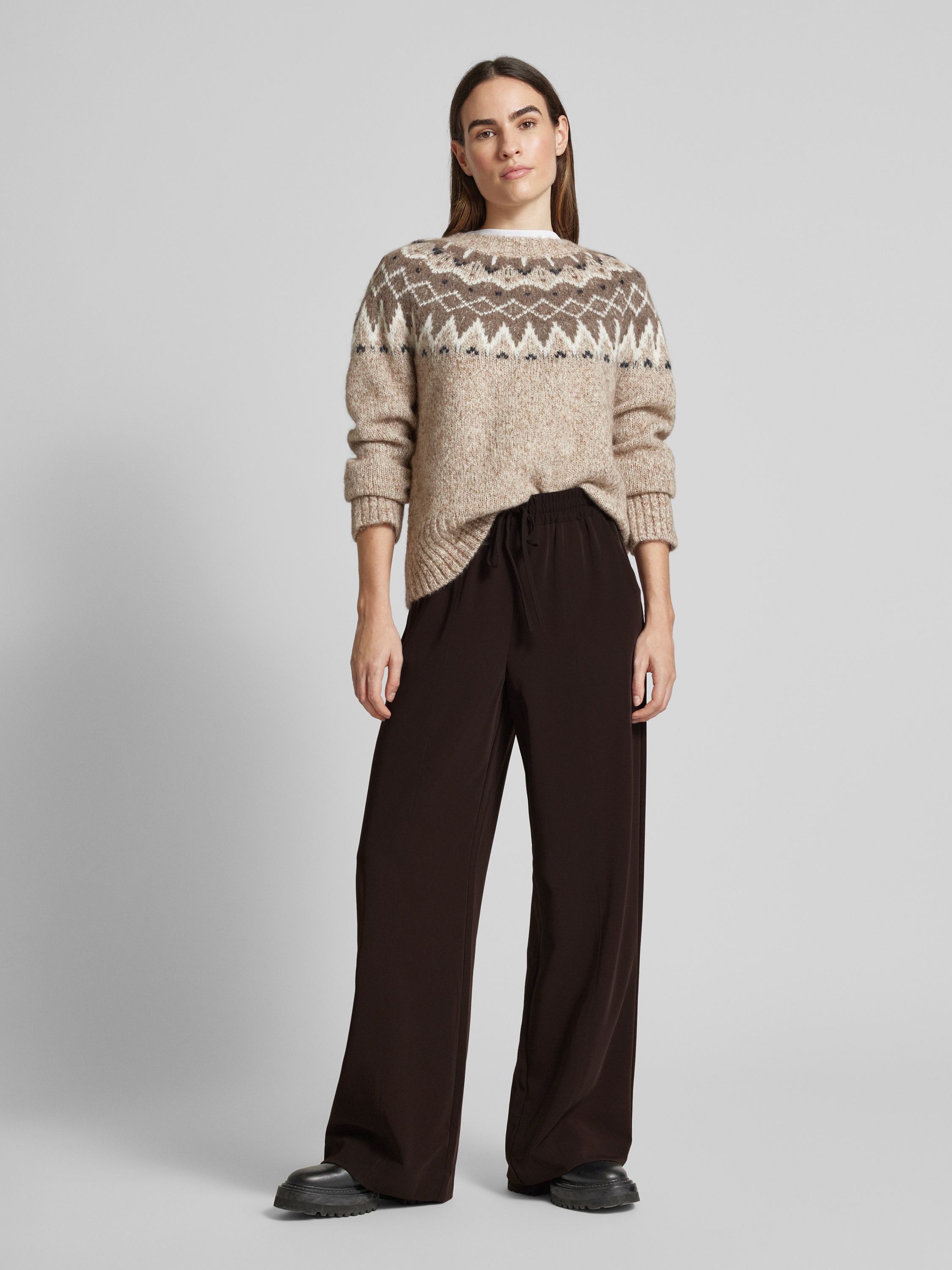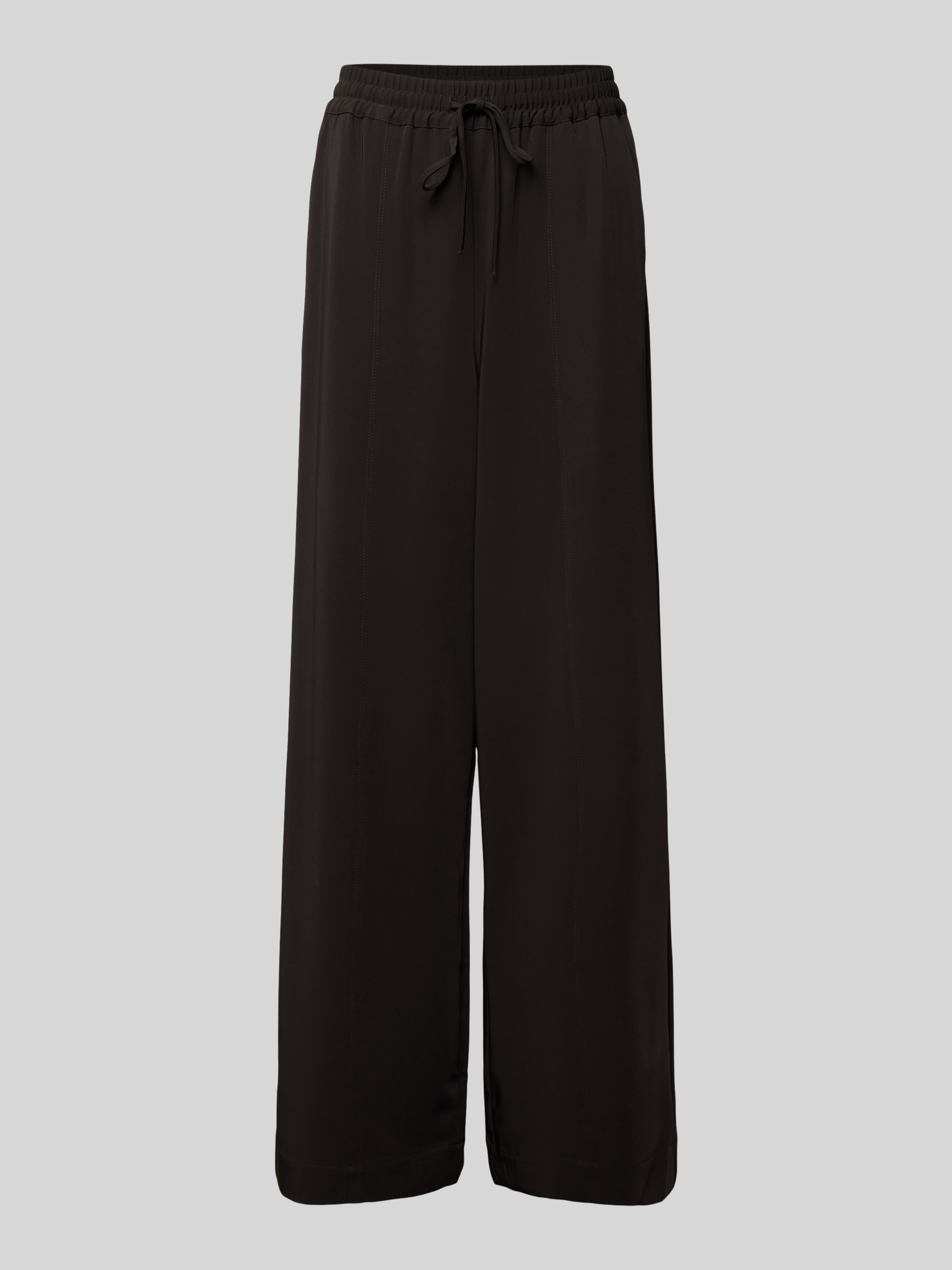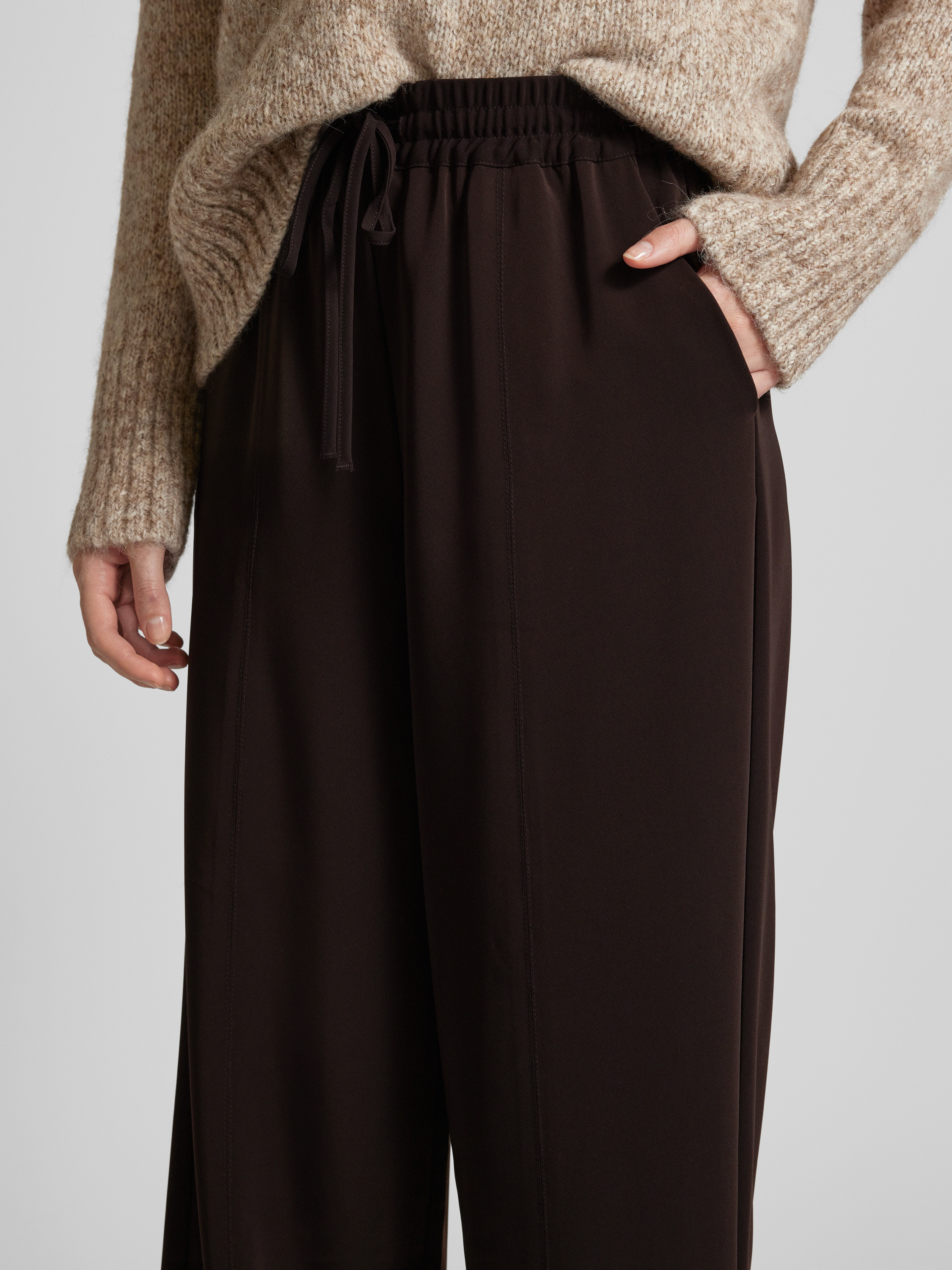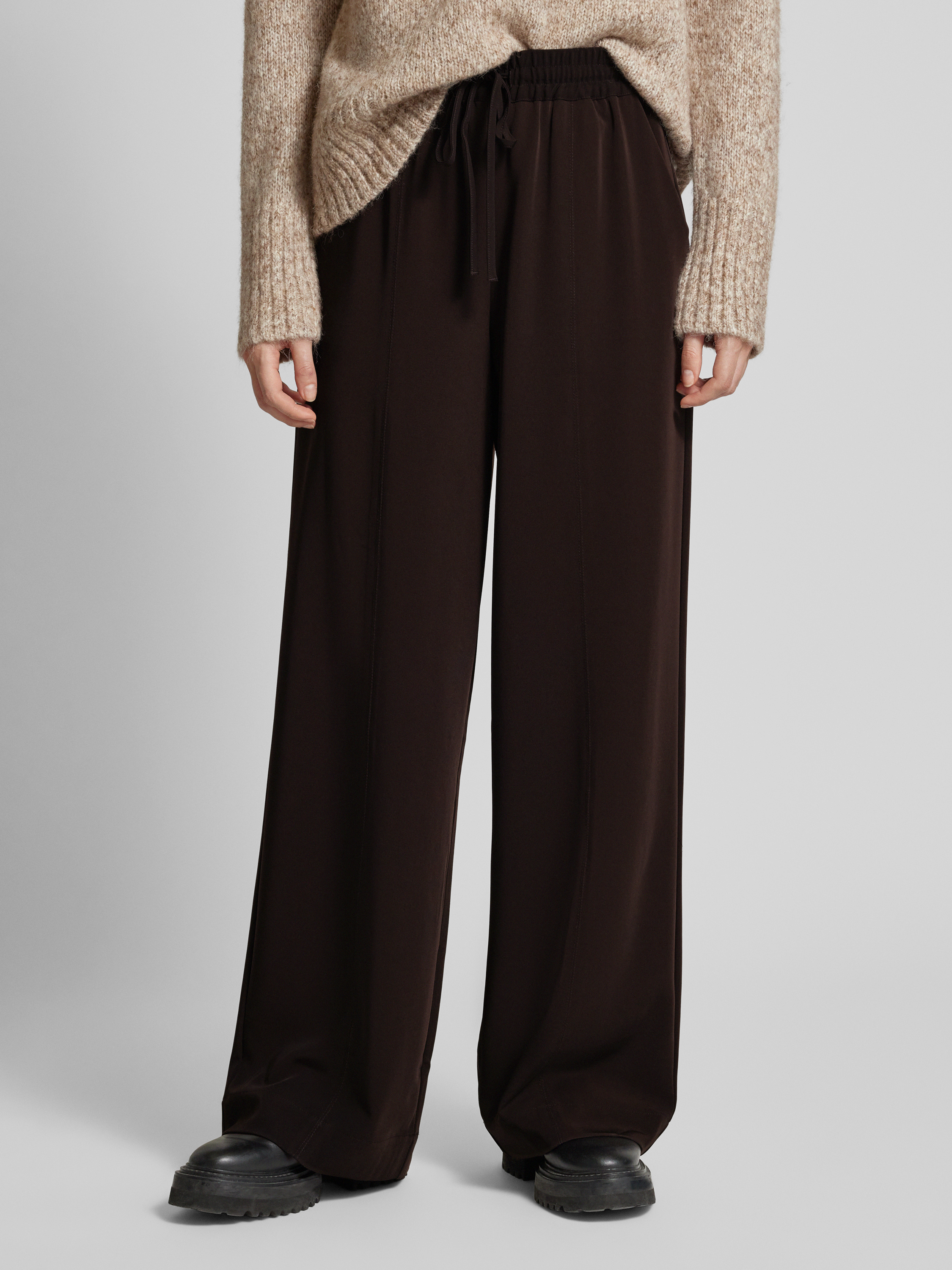 GestuzStoffen broek met elastische band, model 'Malena' in donkerbruin