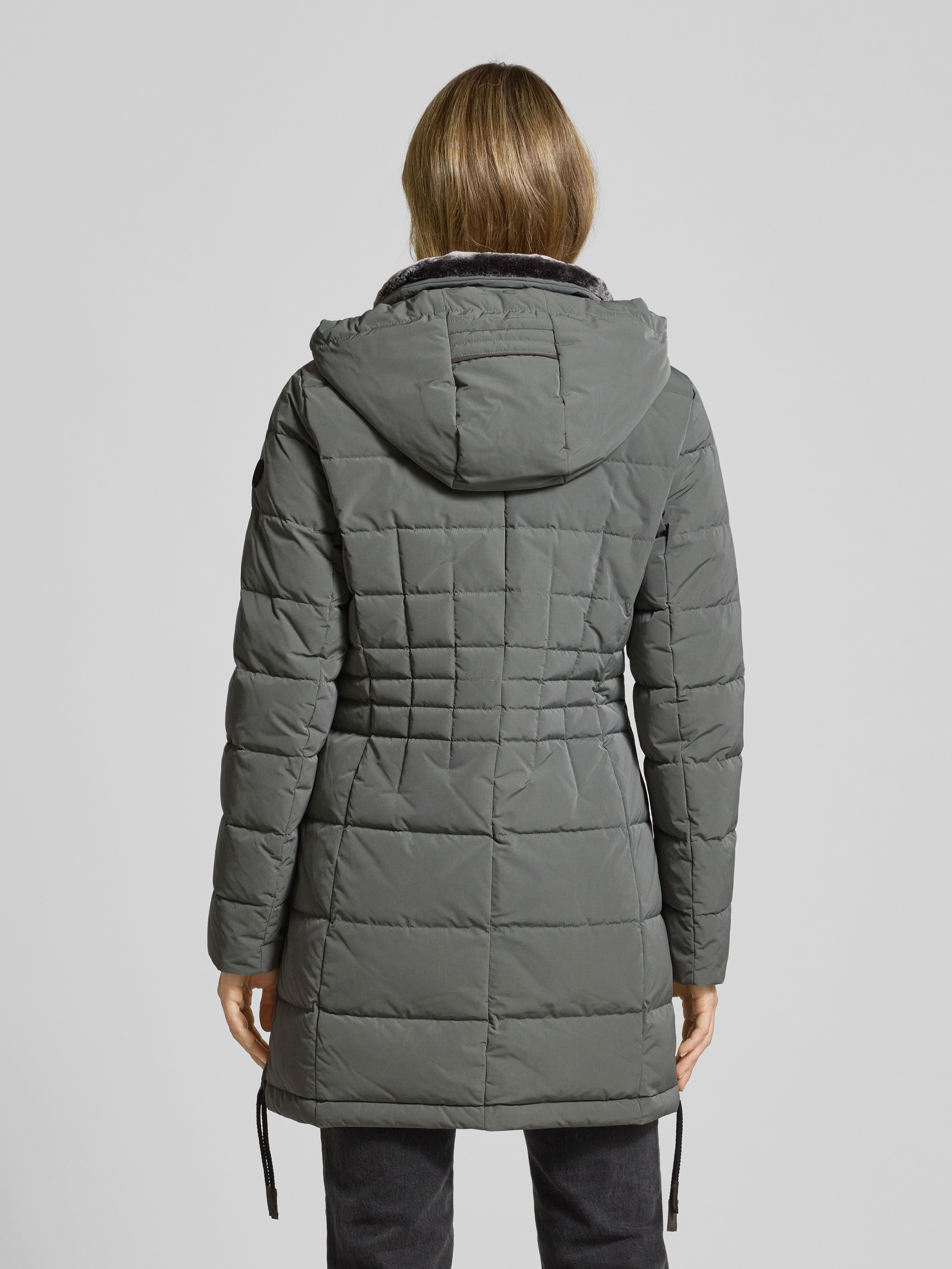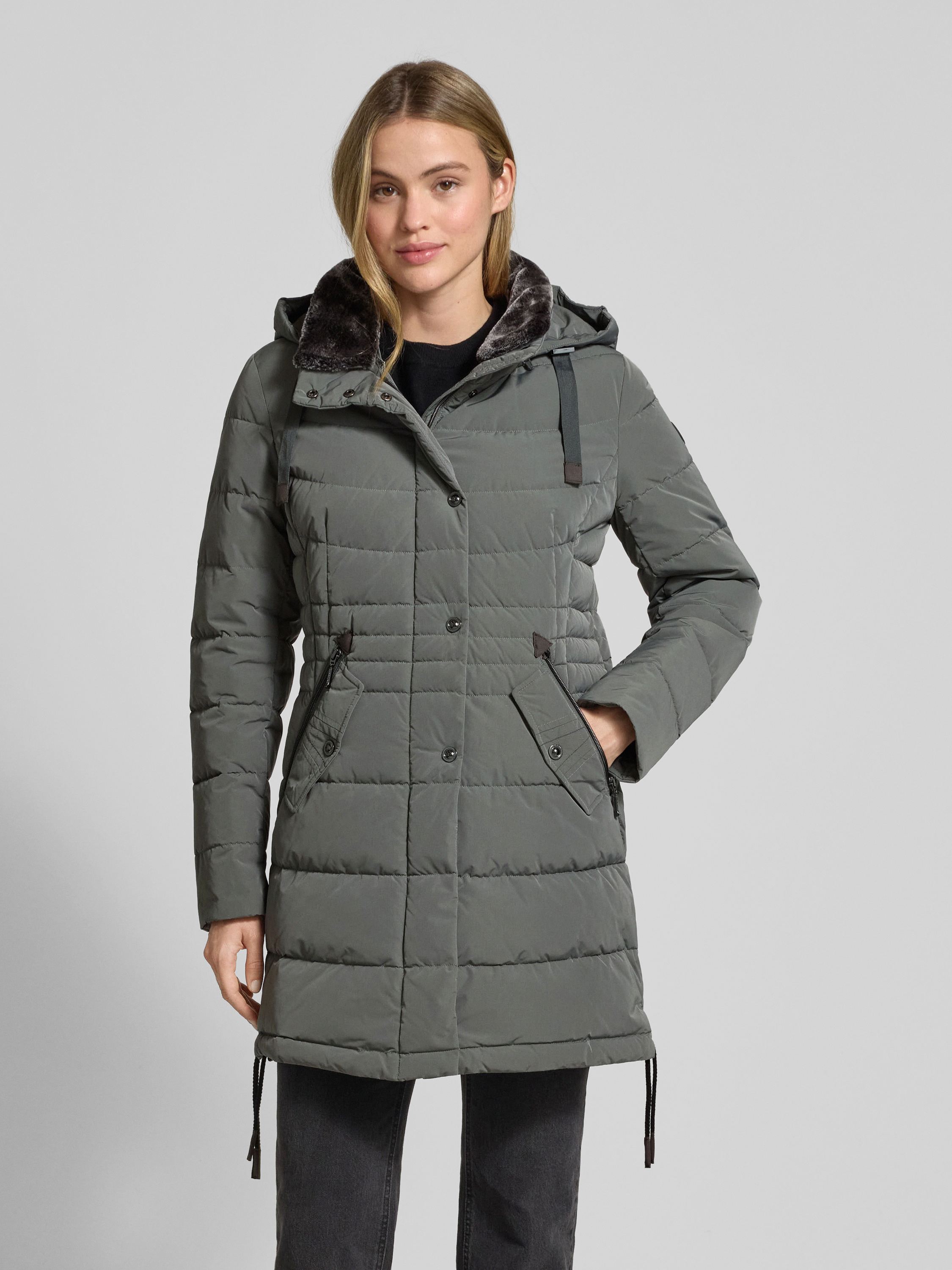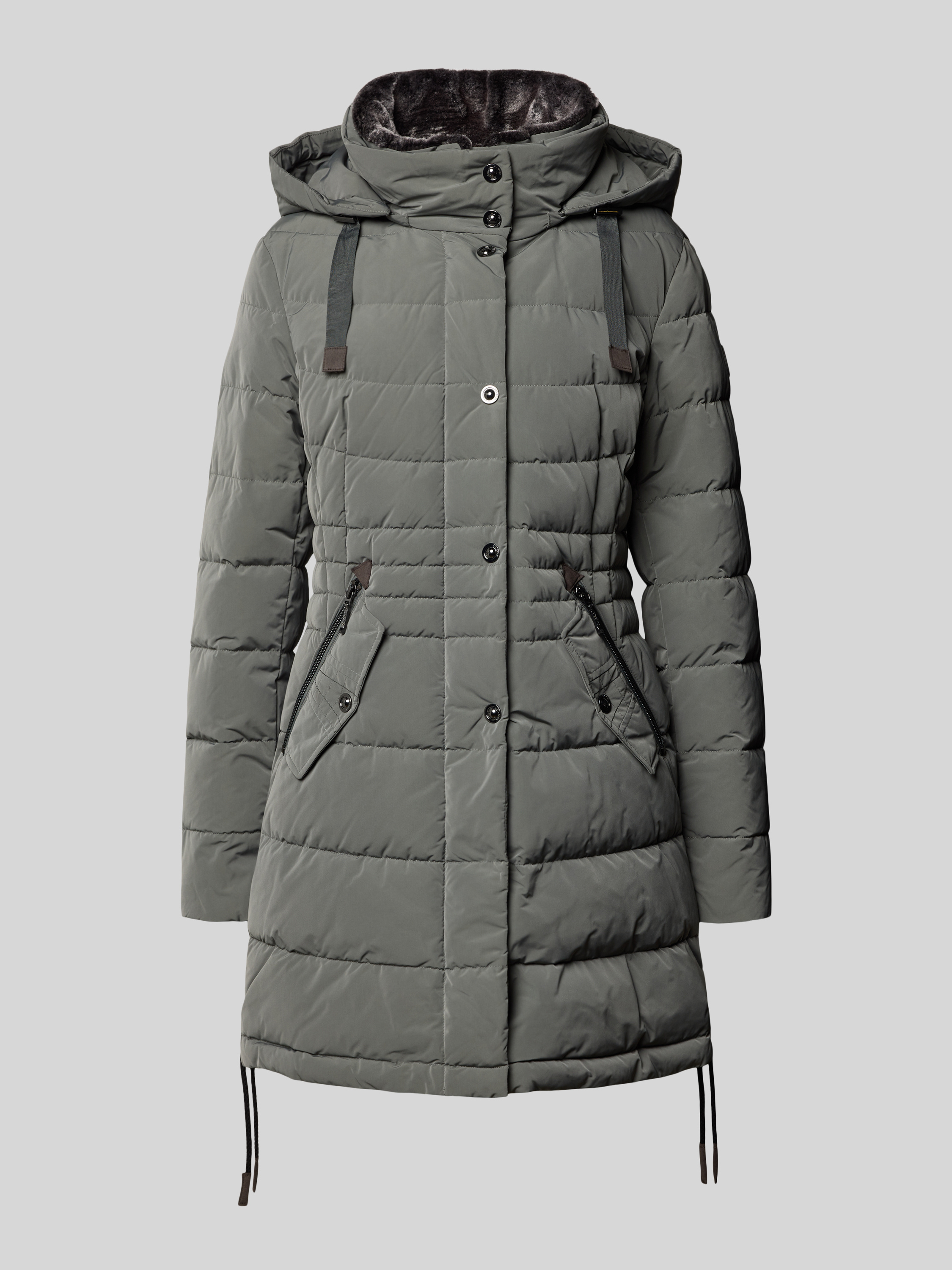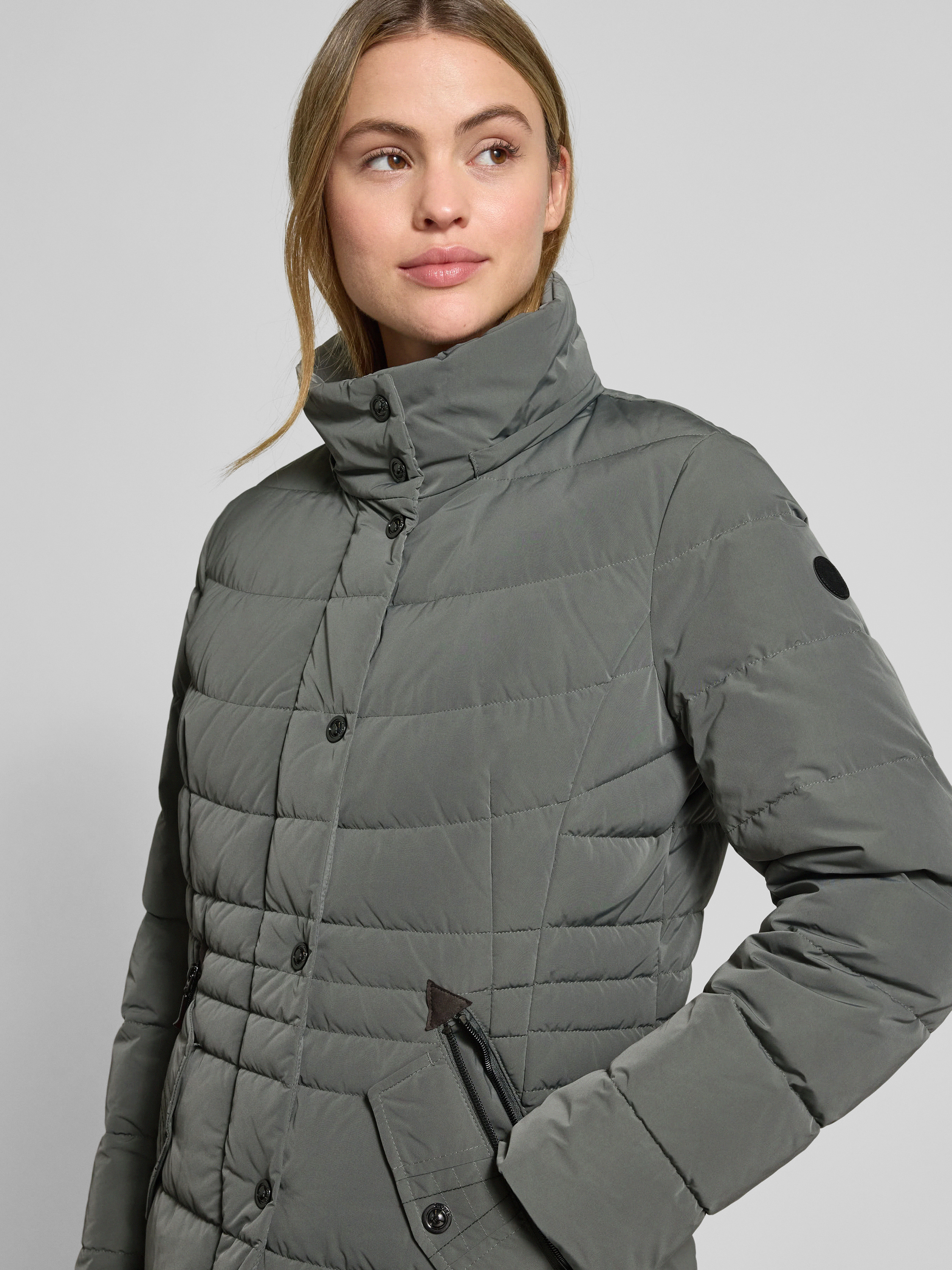 Gewatteerde lange jas met opstaande kraag en ritszakken in lichtgroen