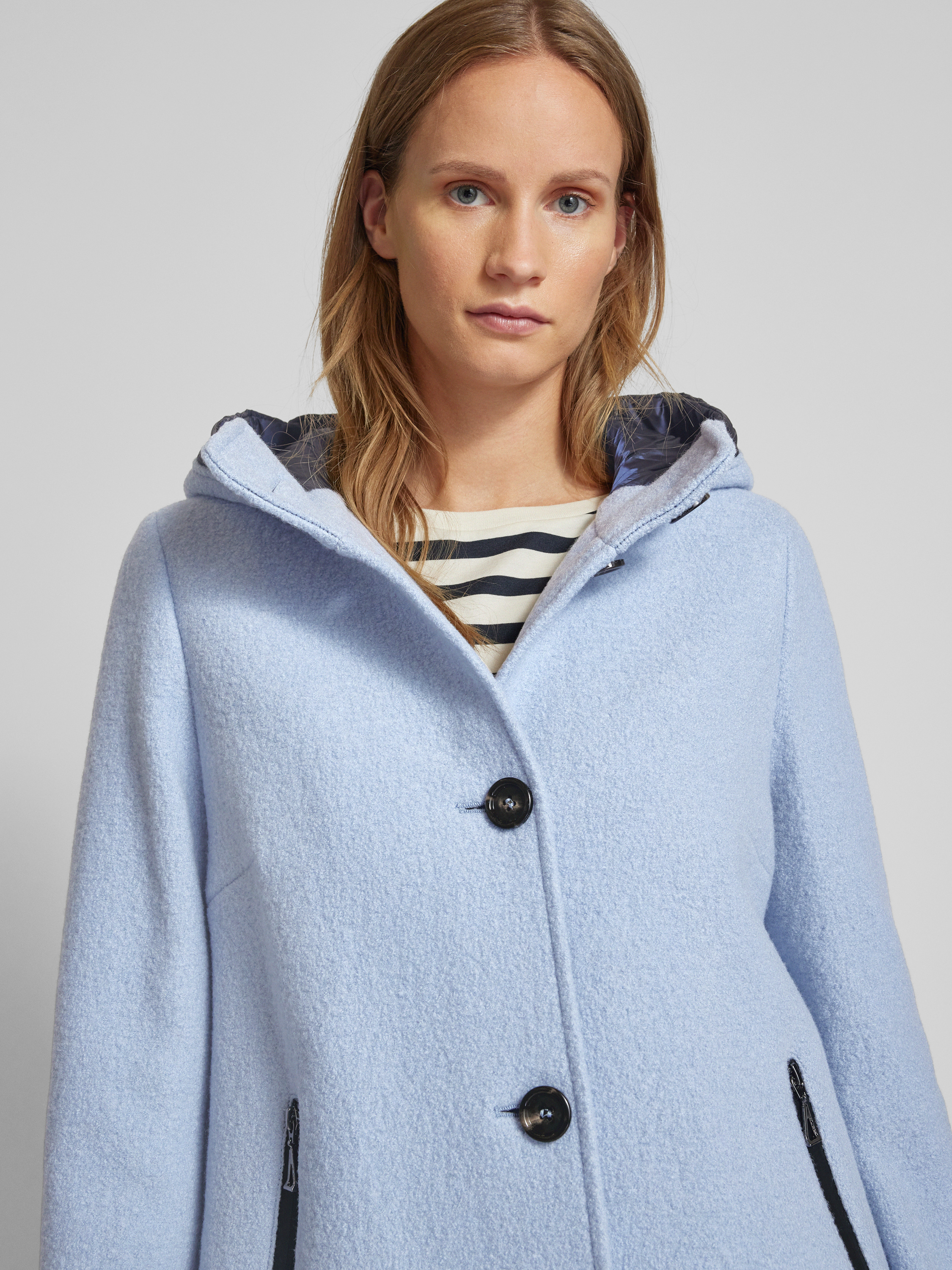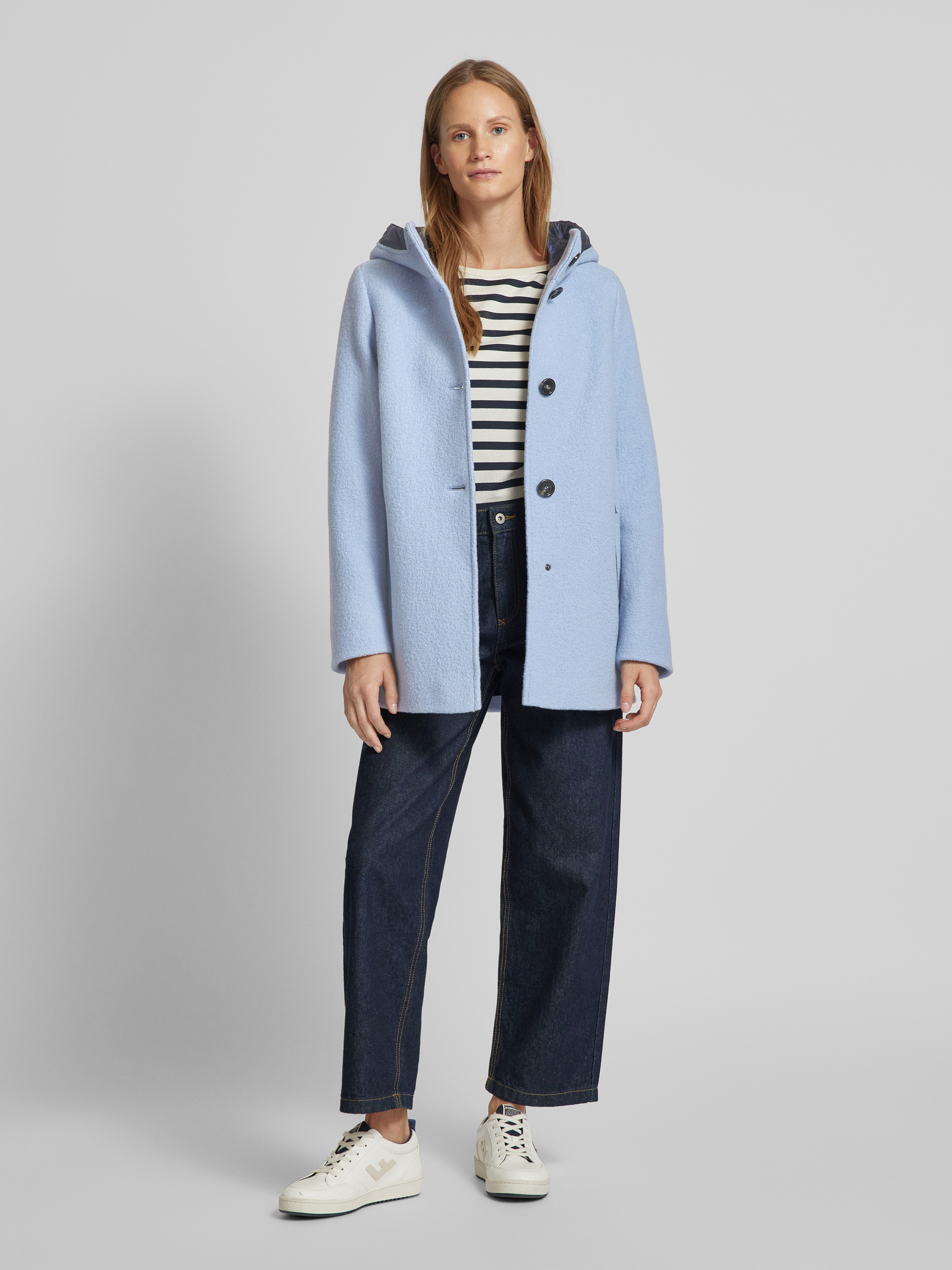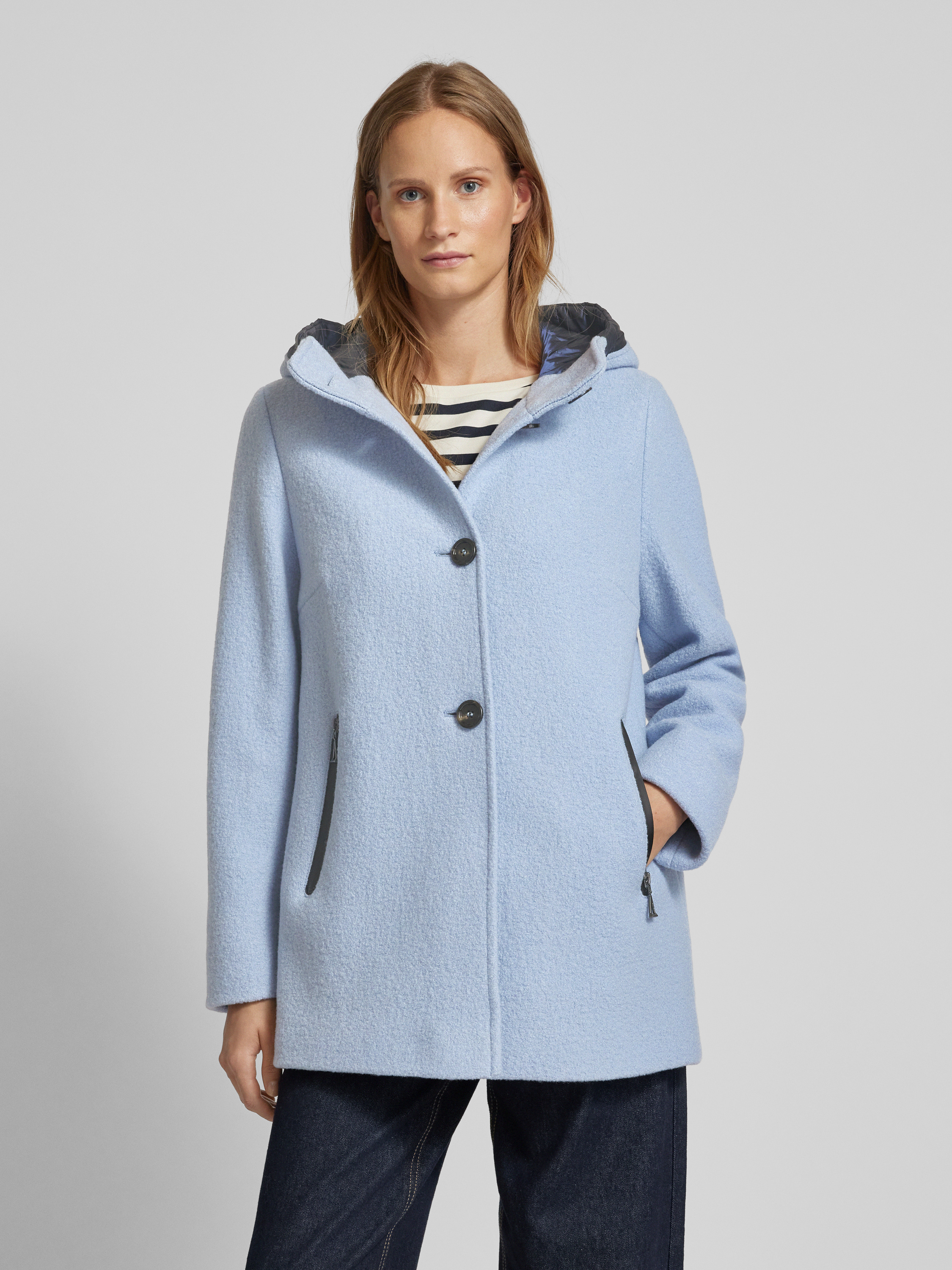 Gil BretLange jas met knoopsluiting en ritszakken in lichtblauw