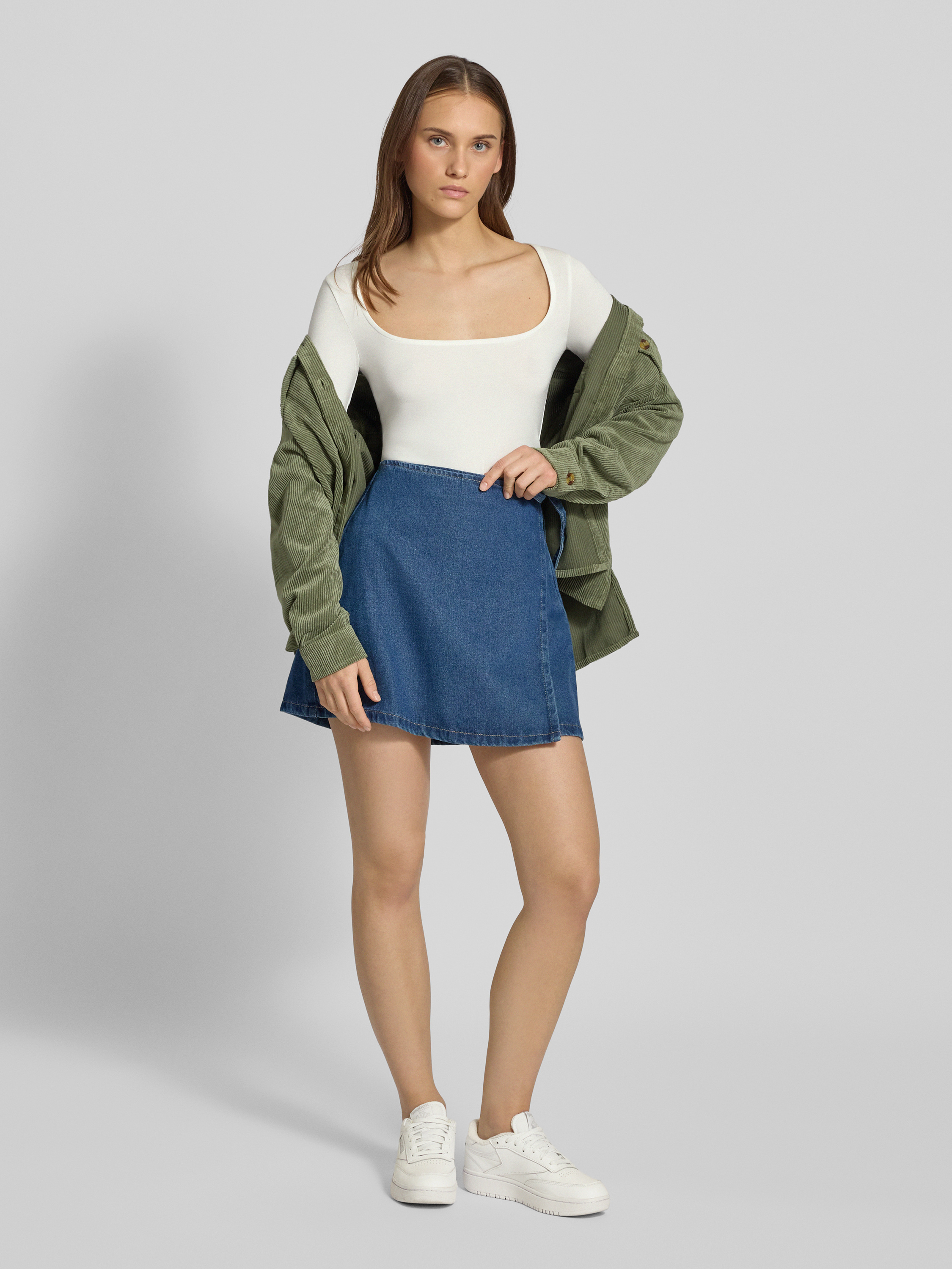 Licht uitlopende jeansrok in wikkellook, model 'FIBBO'