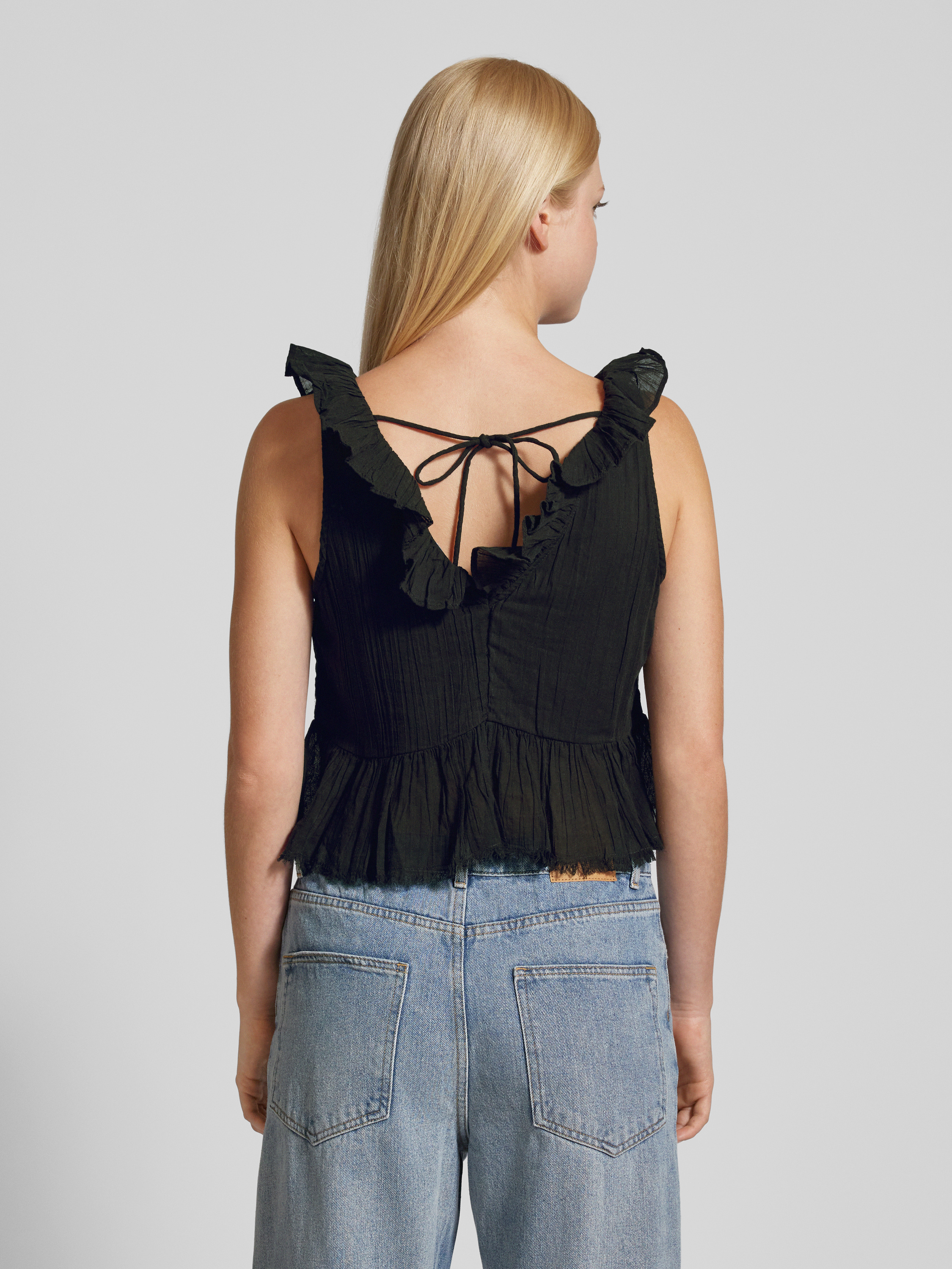 Top met ruches in zwart