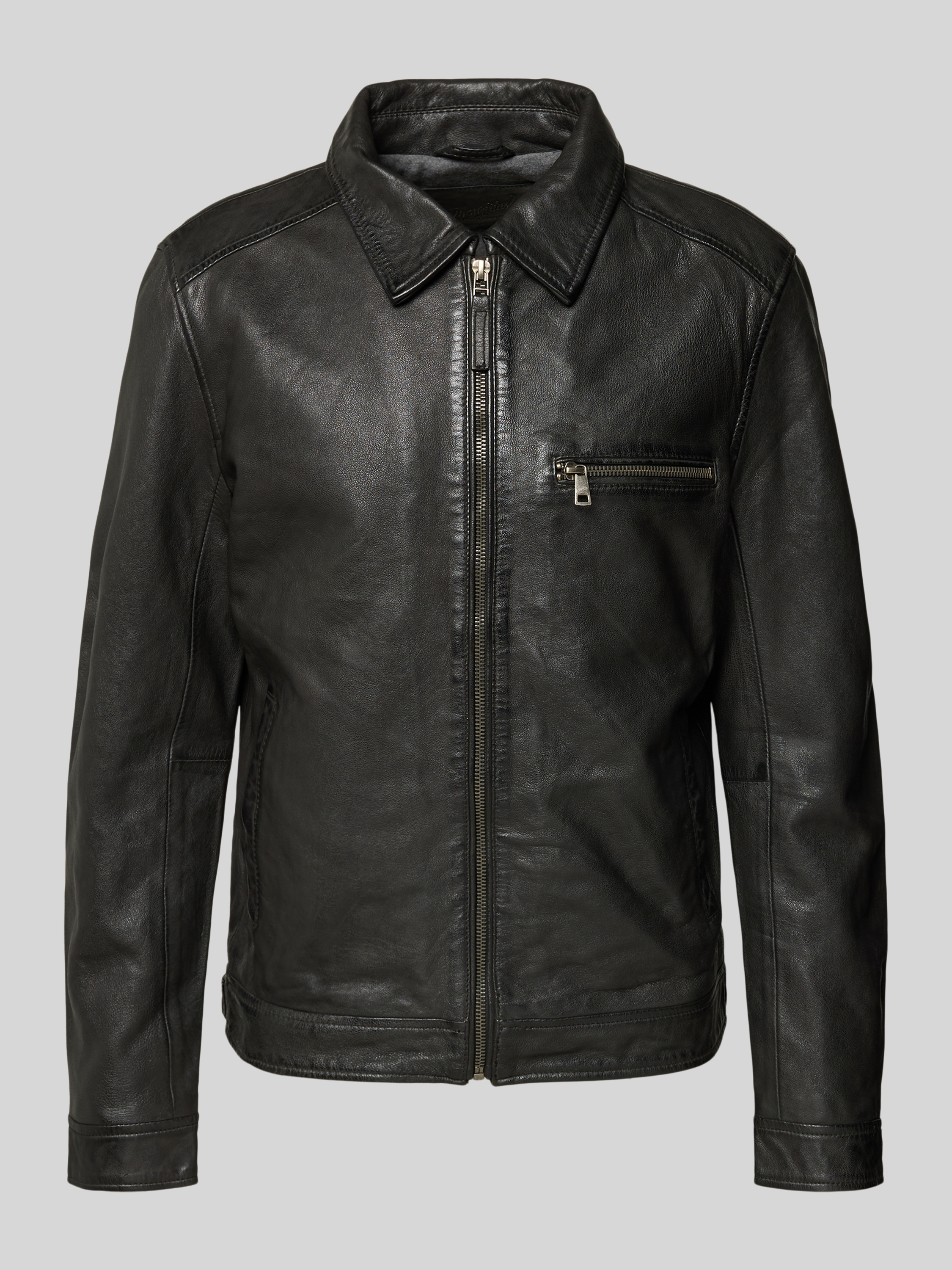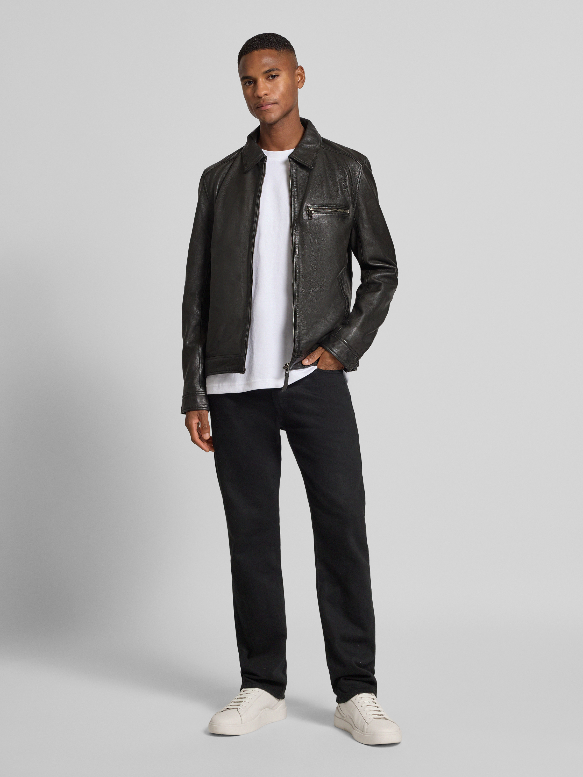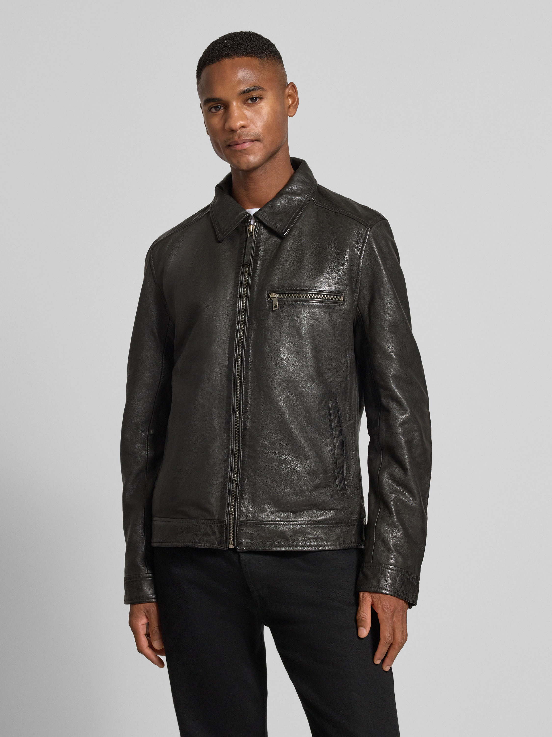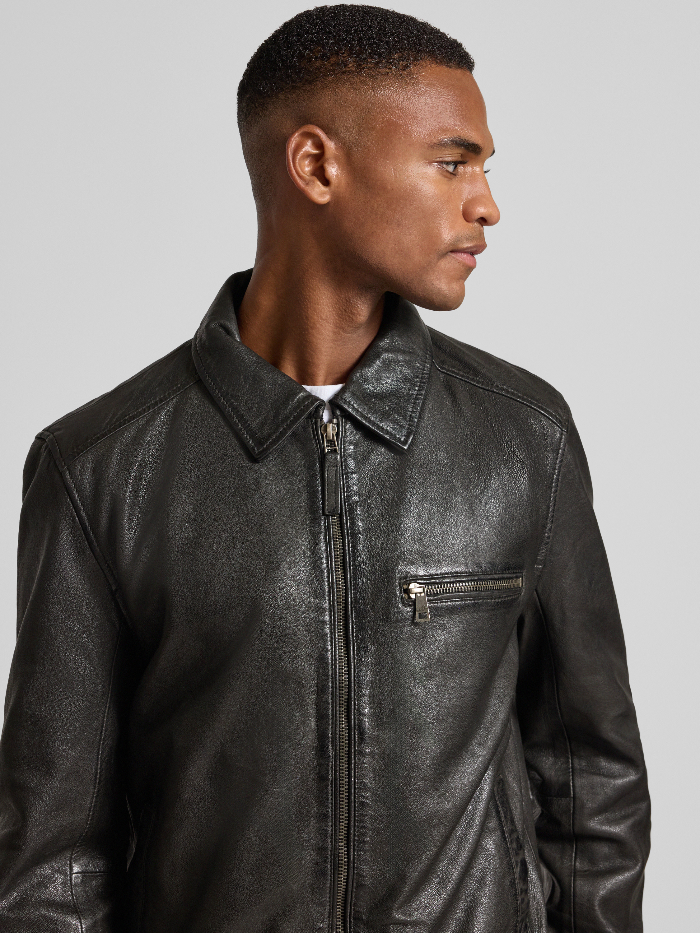 Leren jack met ritssluiting, model 'Vintage Short' in antraciet