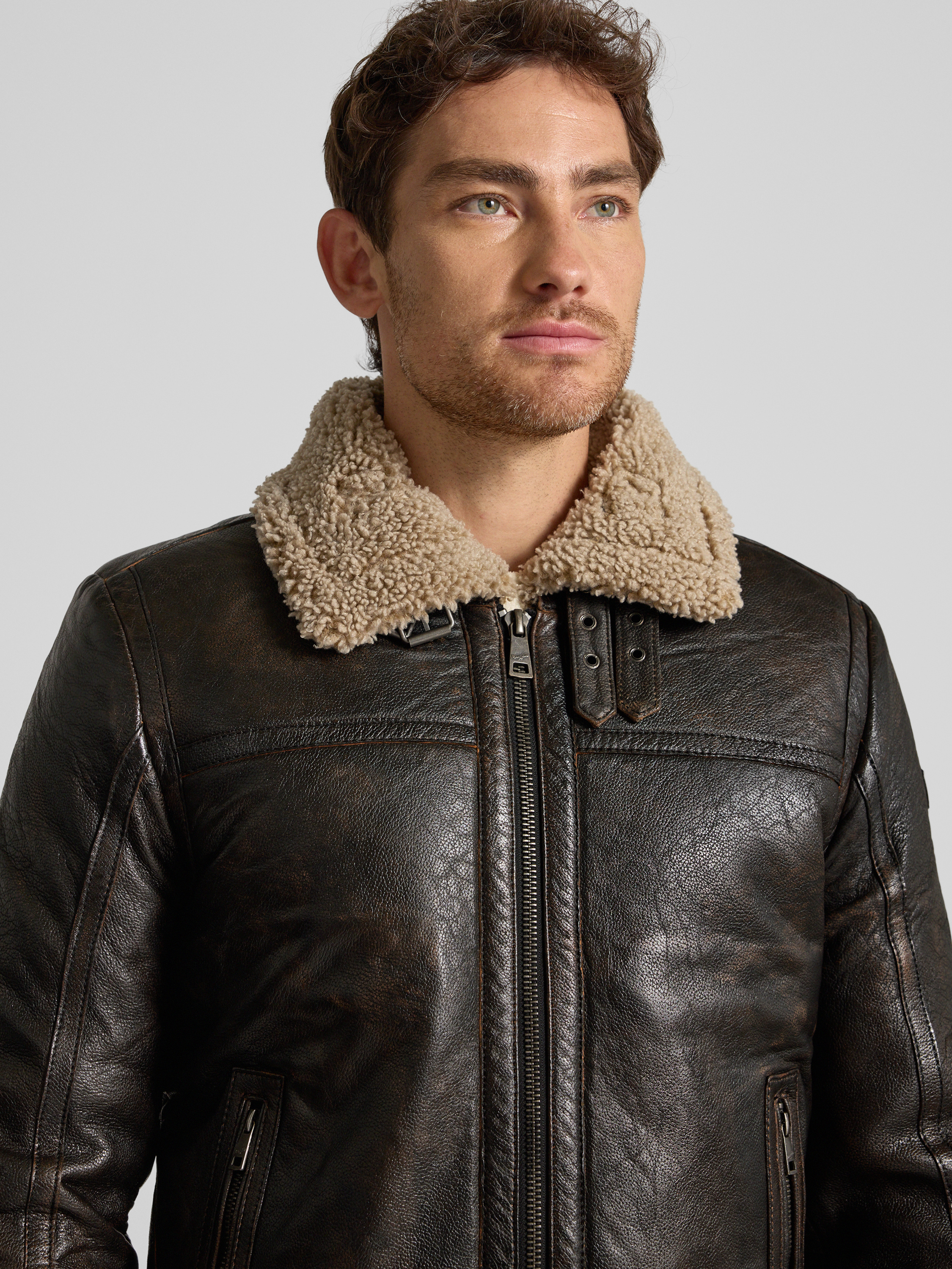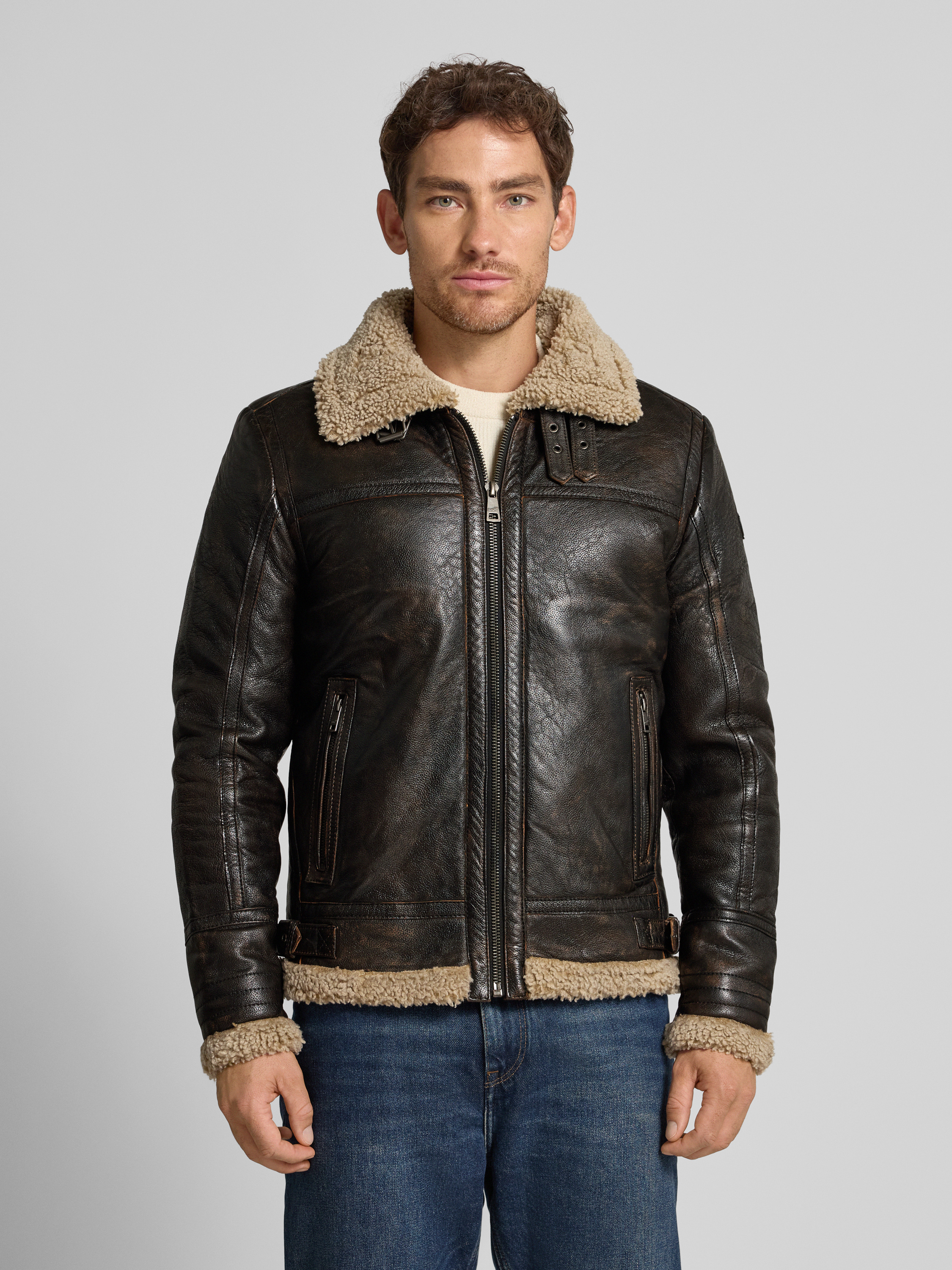 Regular fit jack in leerlook, model 'Aiforce' in zwart