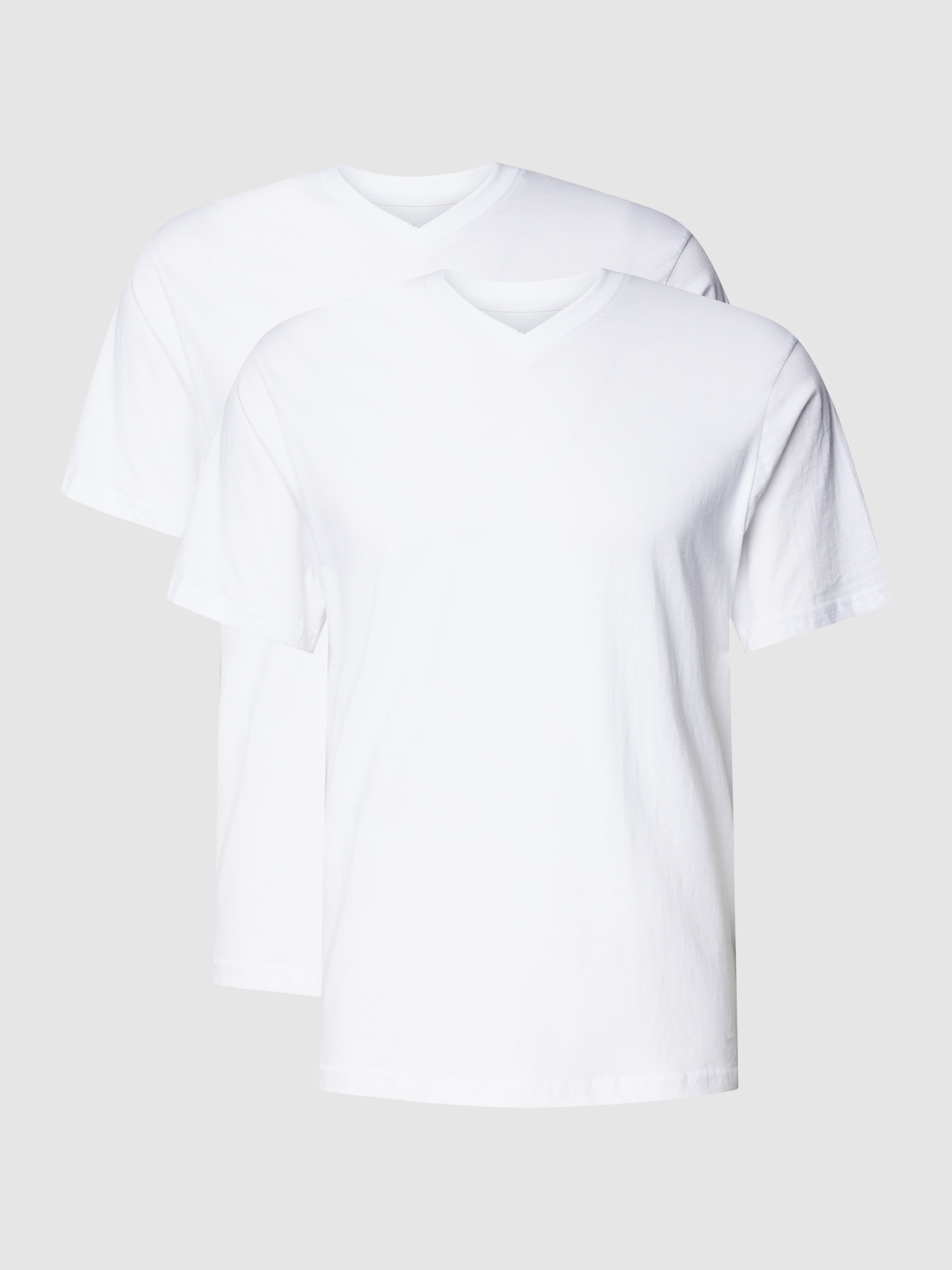 T-shirt met V-hals in een set van 2 stuks, model 'PURE COTTON' in wit