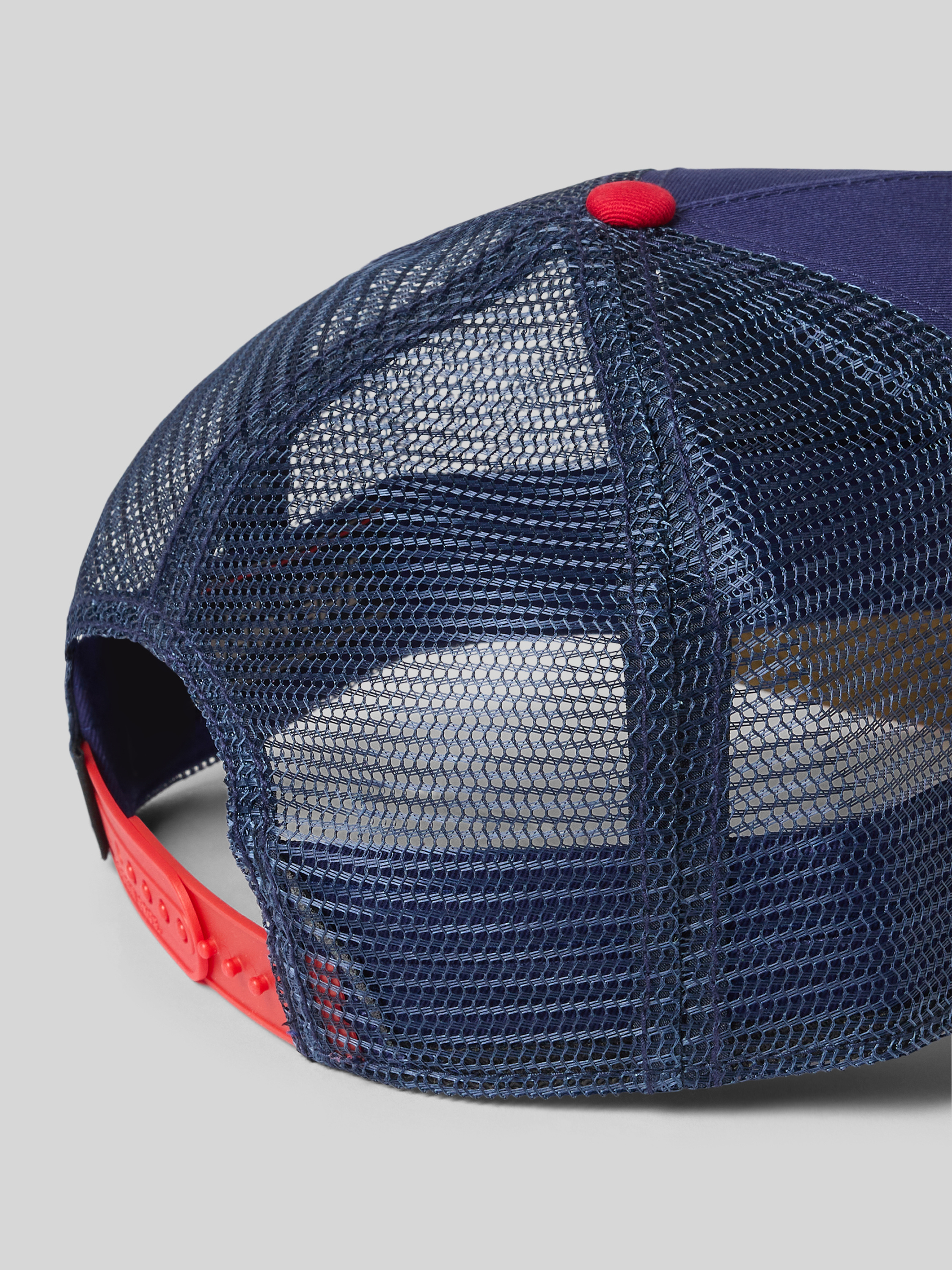 Trucker-pet met motiefpatch, model 'The Flocking Bird' in lichtrood