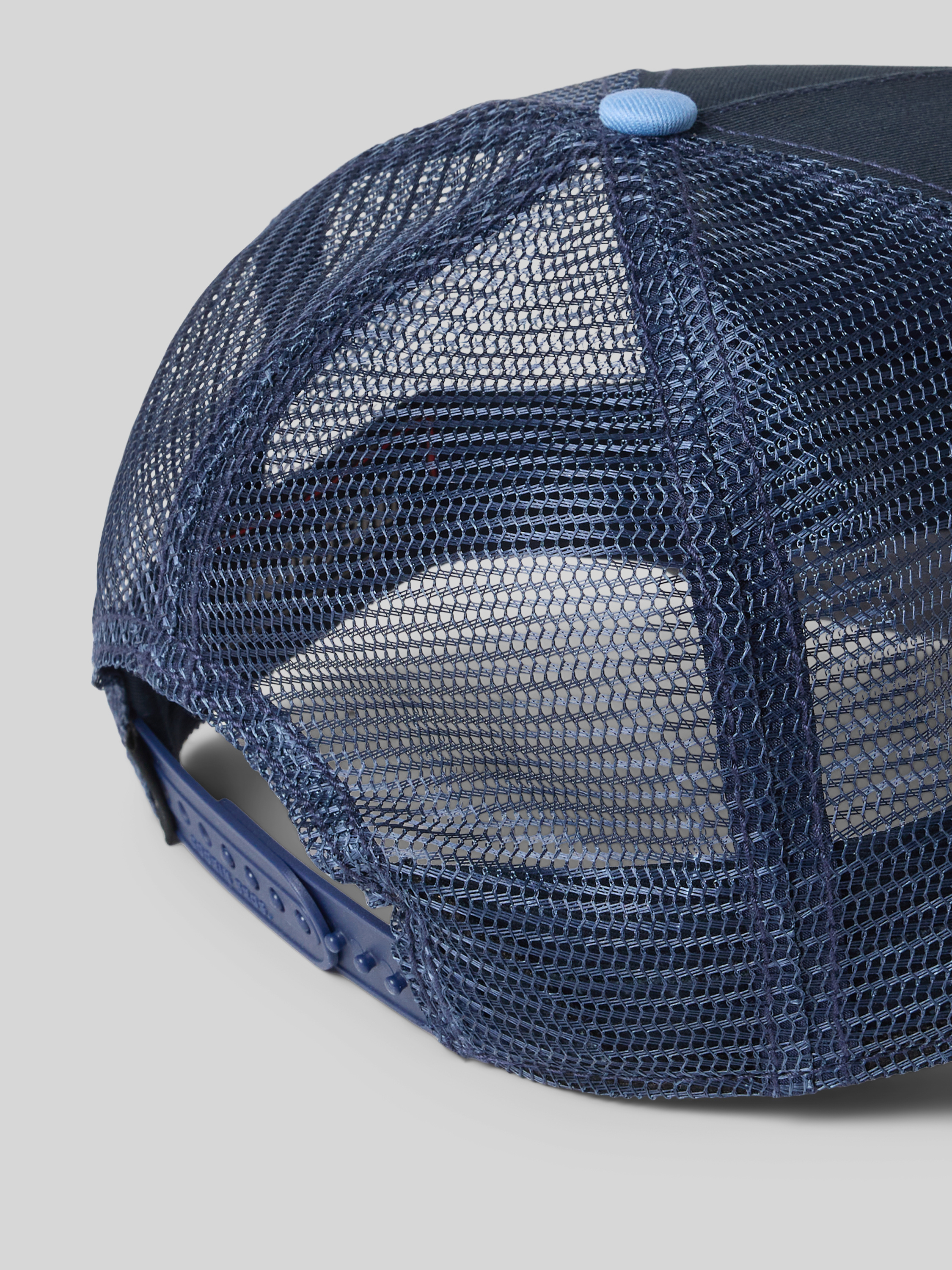 Trucker-pet met motiefpatch, model 'The Gritty Bear' in marineblauw