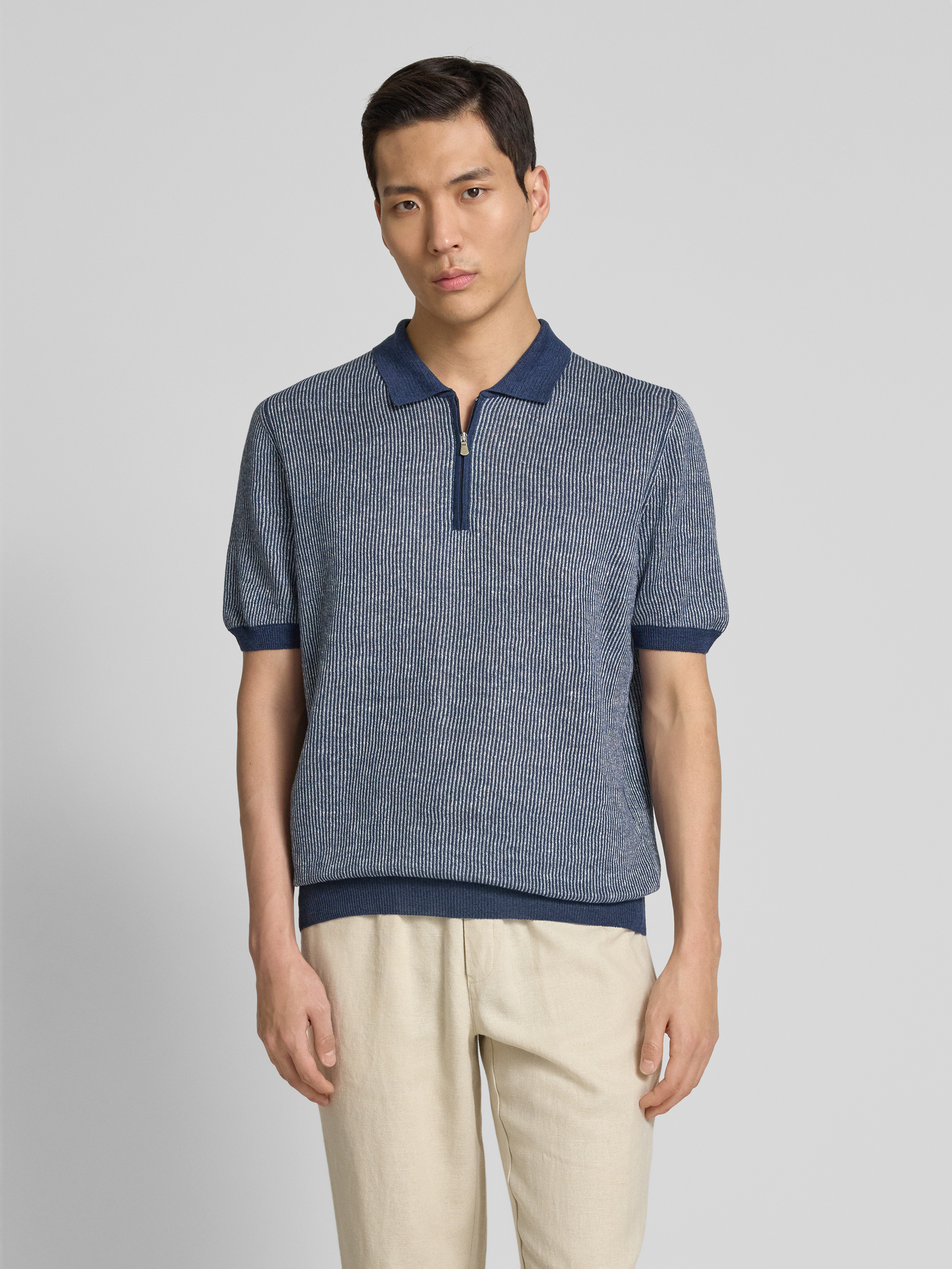 Regular fit poloshirt met ritssluiting in marineblauw