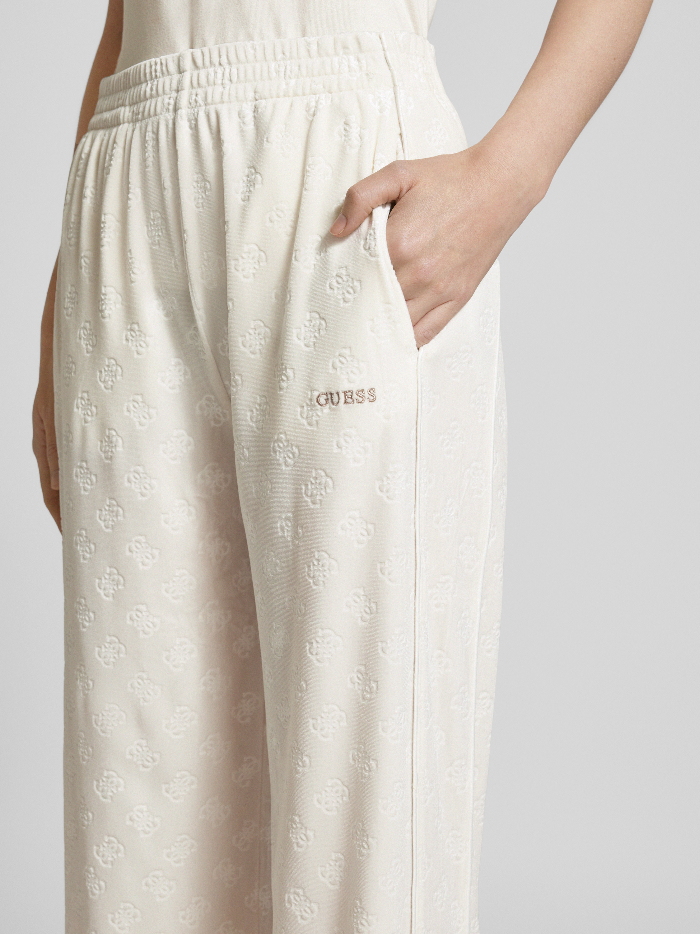 Straight fit sweatpants met labelstitching, model 'KRISSY' in offwhite