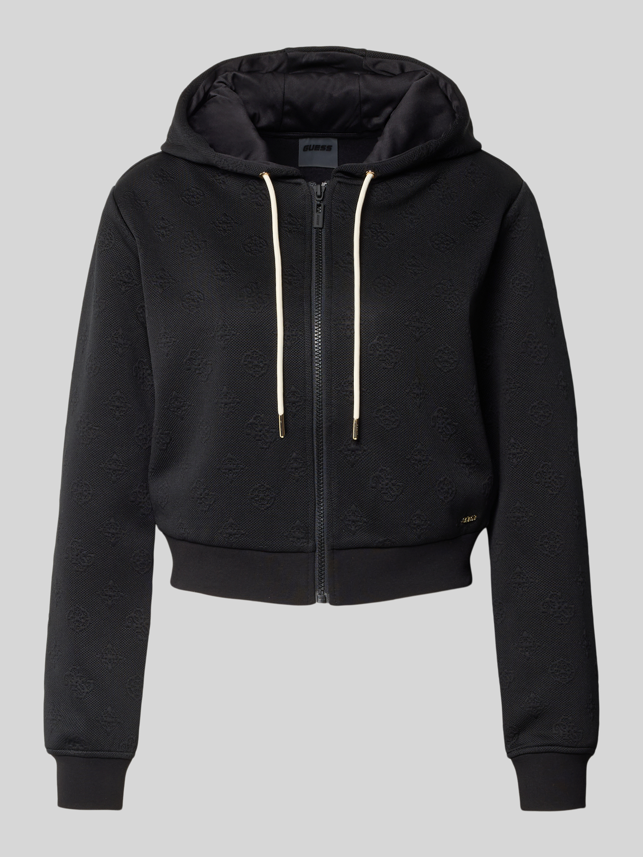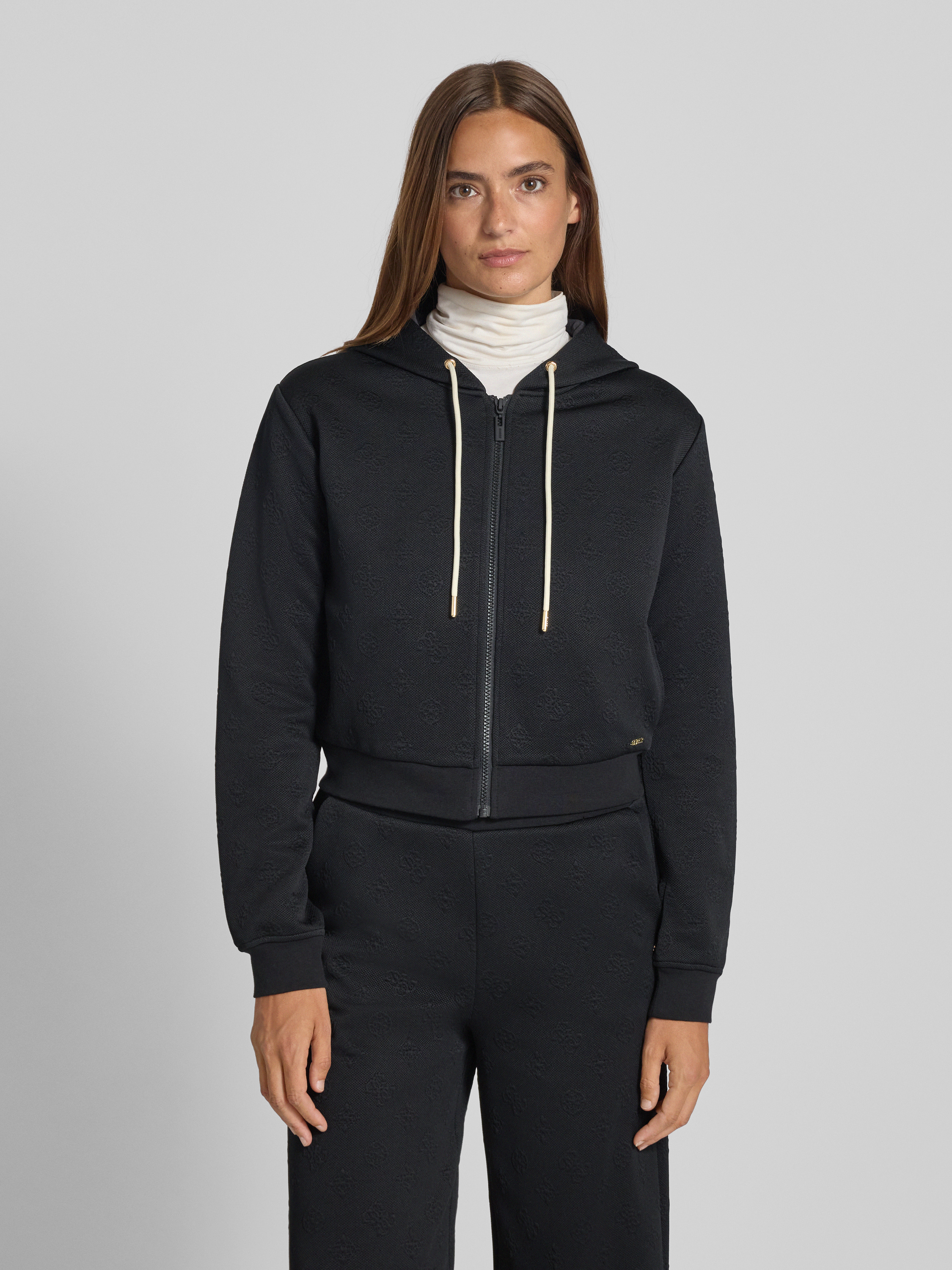 Sweatjack met capuchon, model '3D PEONY' in zwart