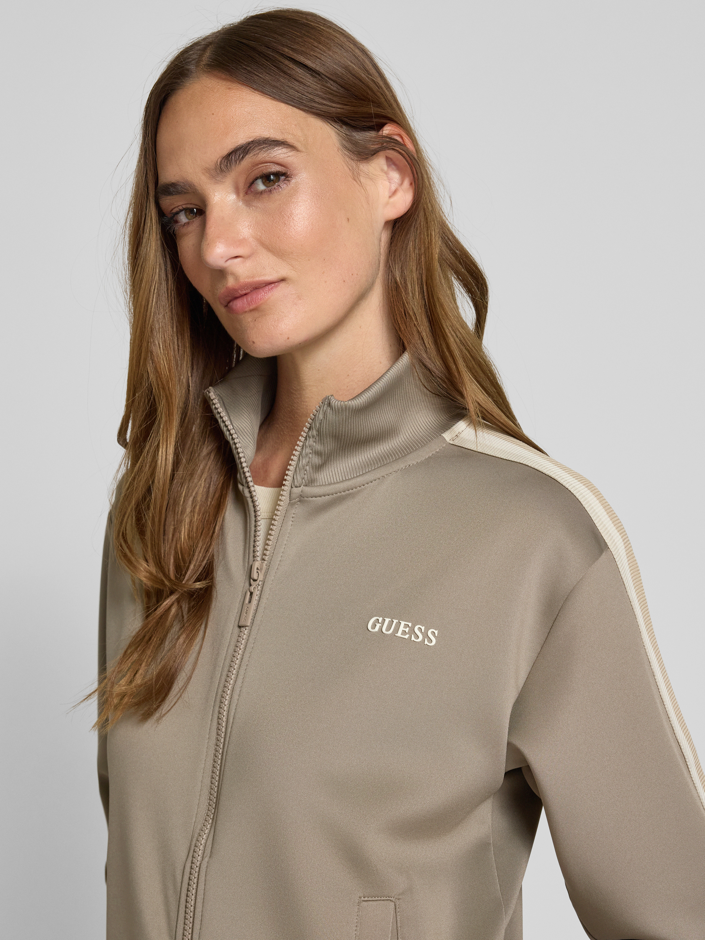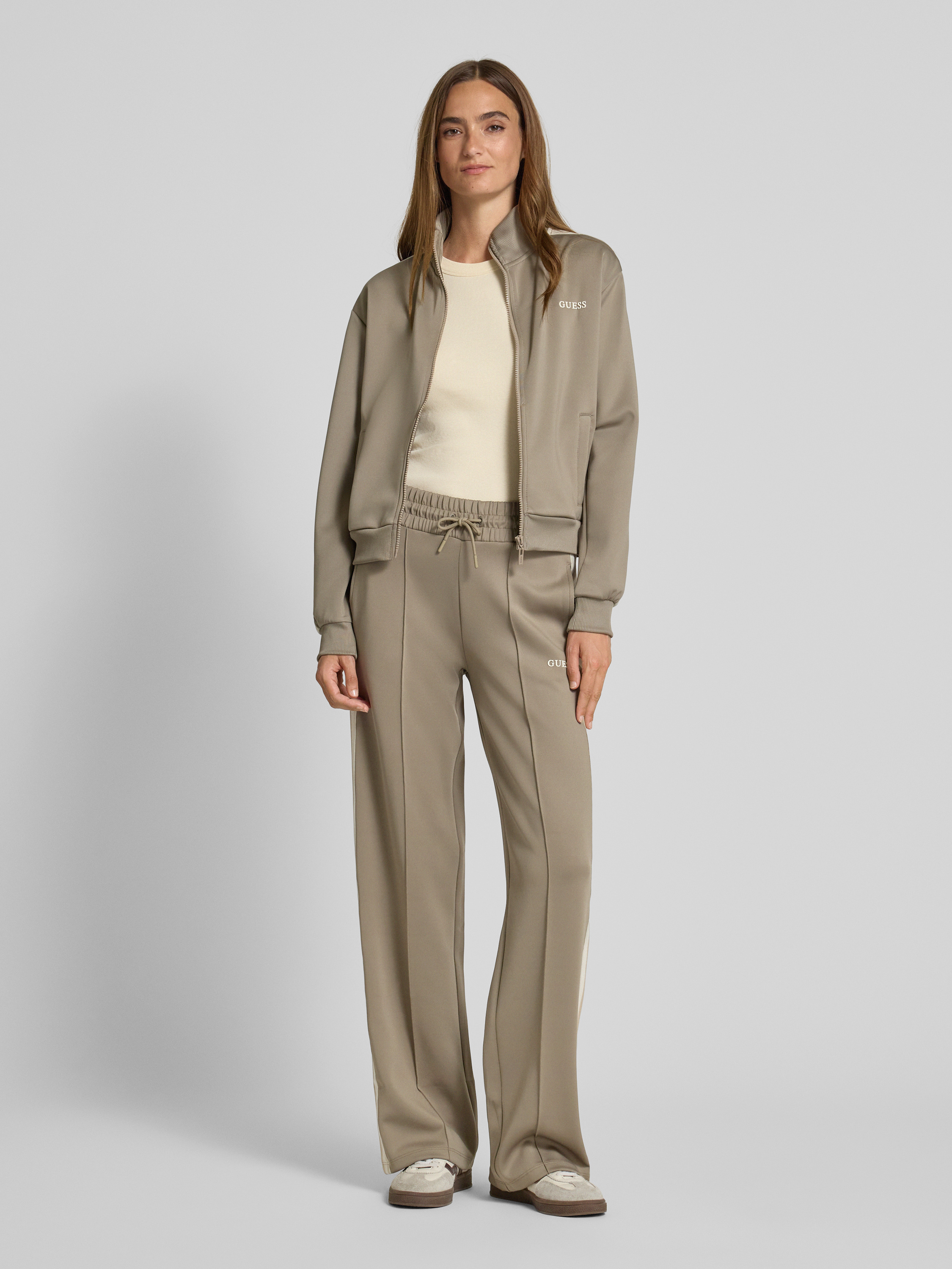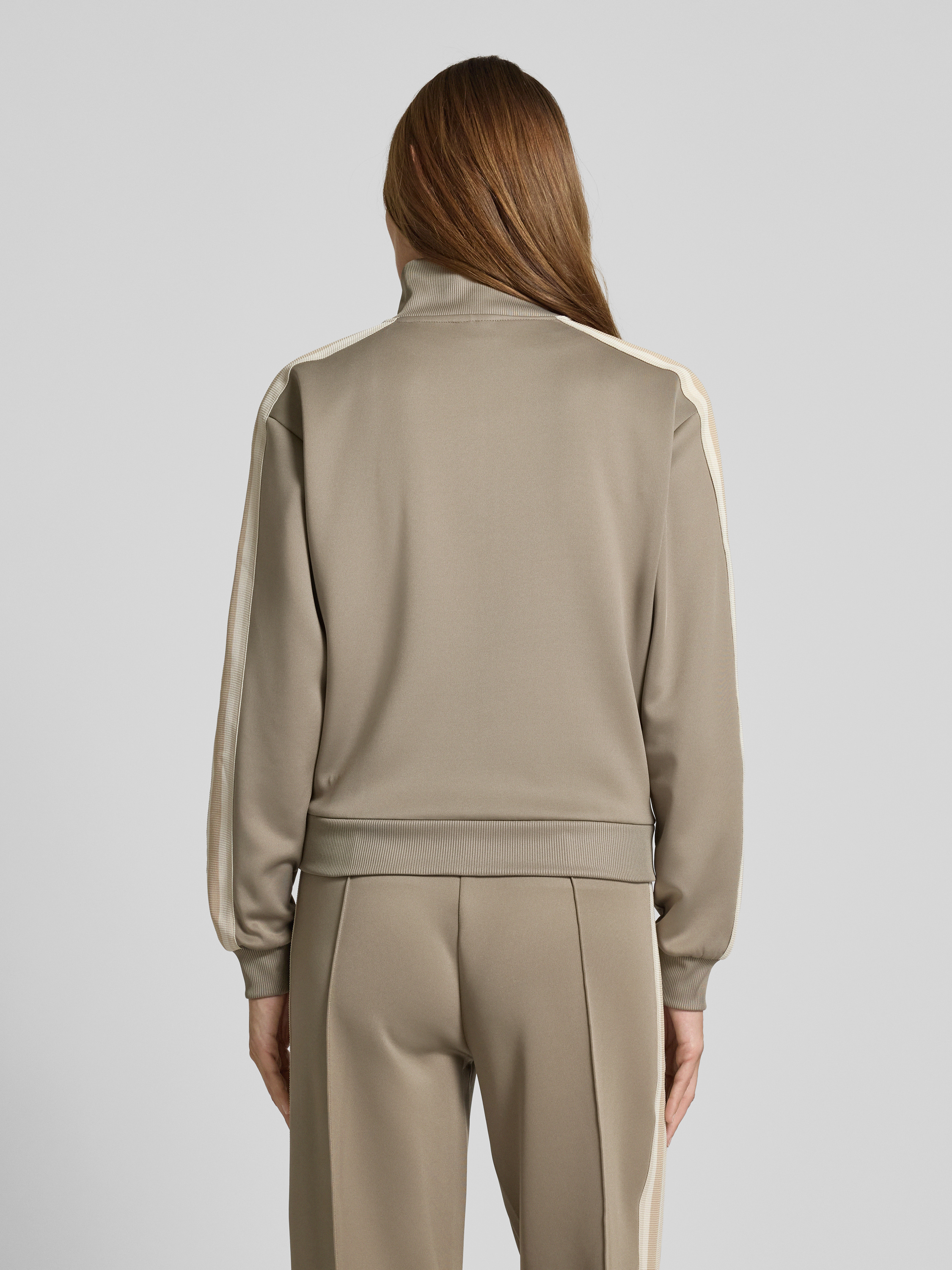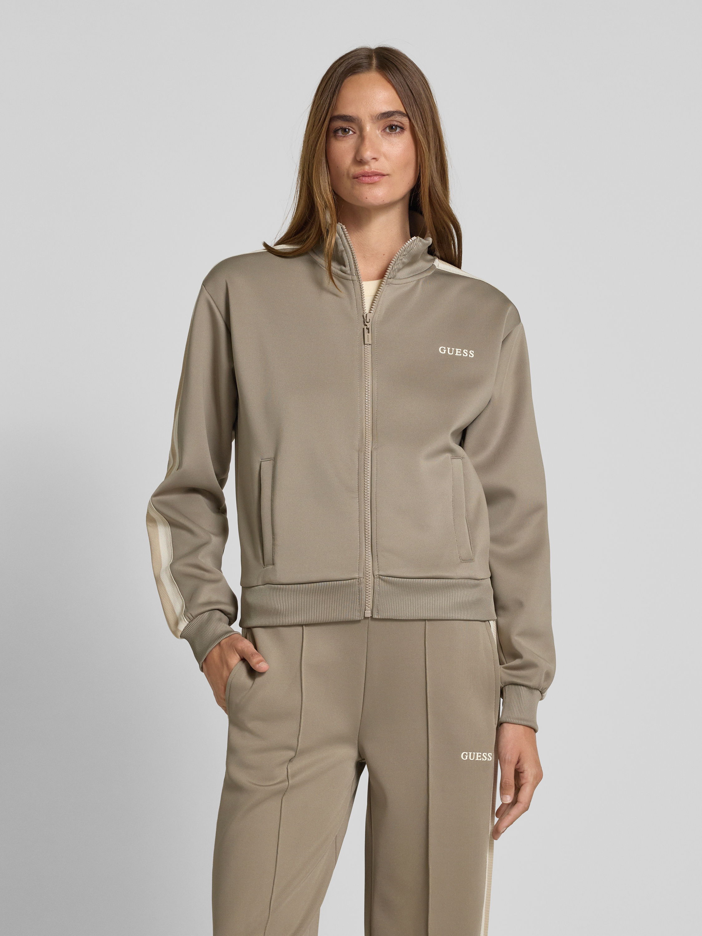 Sweatjack met labelprint, model 'YARROW' in lichtbruin
