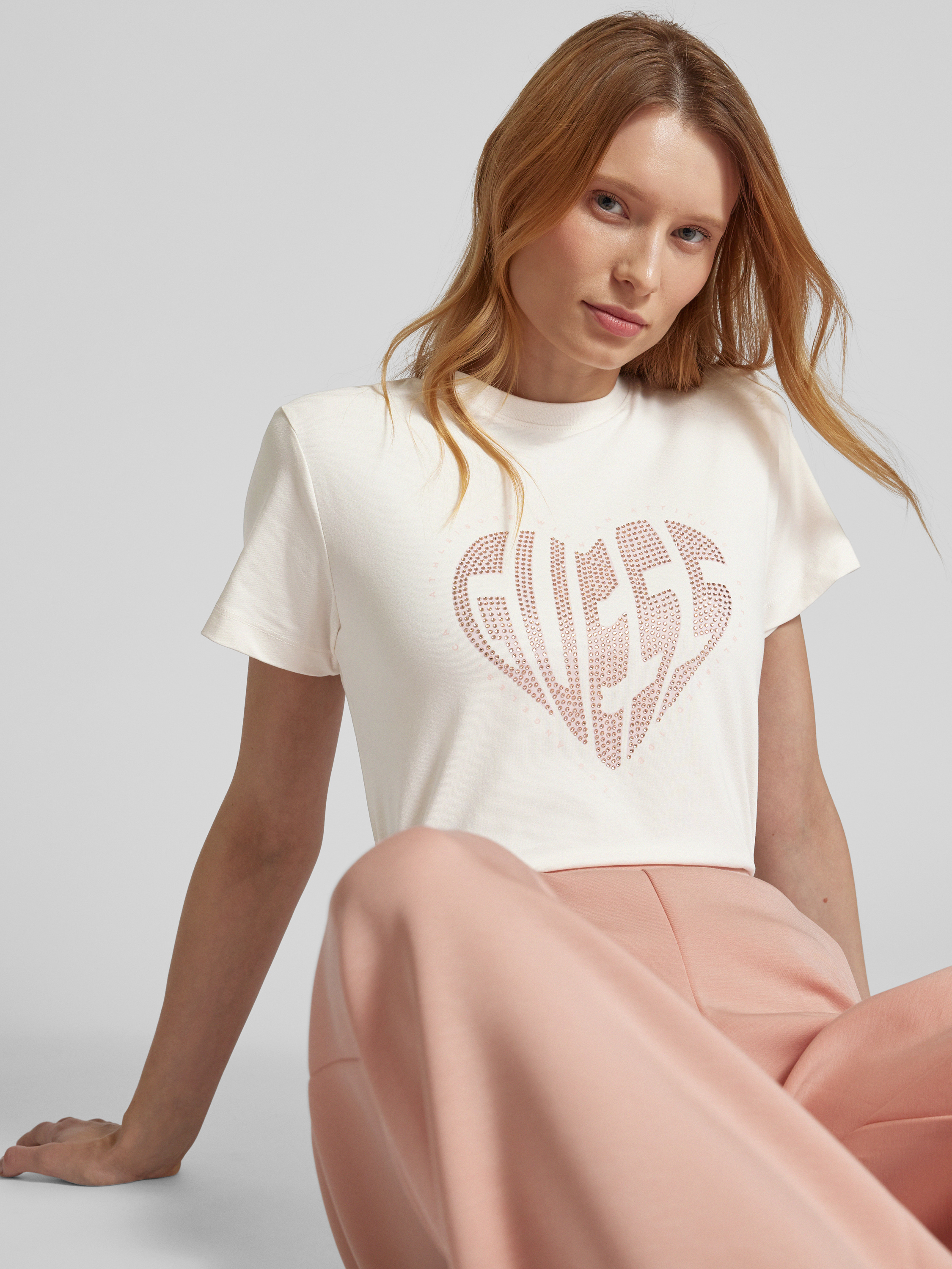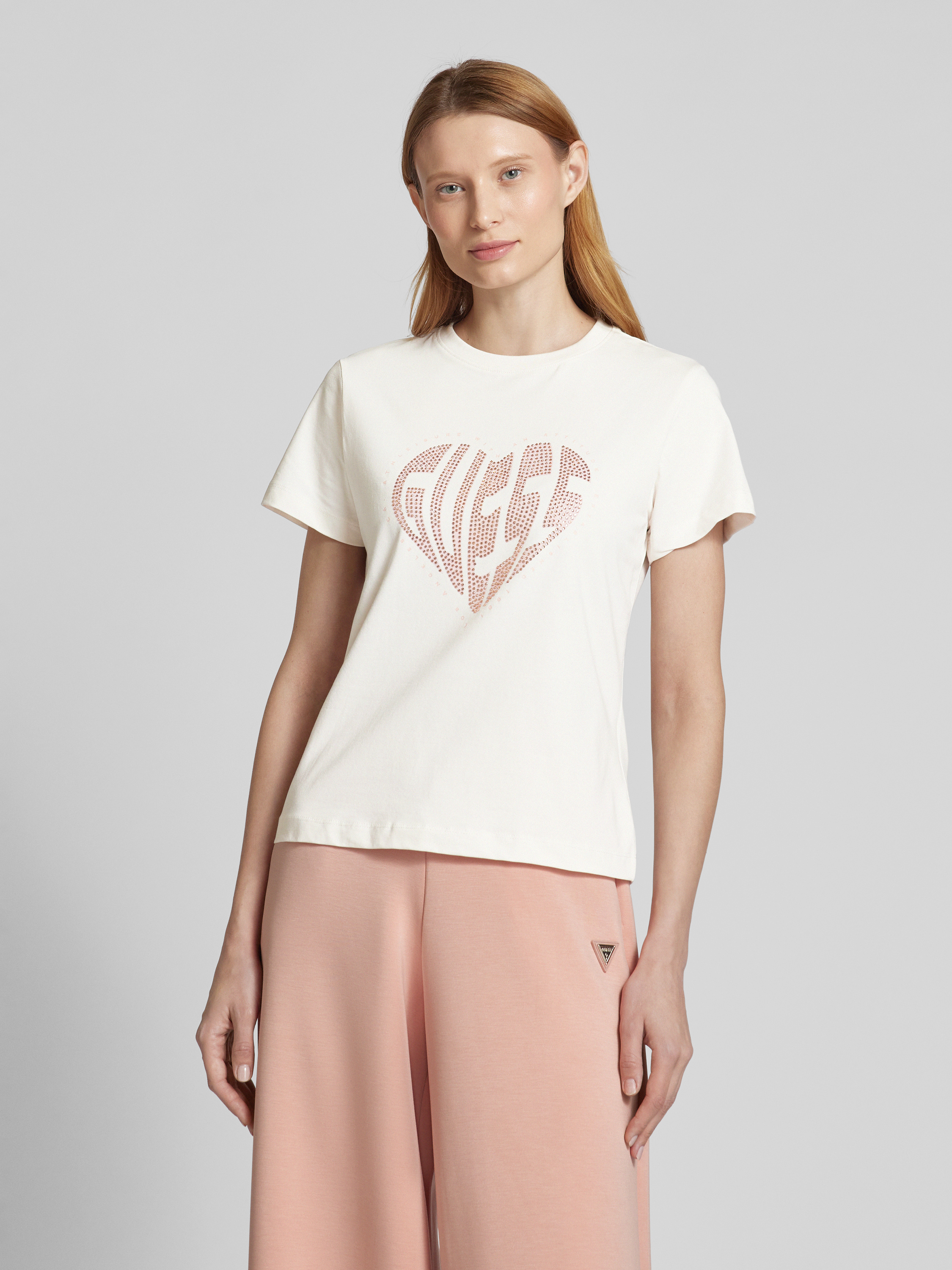 T-shirt met labeldetail, model 'JULIA' in ecru