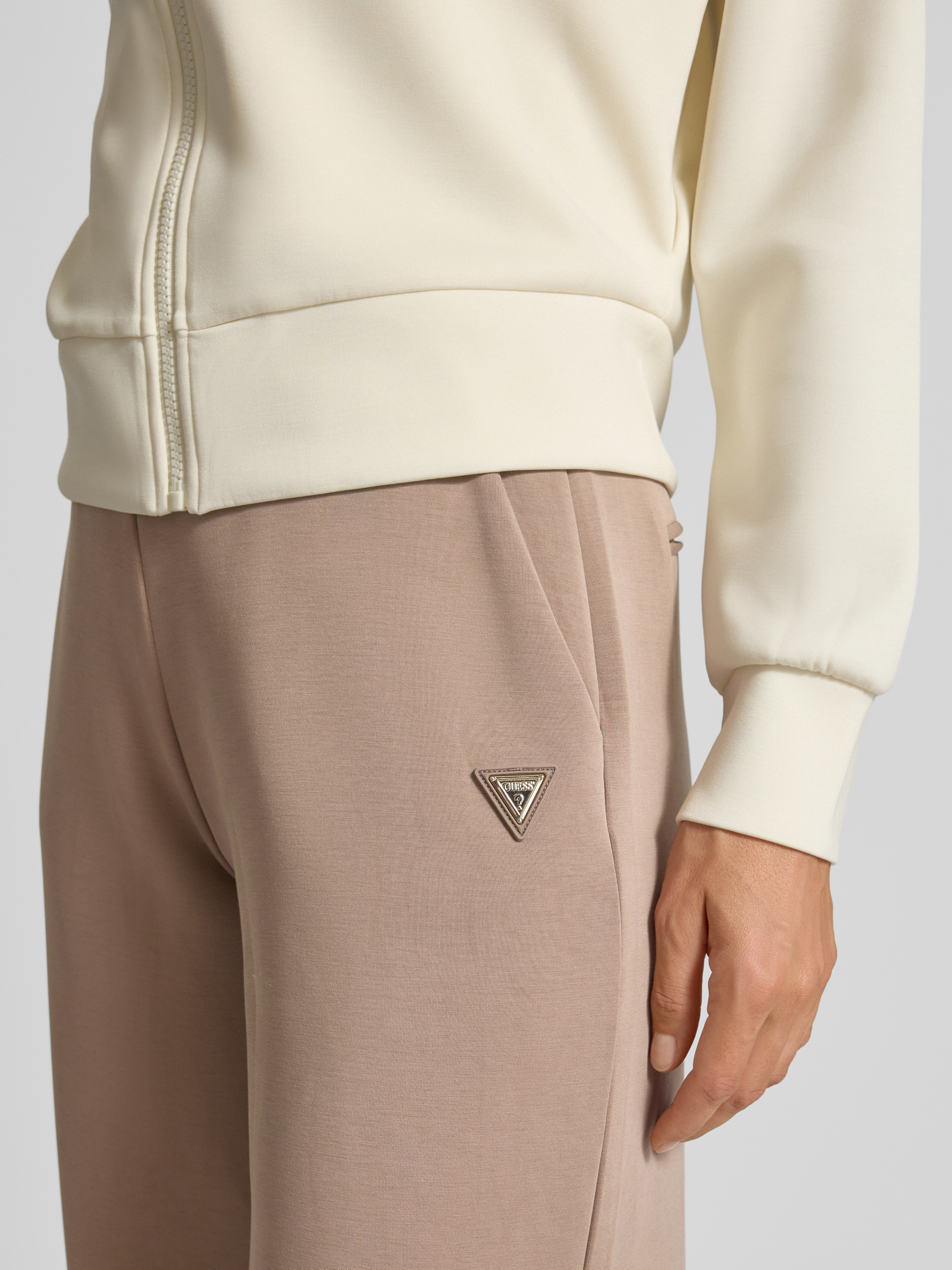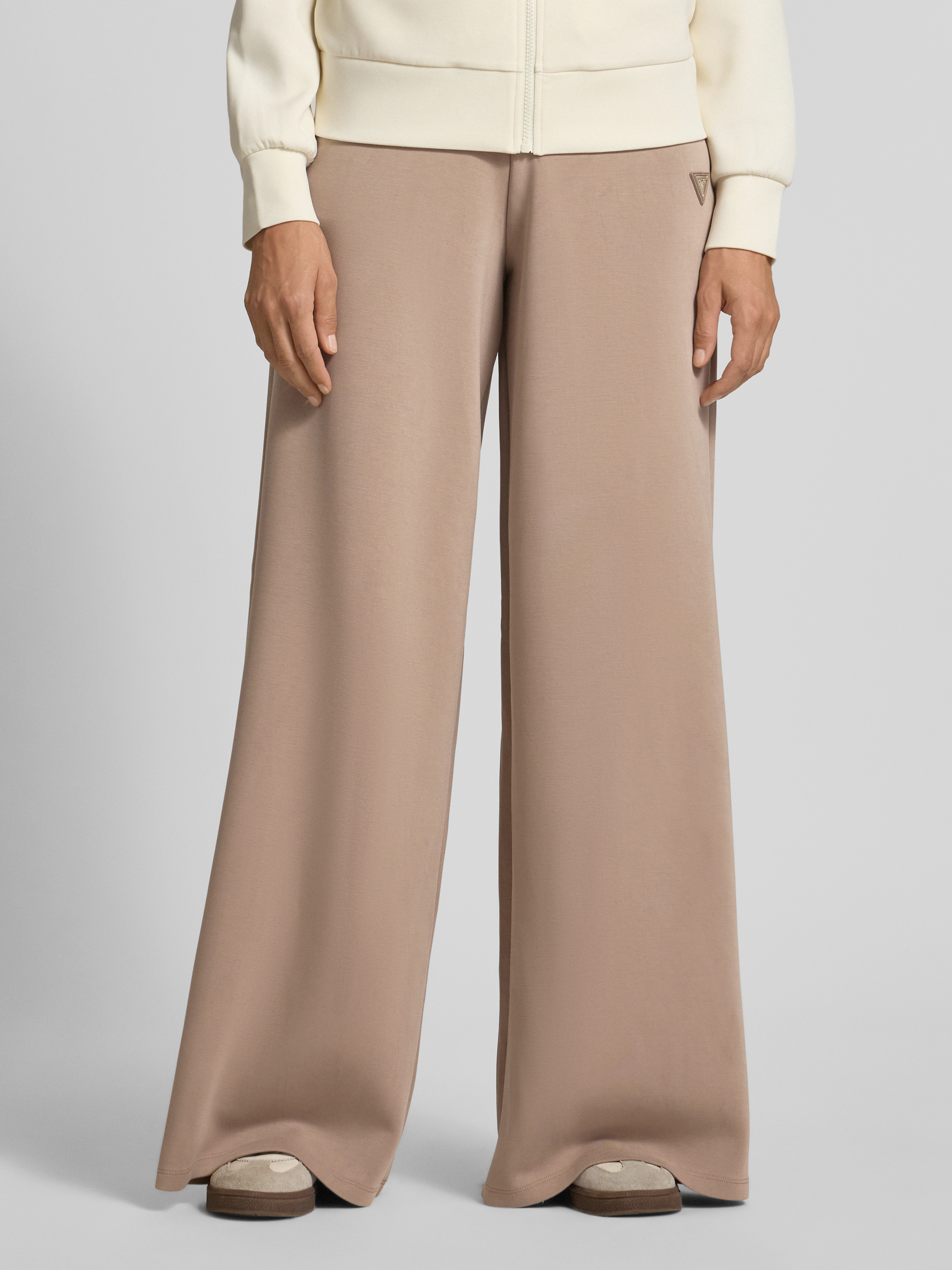 Wide leg stoffen broek met labelapplicatie, model 'OLYMPE' in taupe