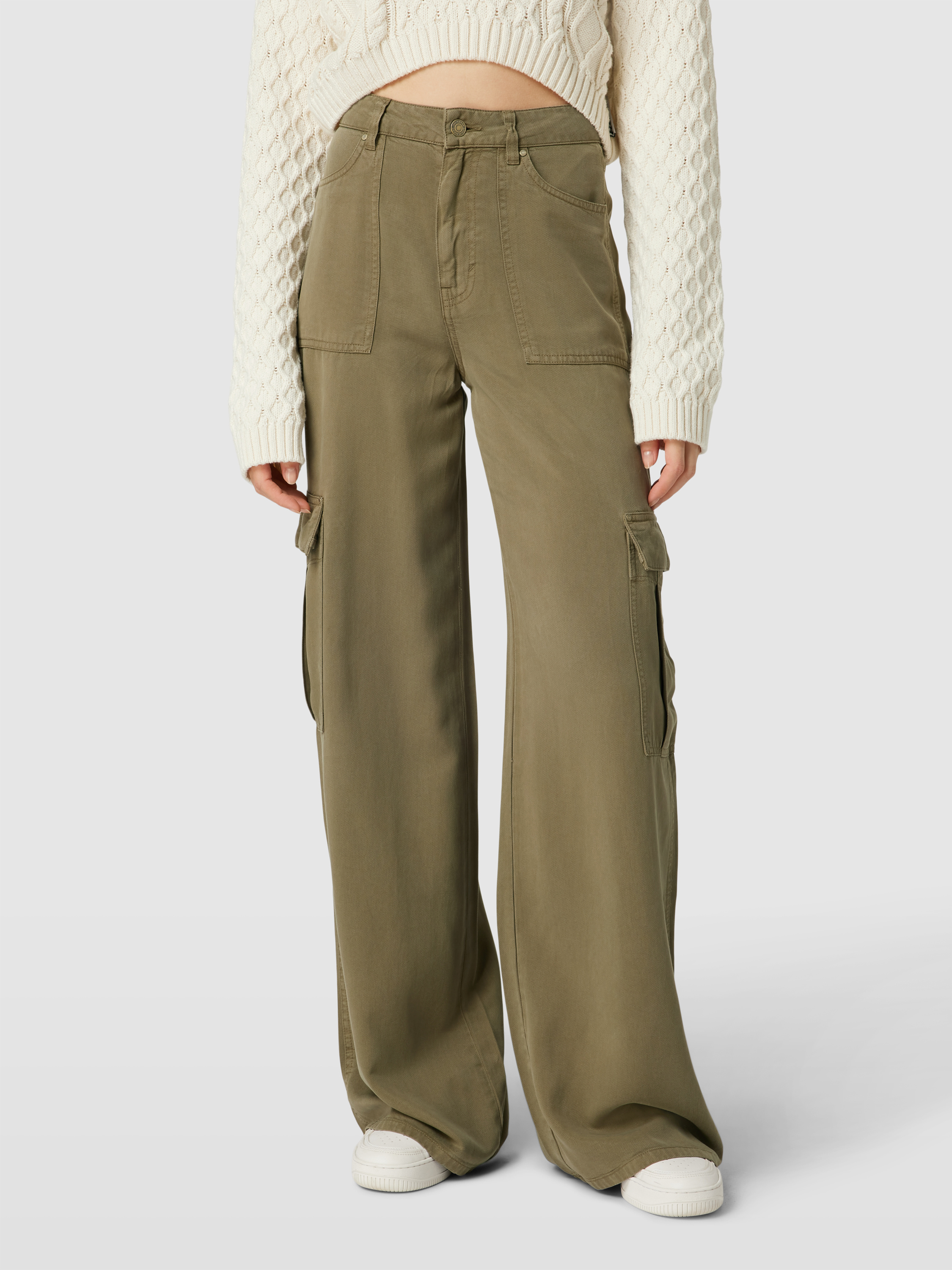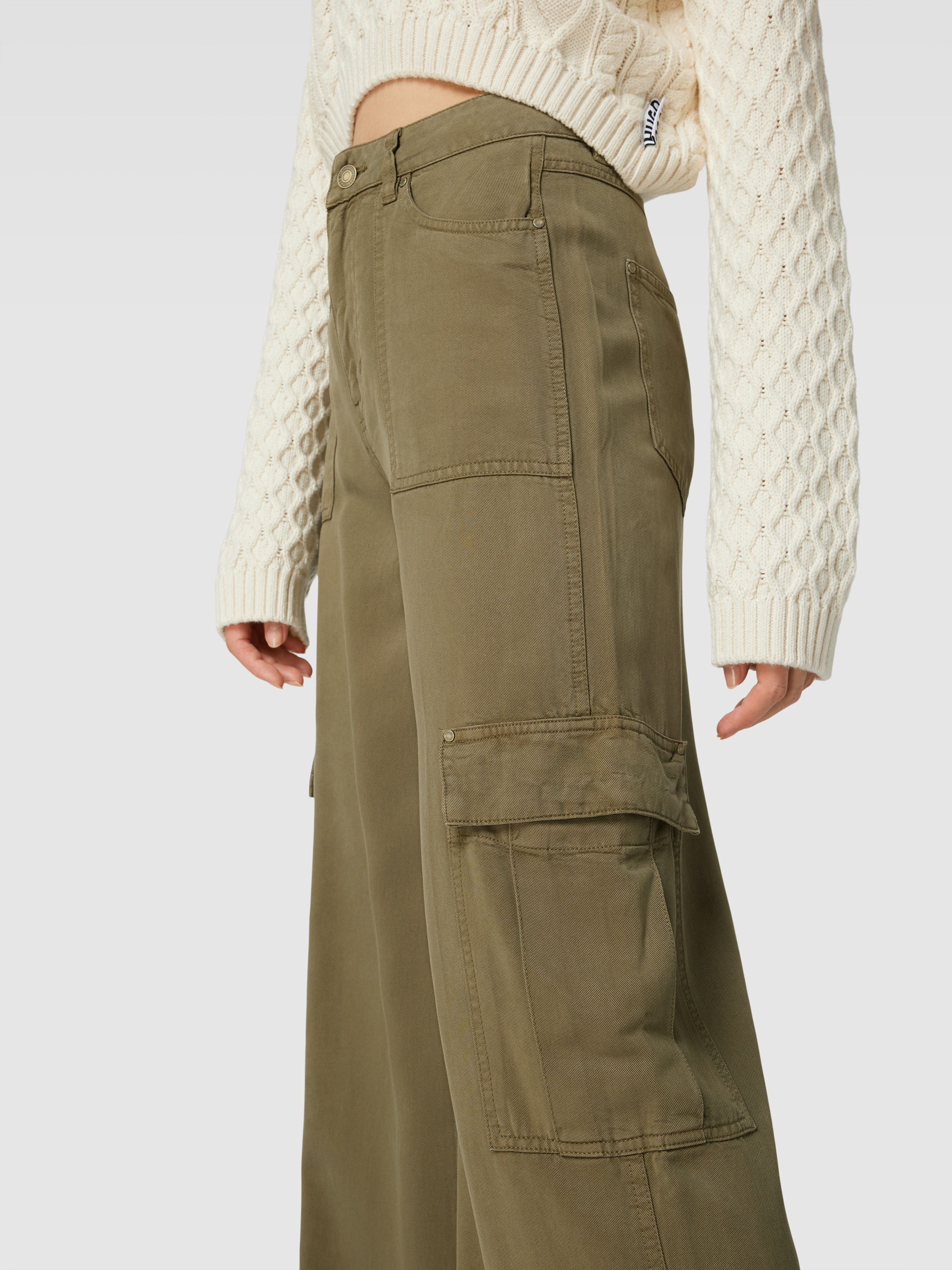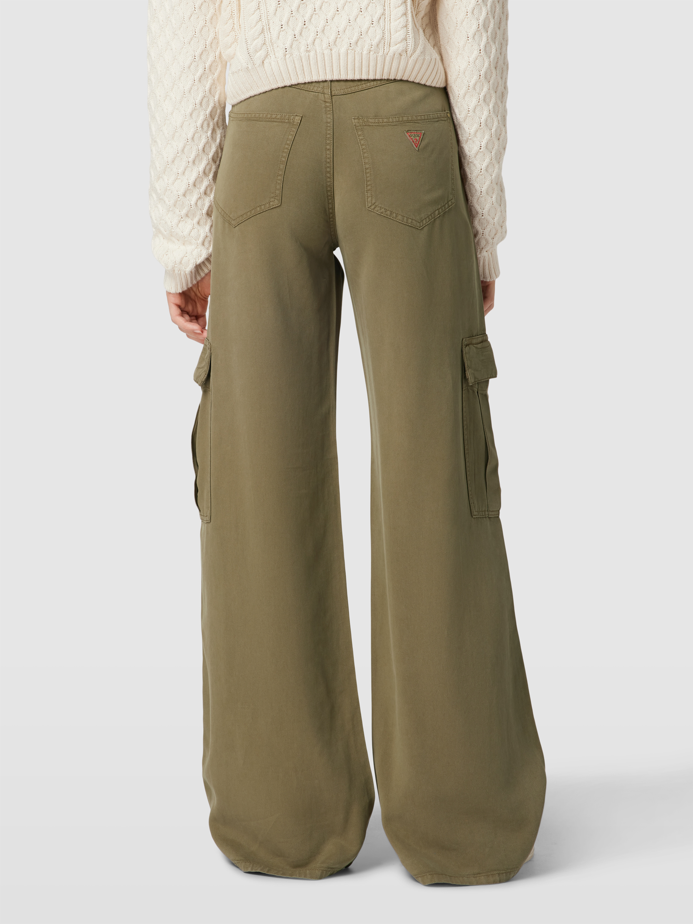 GuessCargobroek van lyocell met opgestikte zakken, model 'LUANA' in olijfgroen