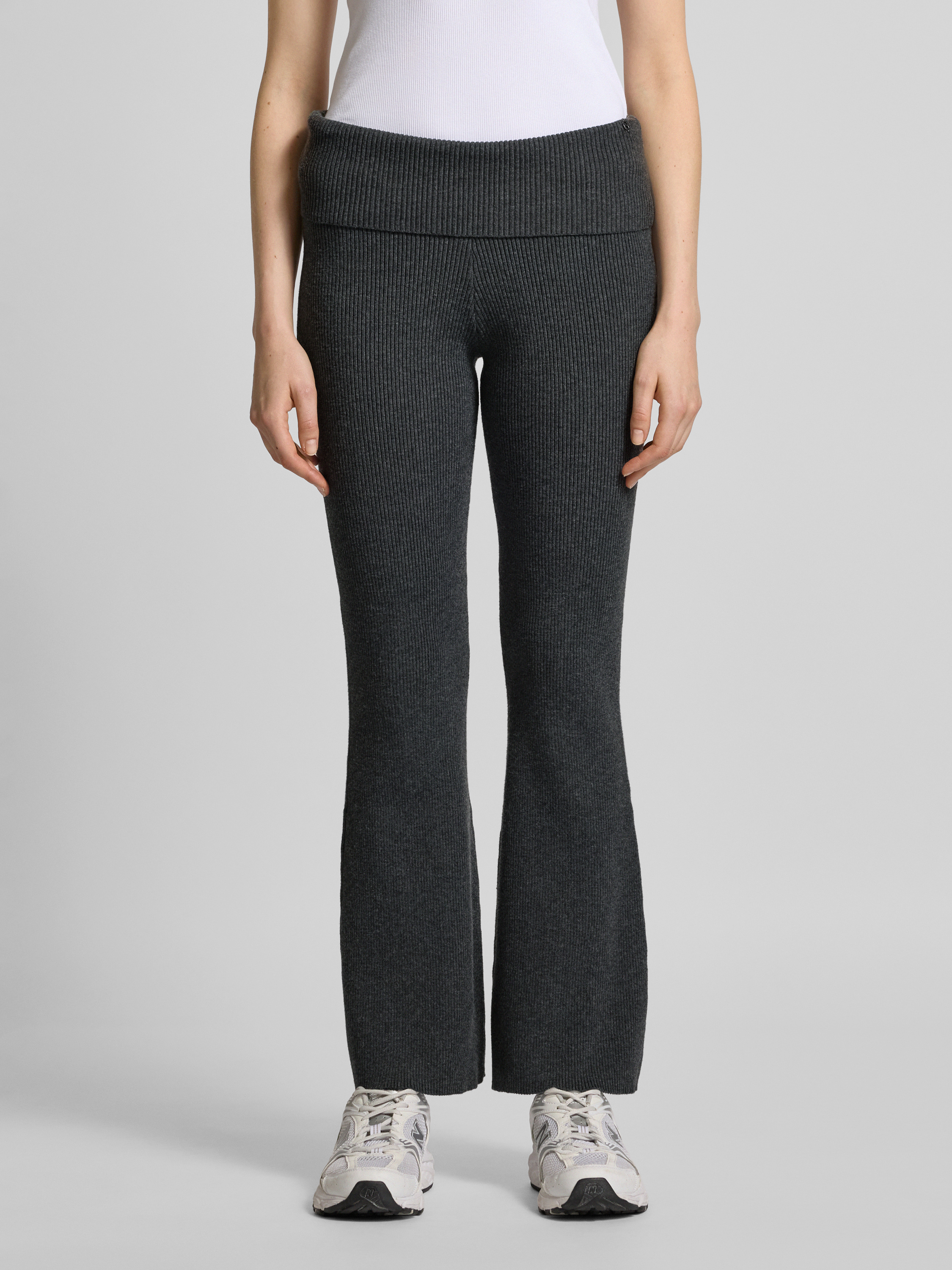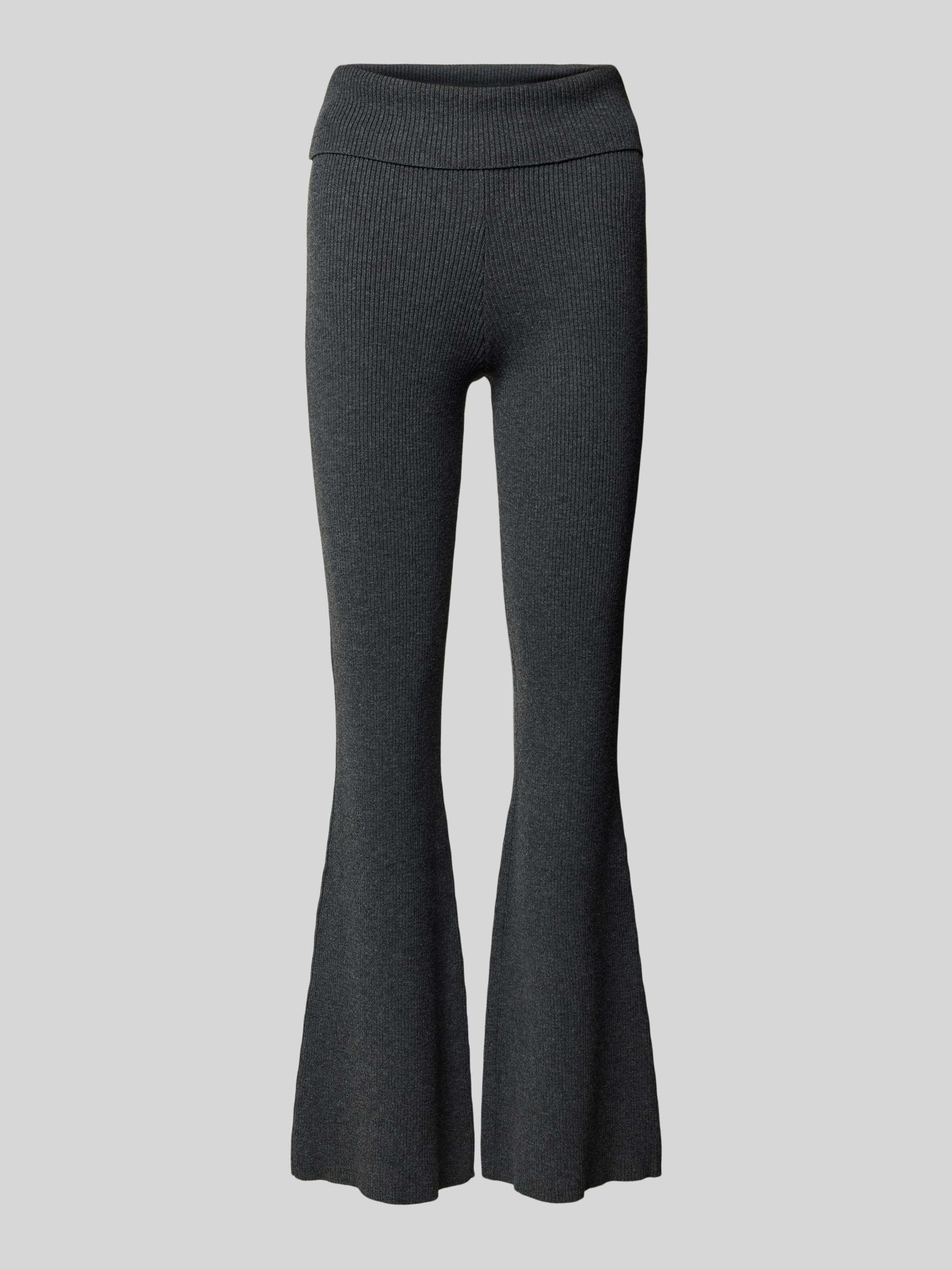 Flared broek in riblook, model 'NINA' in antraciet gemêleerd