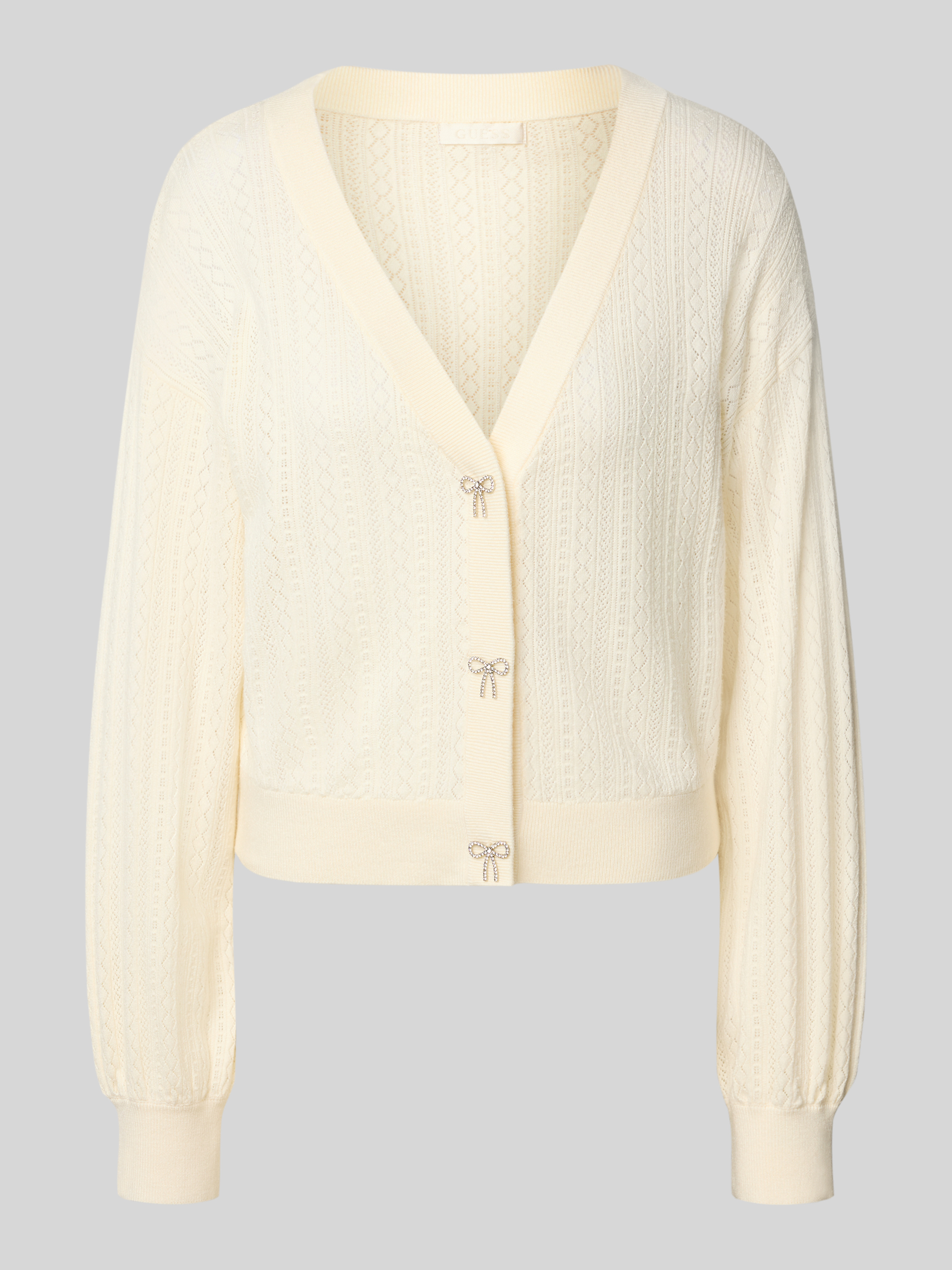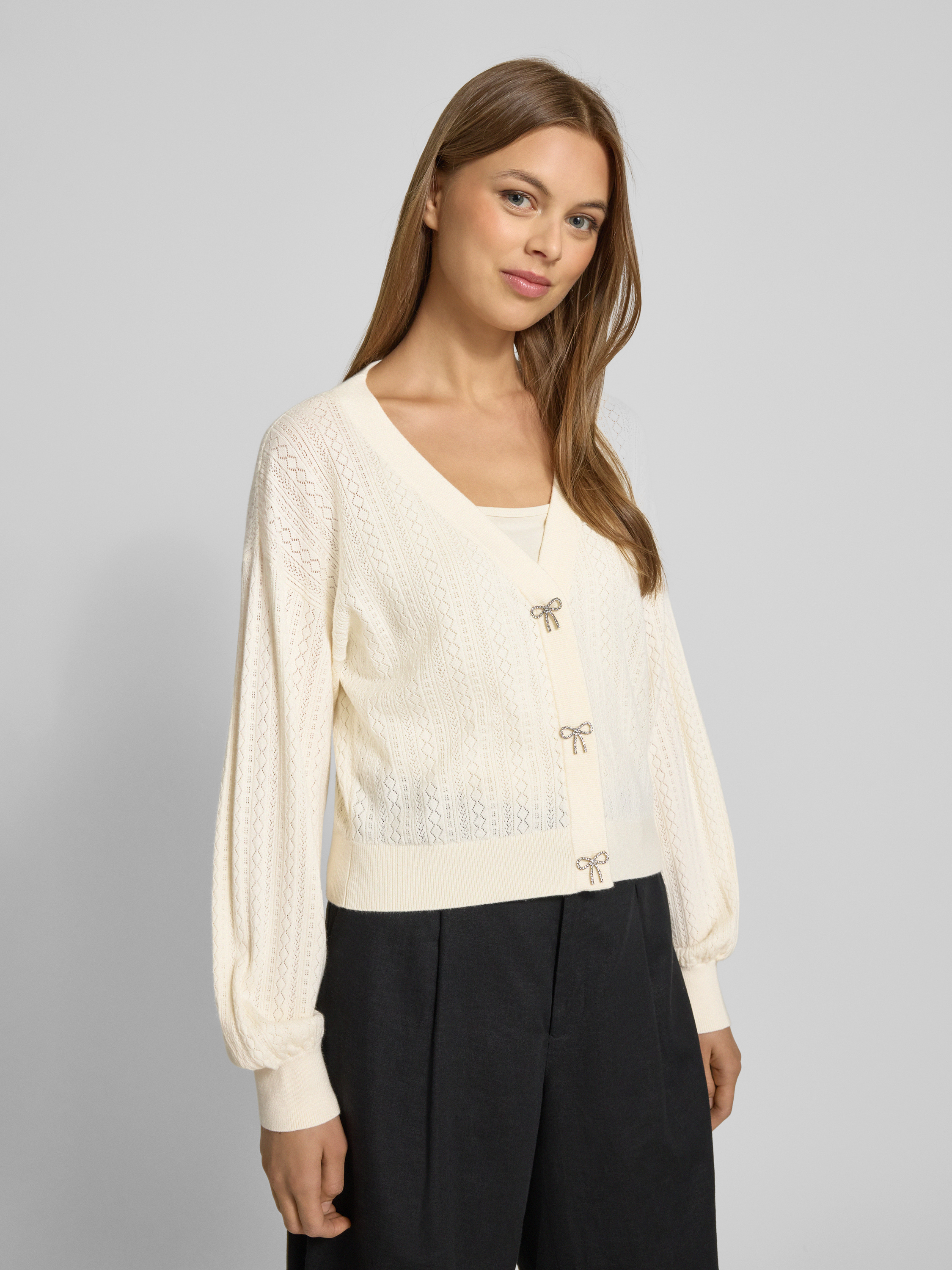 Gebreid jack van viscosemix met V-hals, model 'LYLA' in wit